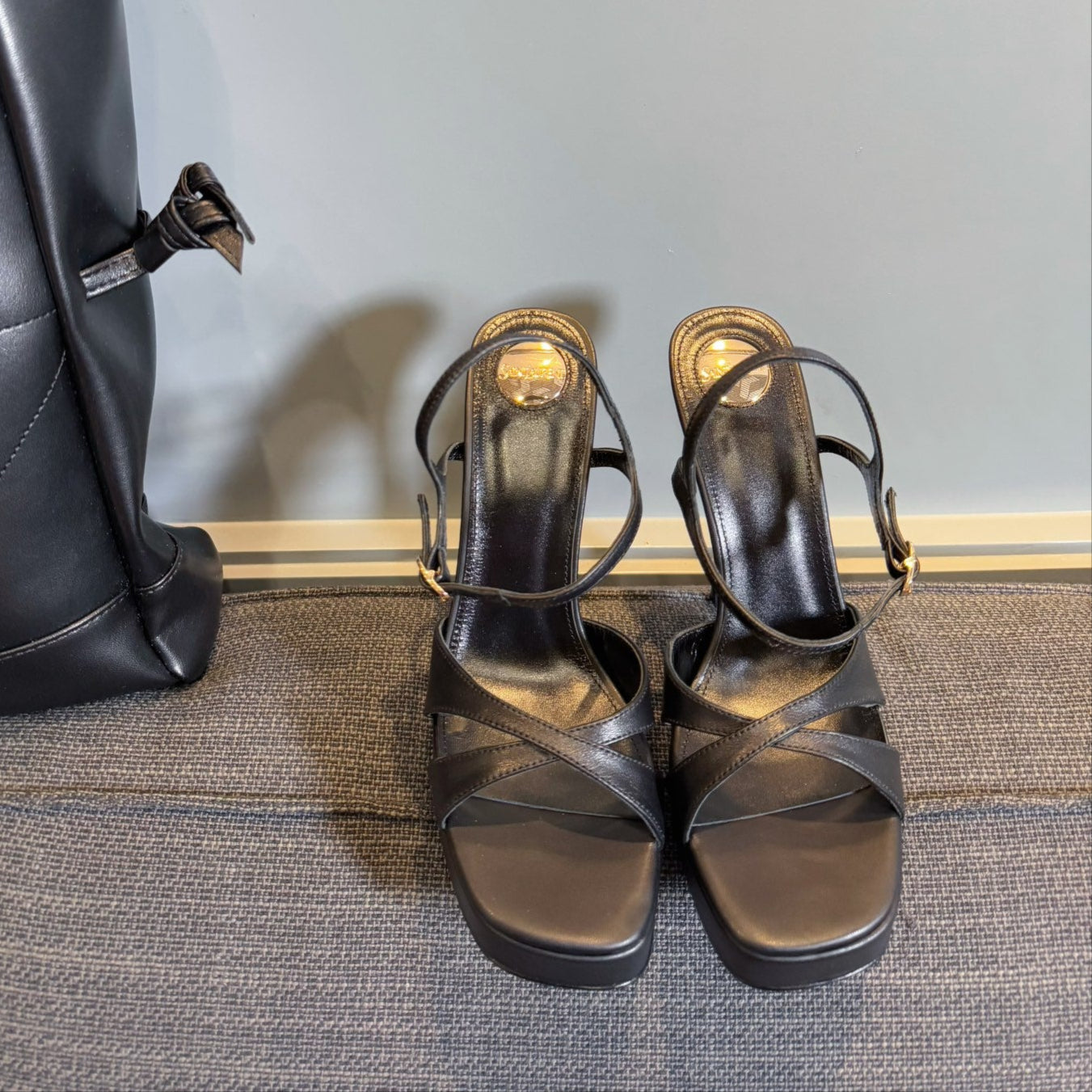 DEBBIE PLATFORM SANDALS IN BLACK SMOOTH LAMBSKIN