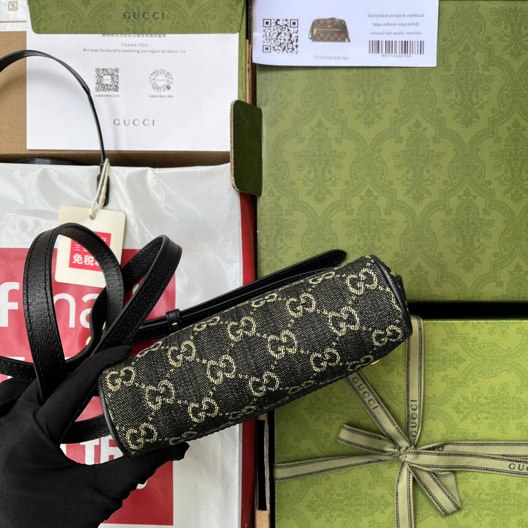 • Material: Denim and leather trim