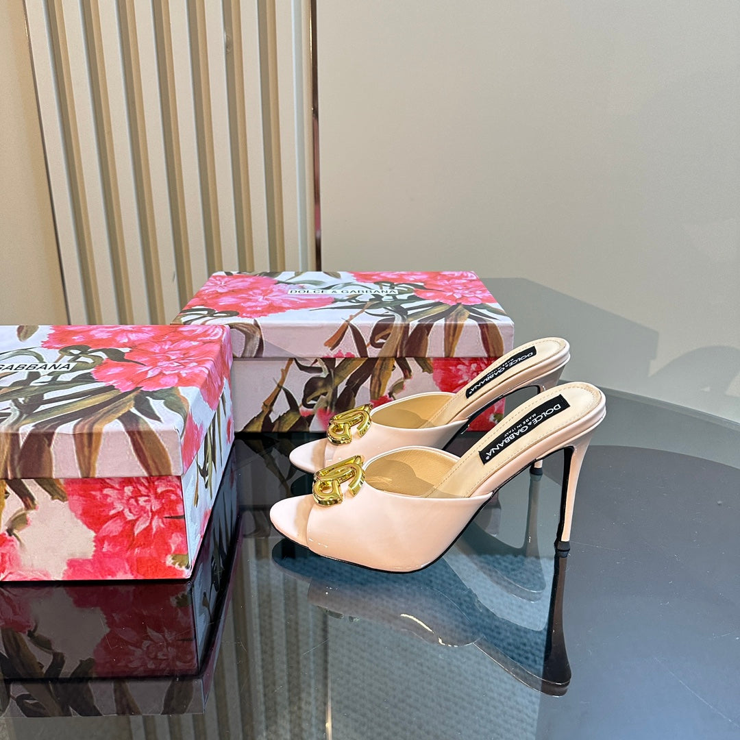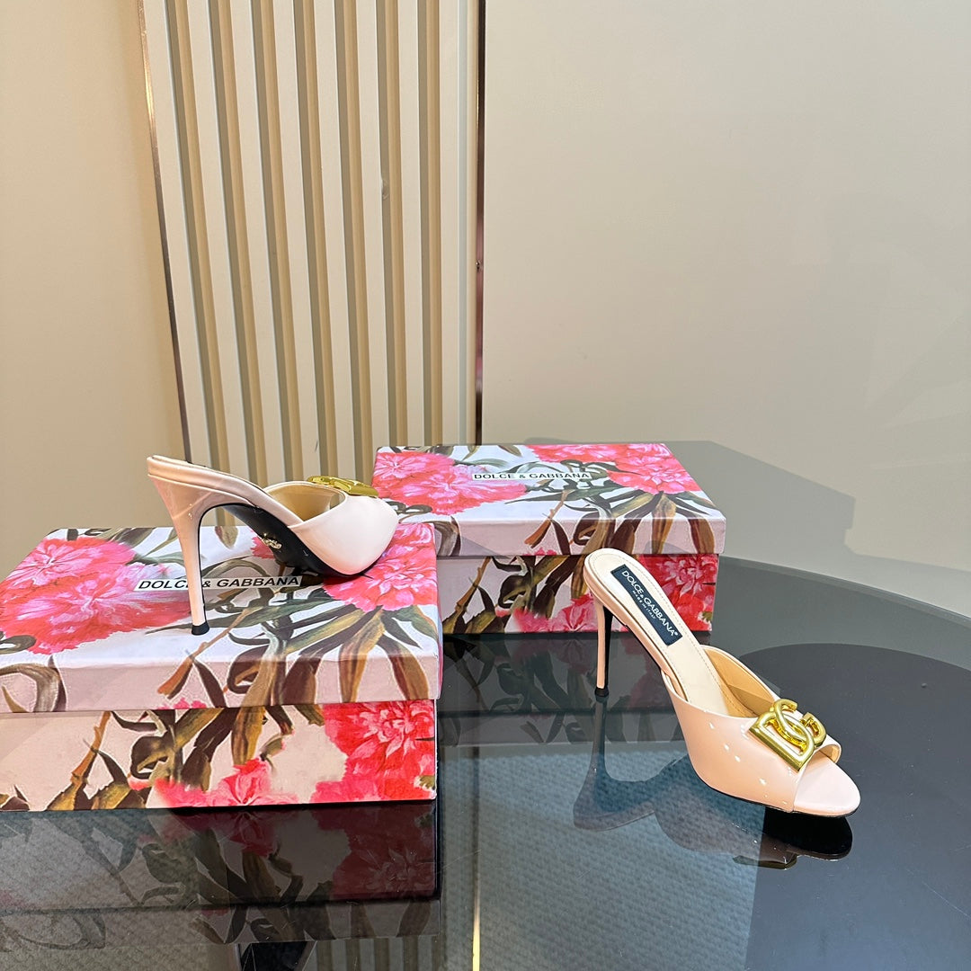 DG FOOTWEAR – LIGHT 100MM IN BEIGE PATENT CALFSKIN MULES