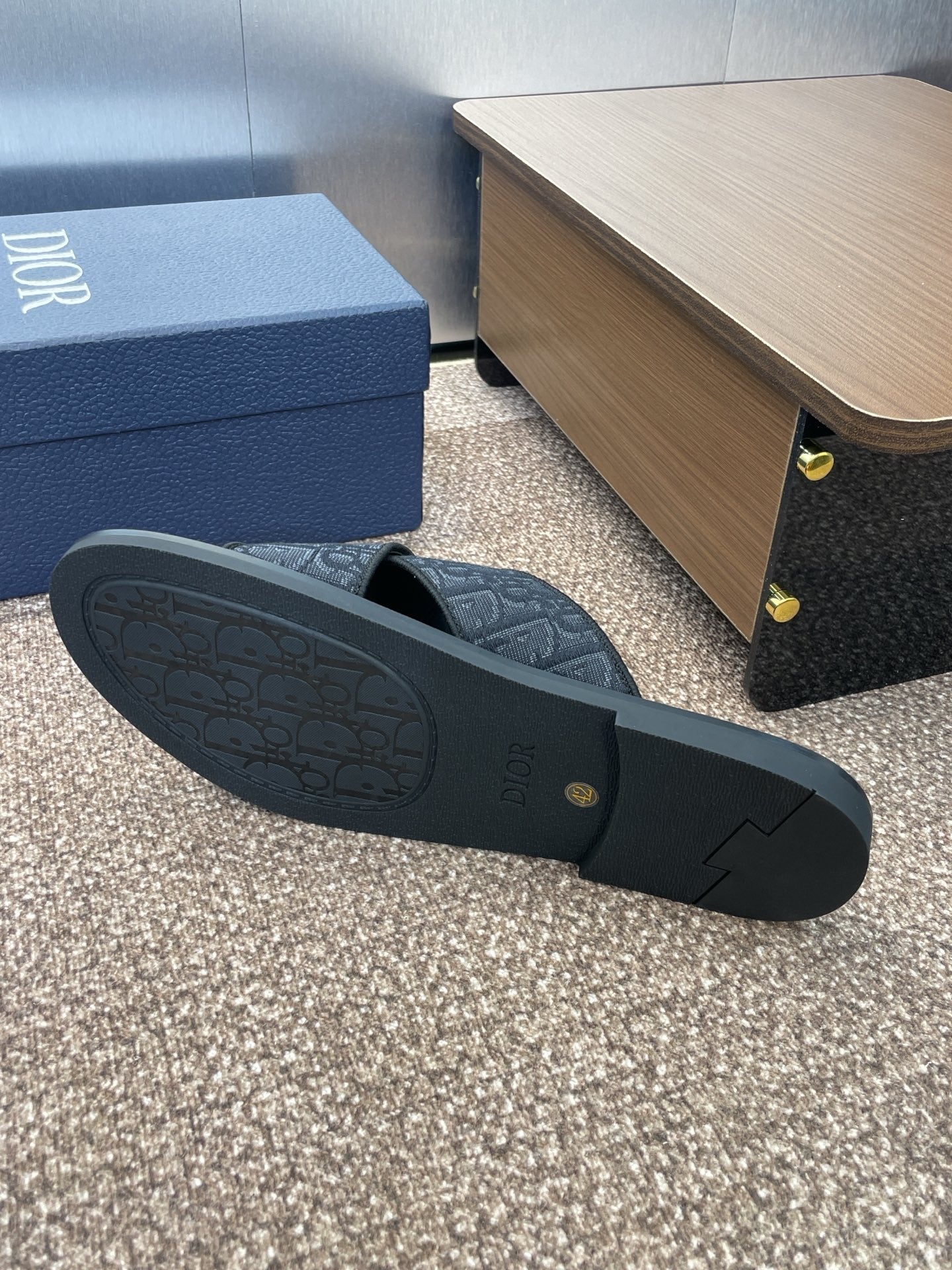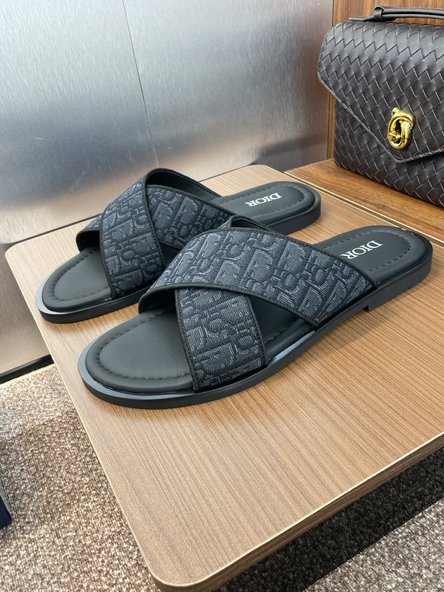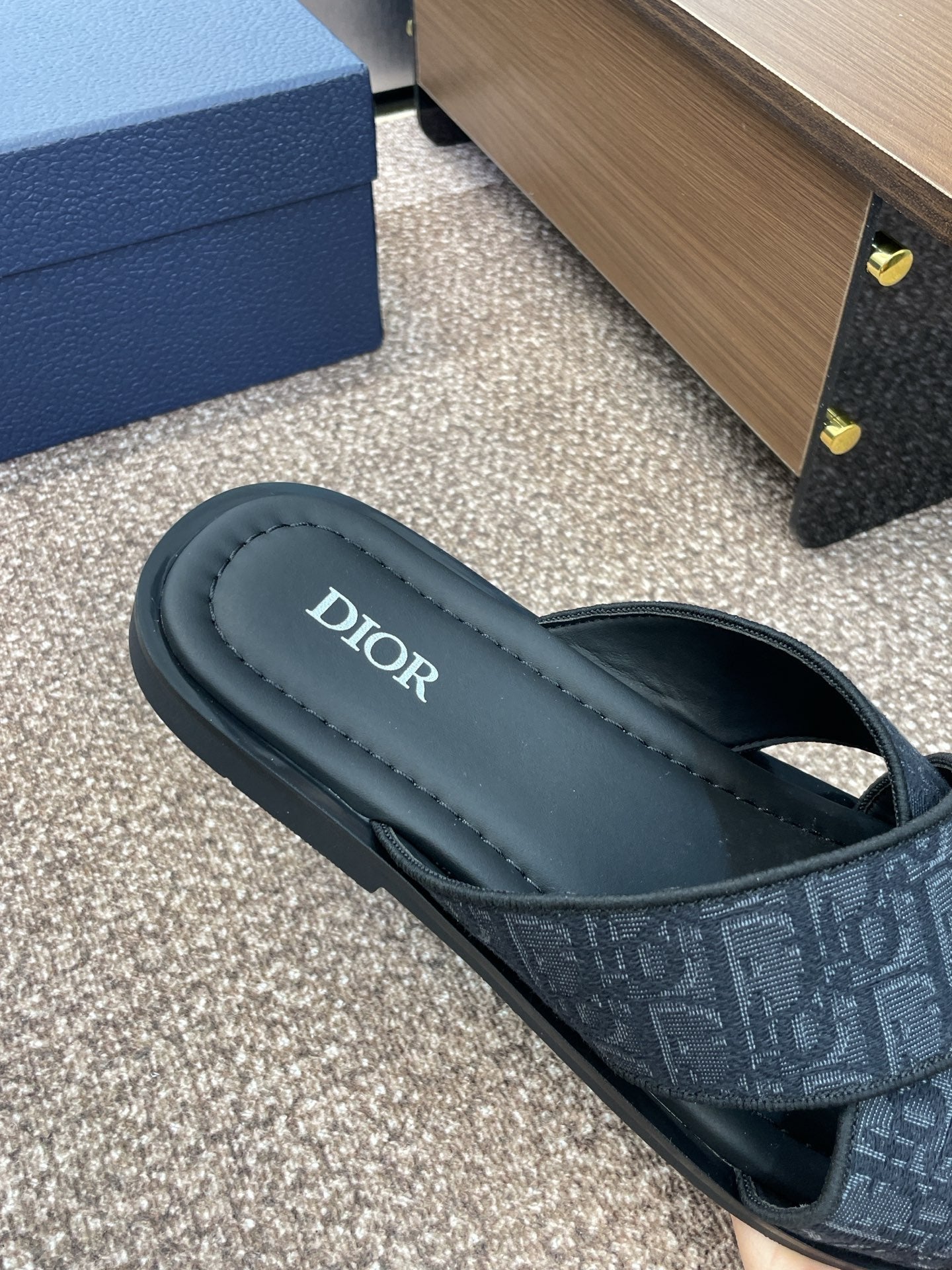DIOR 25S ALIAS CROSS-STRAP SLIDES IN BLACK CALFSKIN WITH CD OBLIQUE DARK BLUE LOGO