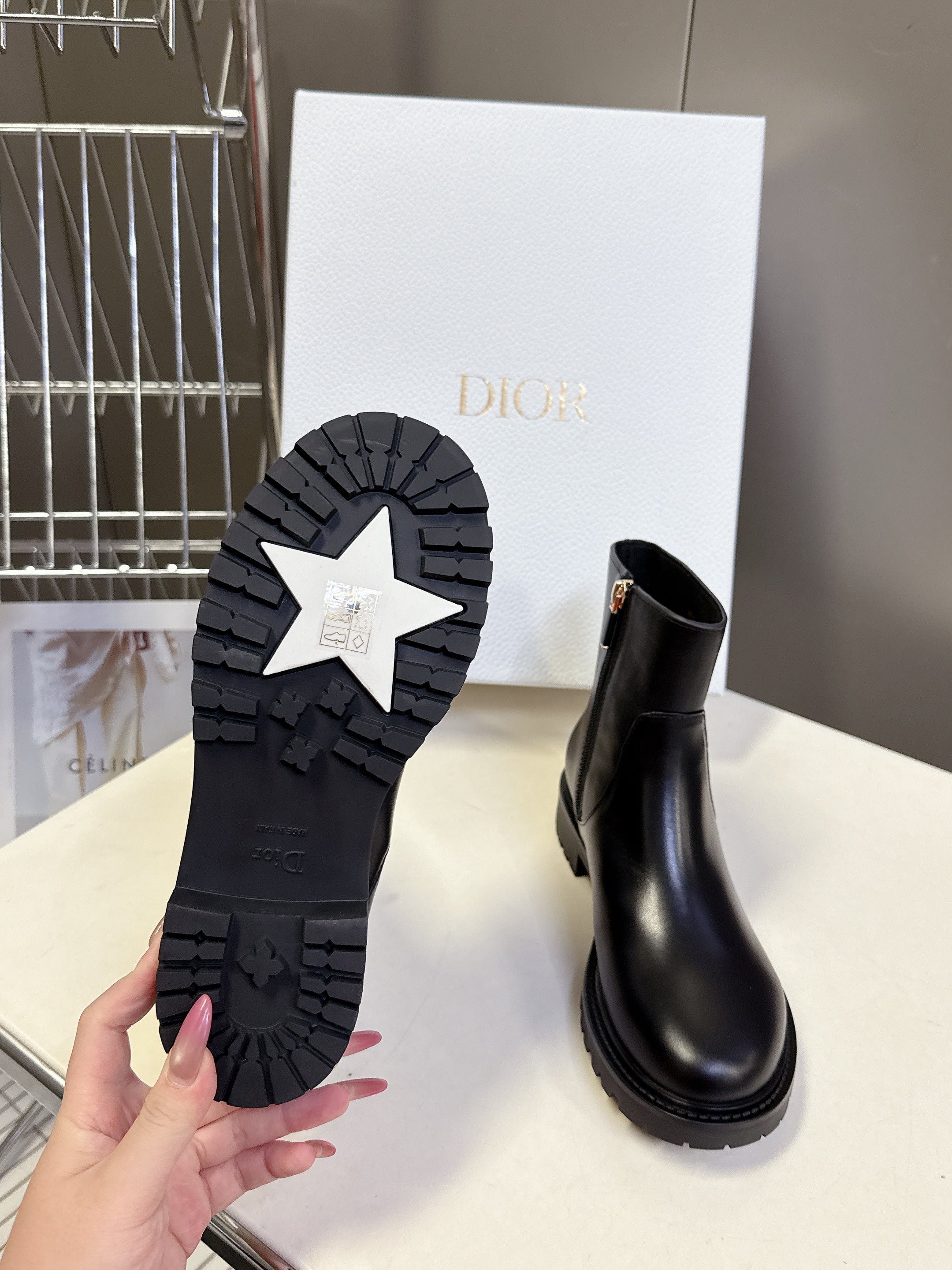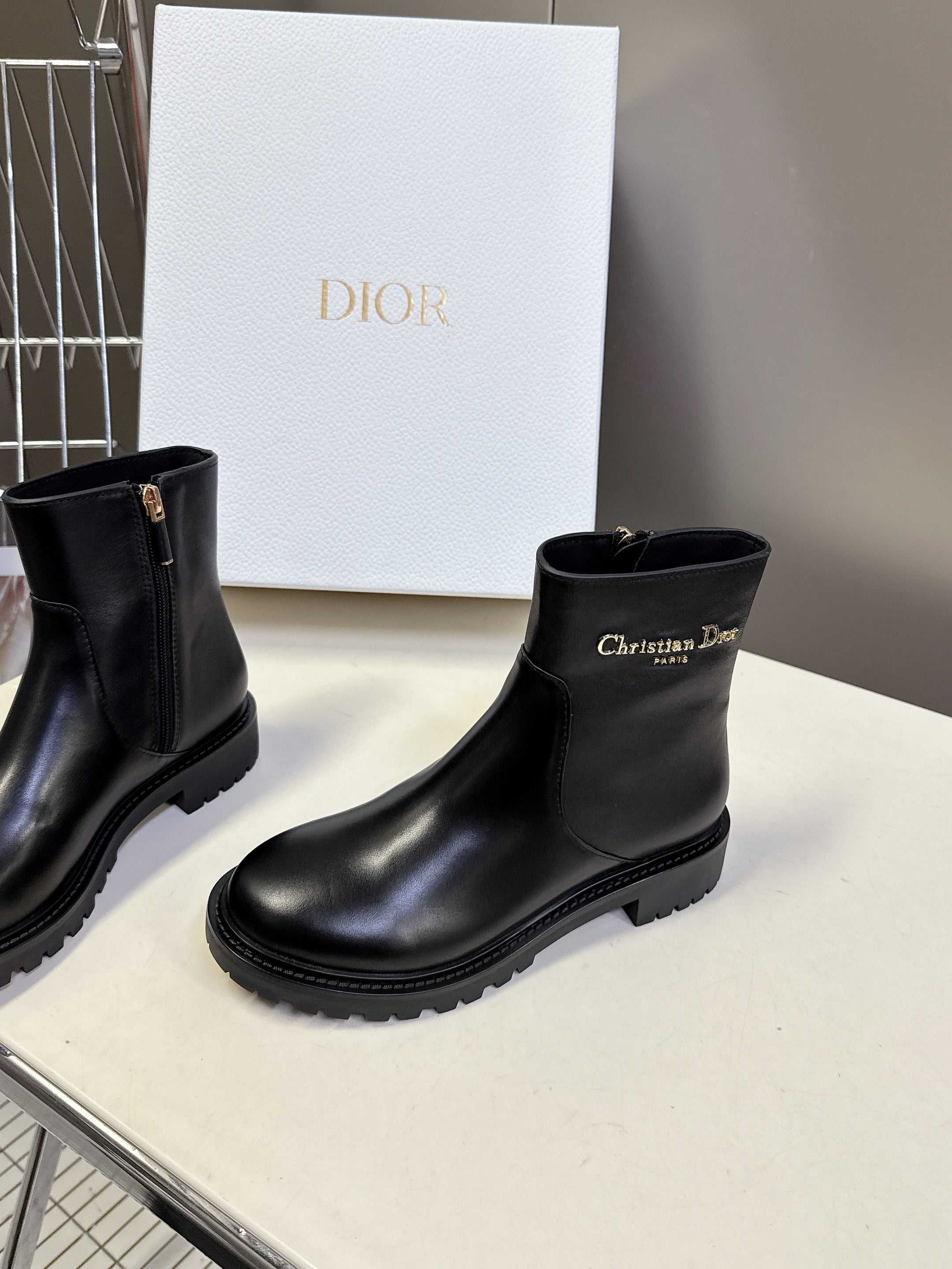 DIOR 25S D-MAJOR ANKLE BOOTS IN BLACK LAMBSKIN WITH GOLD HARDWARE