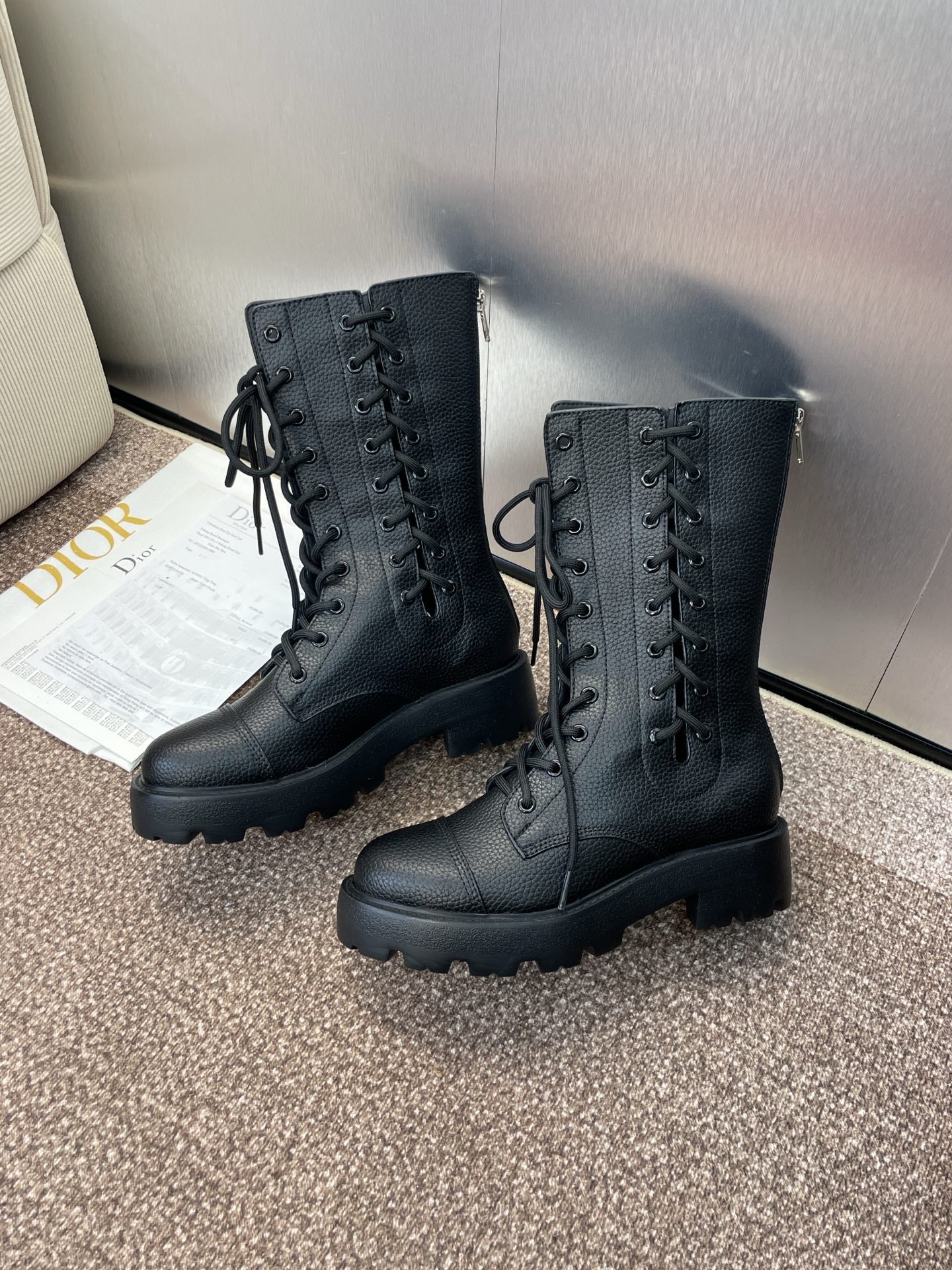 DIOR 25S D-ROAD ANKLE BOOT 45MM IN BLACK GRAINED CALFSKIN