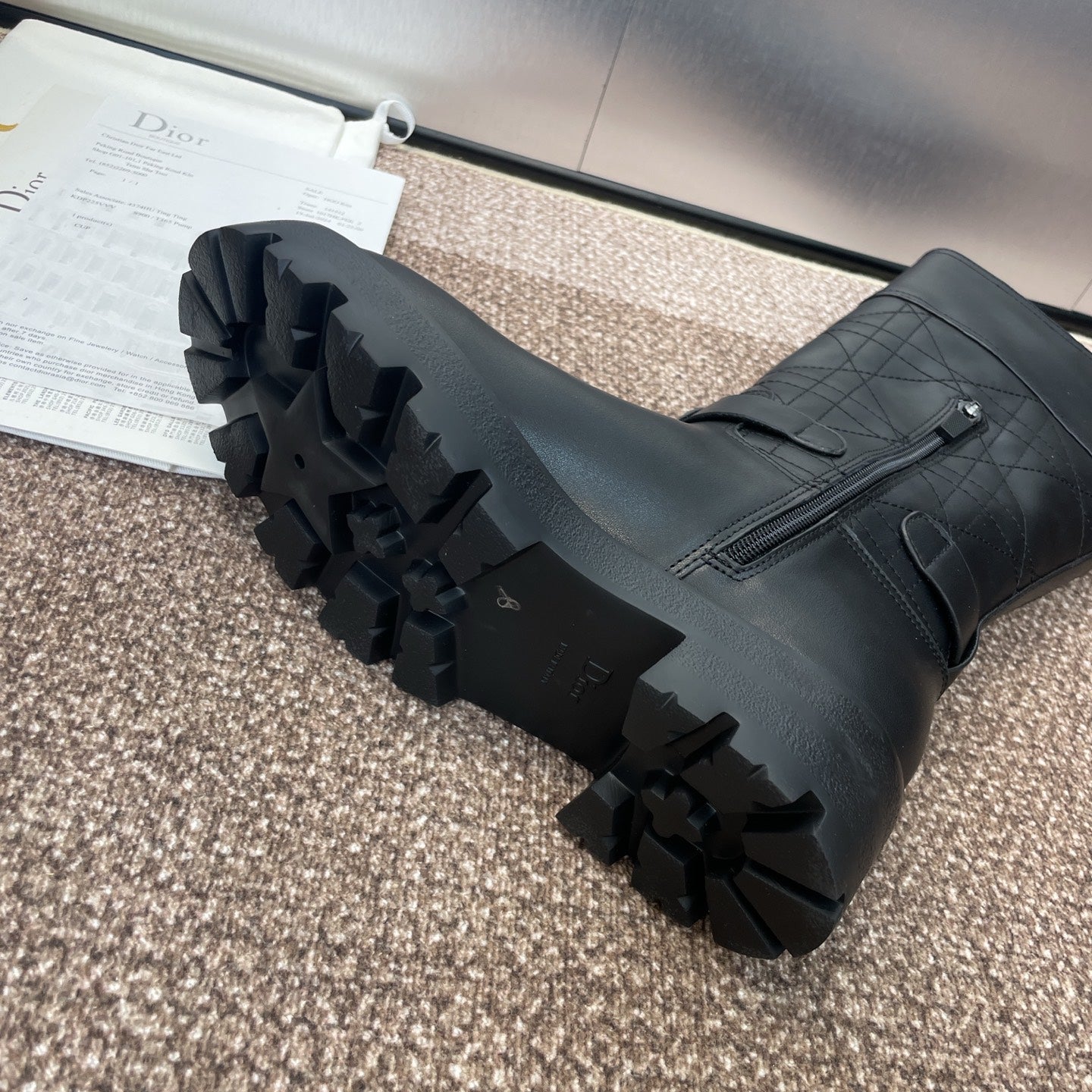 DIOR 25S D-TOWN BOOT 45MM IN BLACK CALFSKIN WITH EMBROIDERED CANNAGE MOTIF