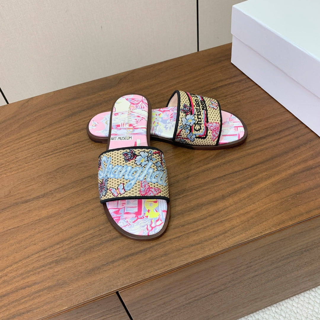 DIOR 25S DWAY SLIDE IN MULTICOLOR CALFSKIN AND FABRIC STYLE 1