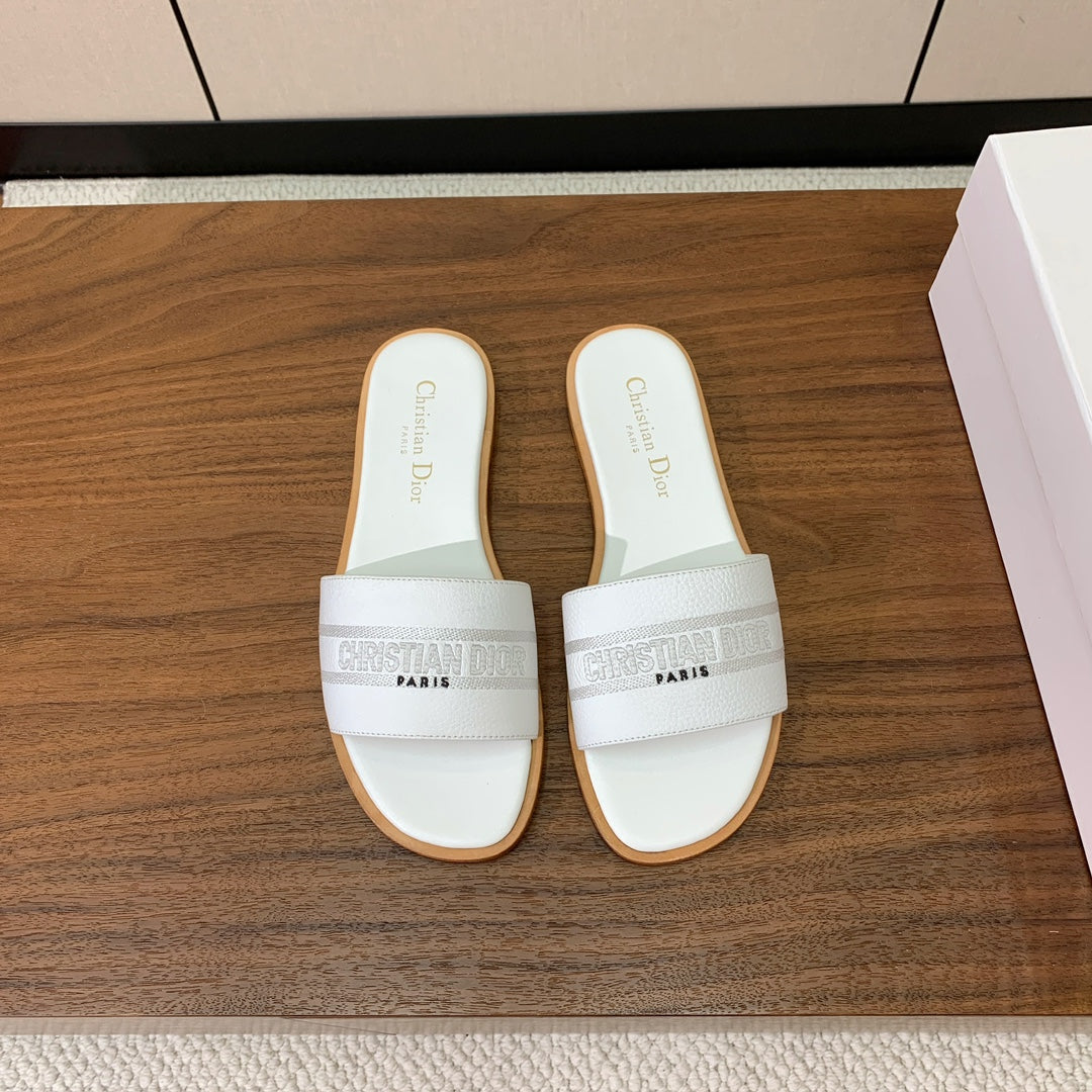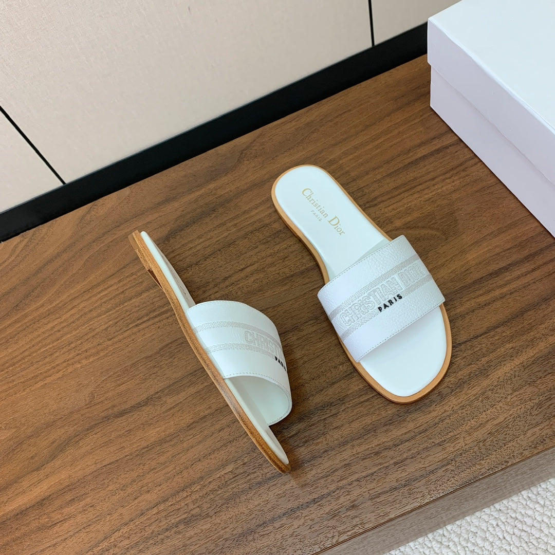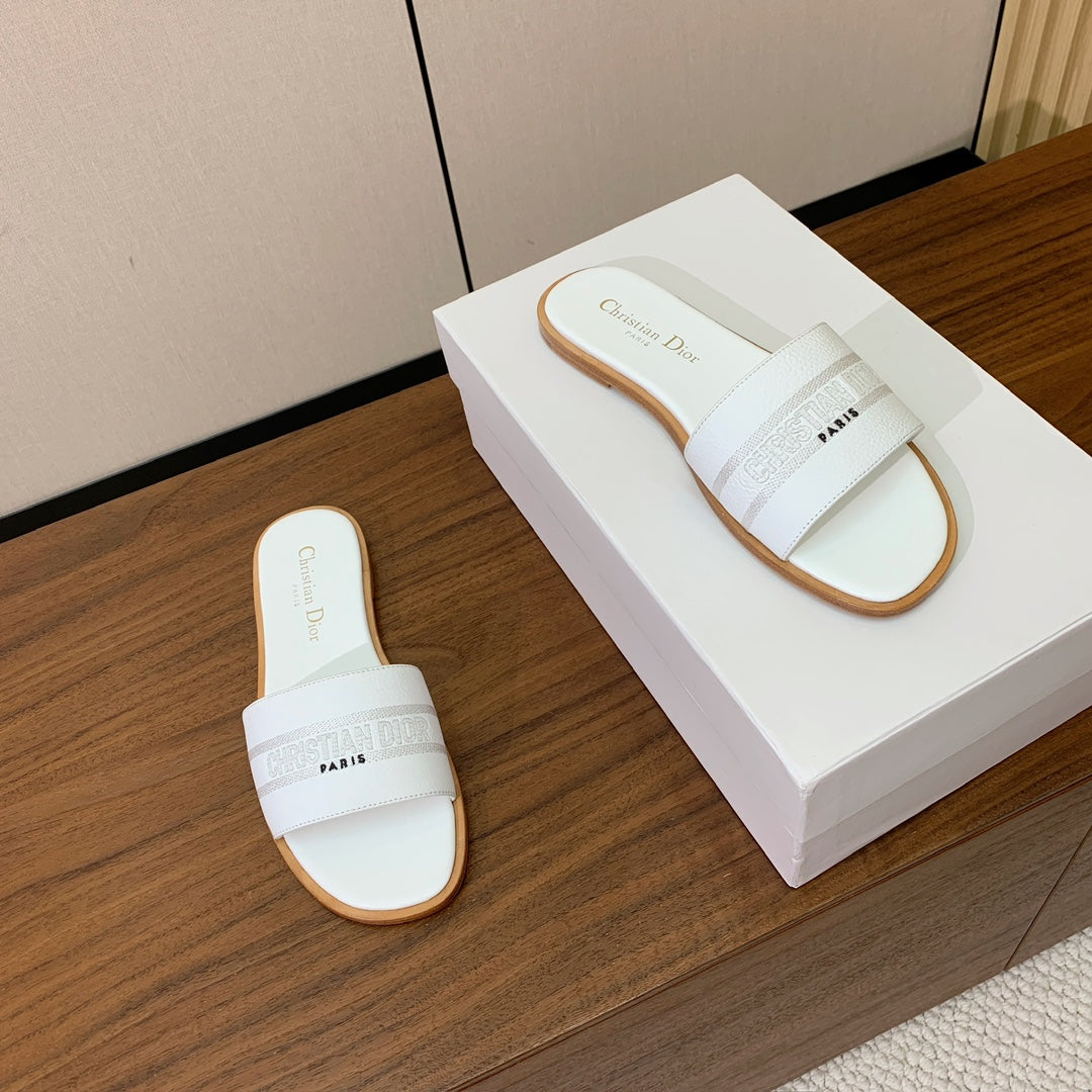 DIOR 25S DWAY SLIDE IN WHITE CALFSKIN