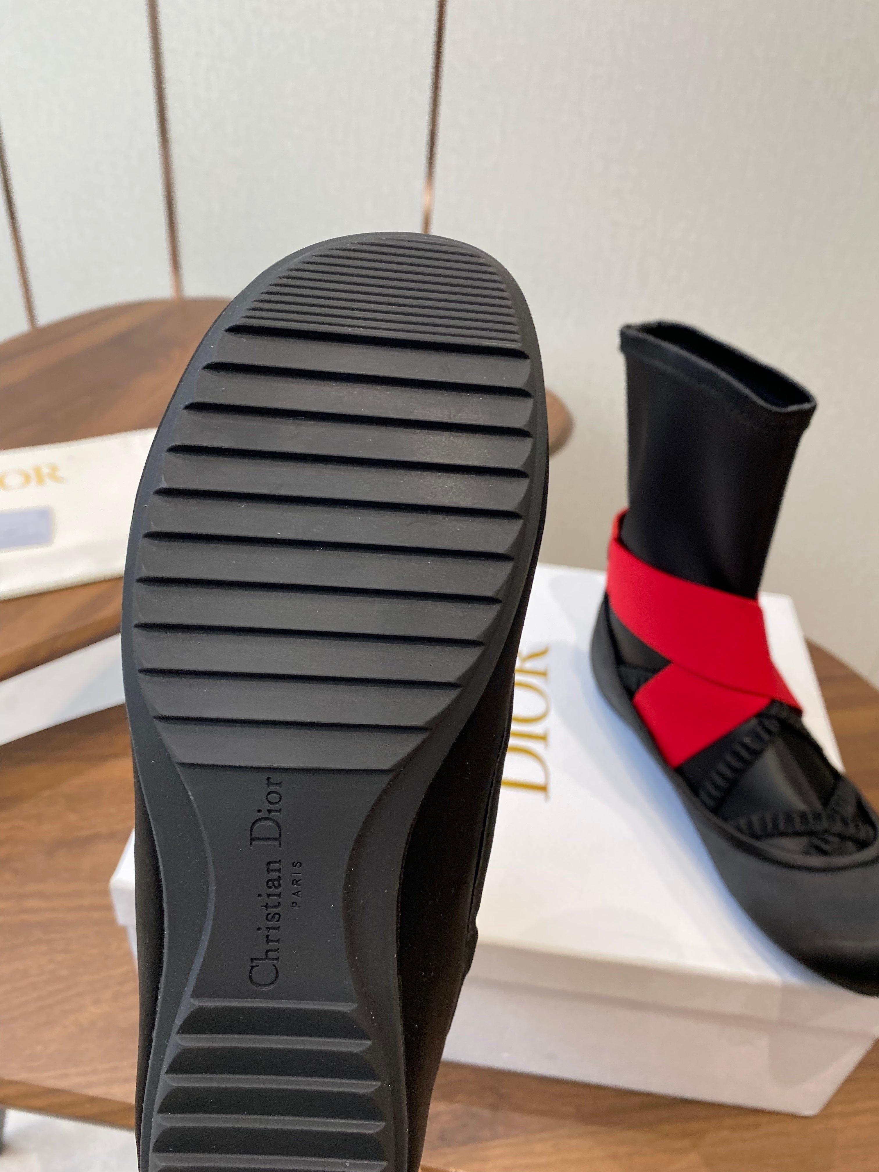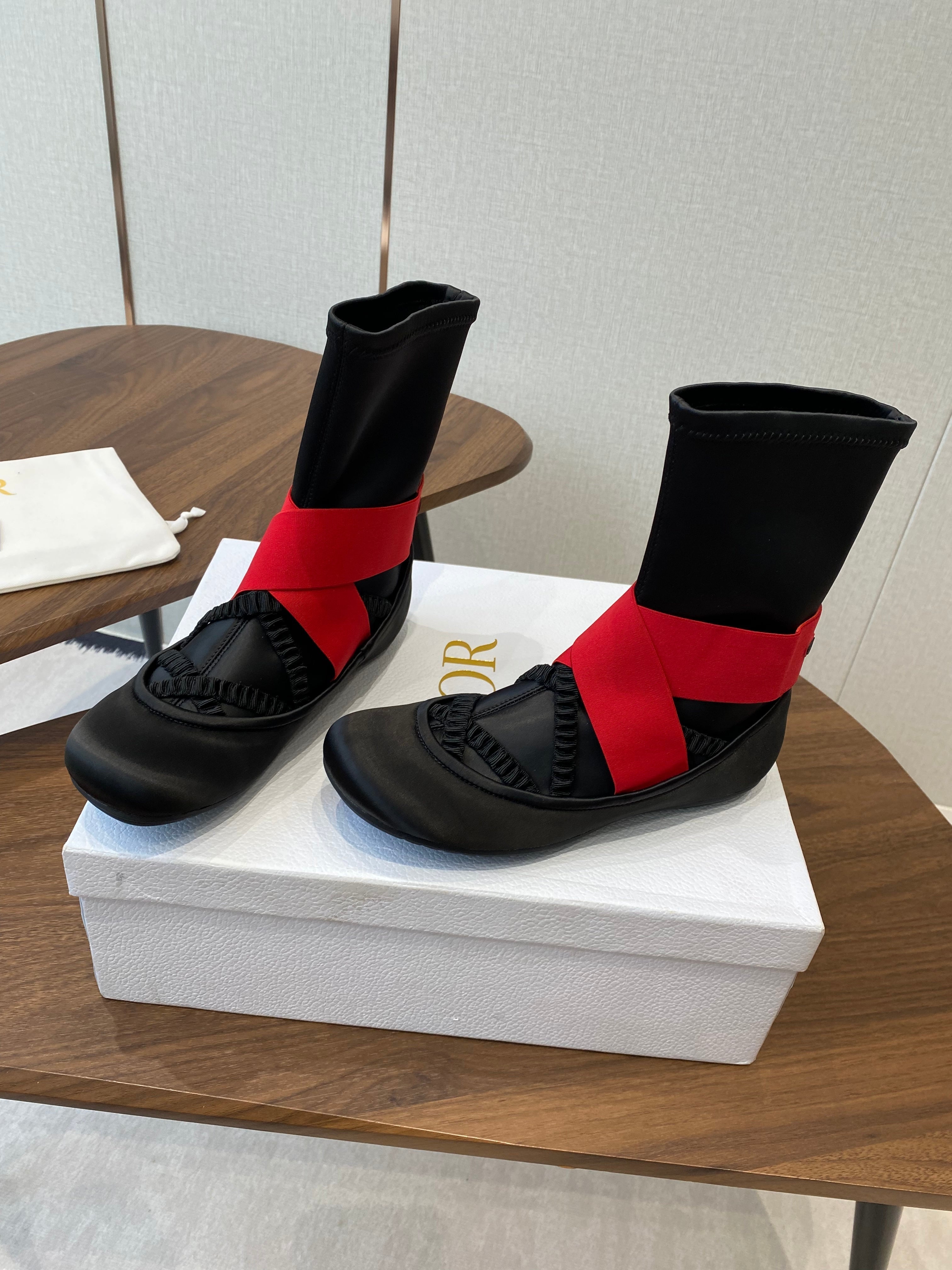DIOR 25S STRETCH BALLET BOOTS IN BLACK AND RED SATIN
