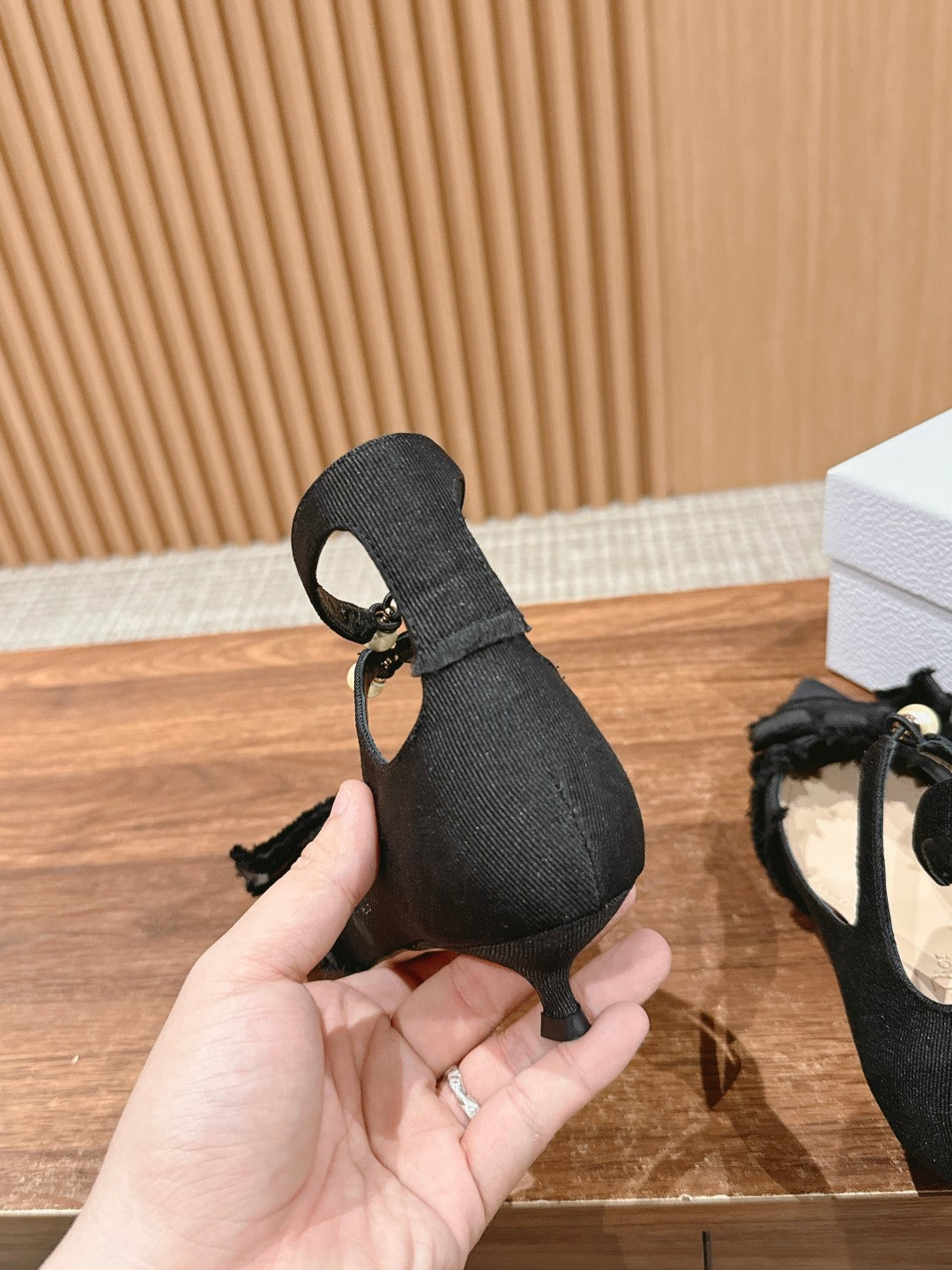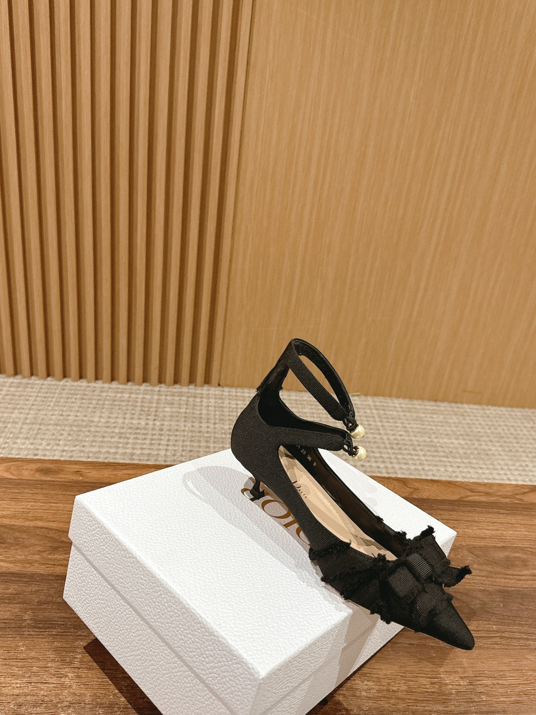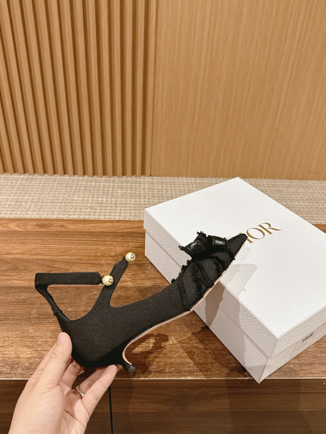 DIOR ADIORABLE HIGH HEEL 25S IN BLACK FABRIC WITH PEARL DETAILING