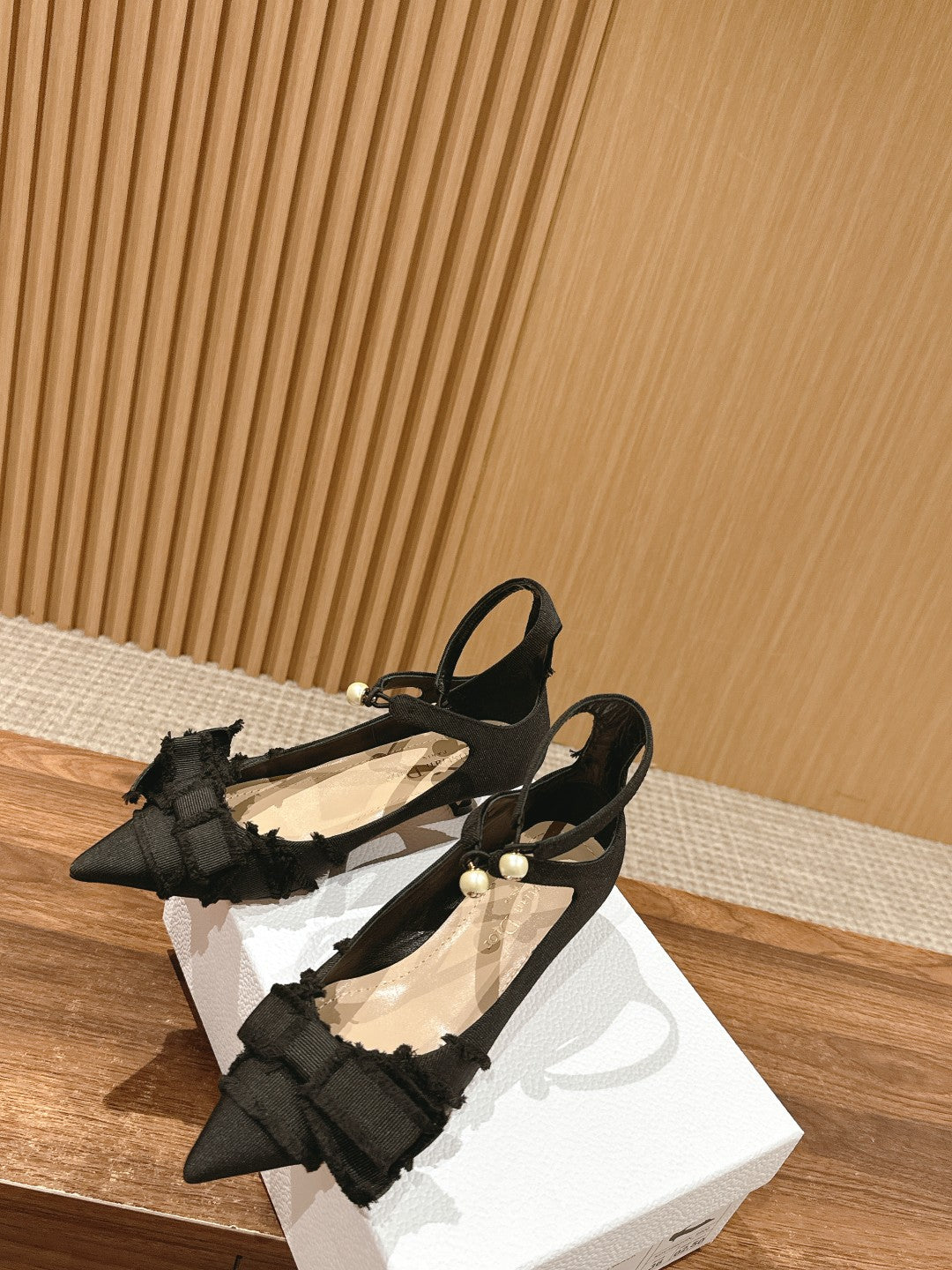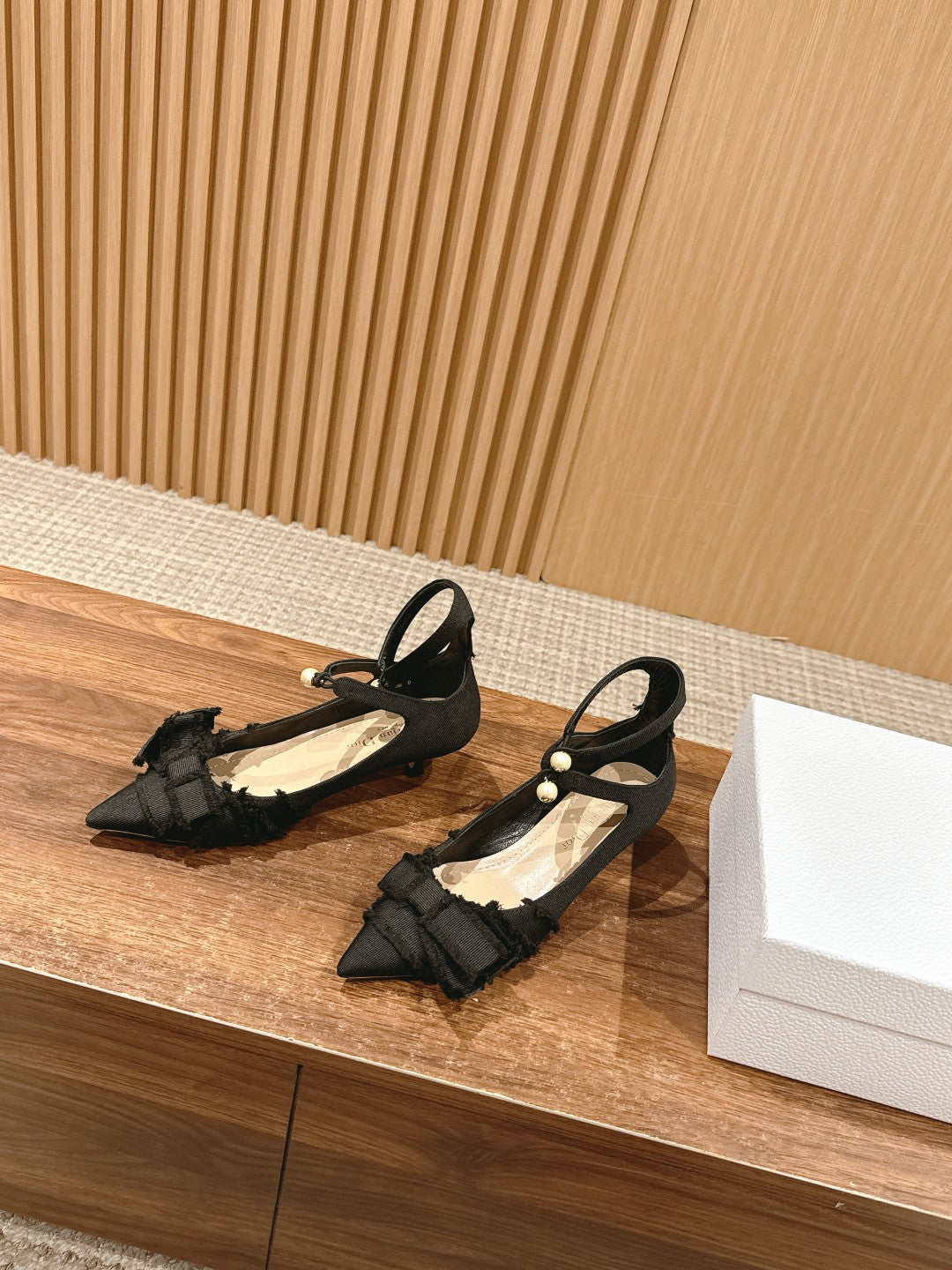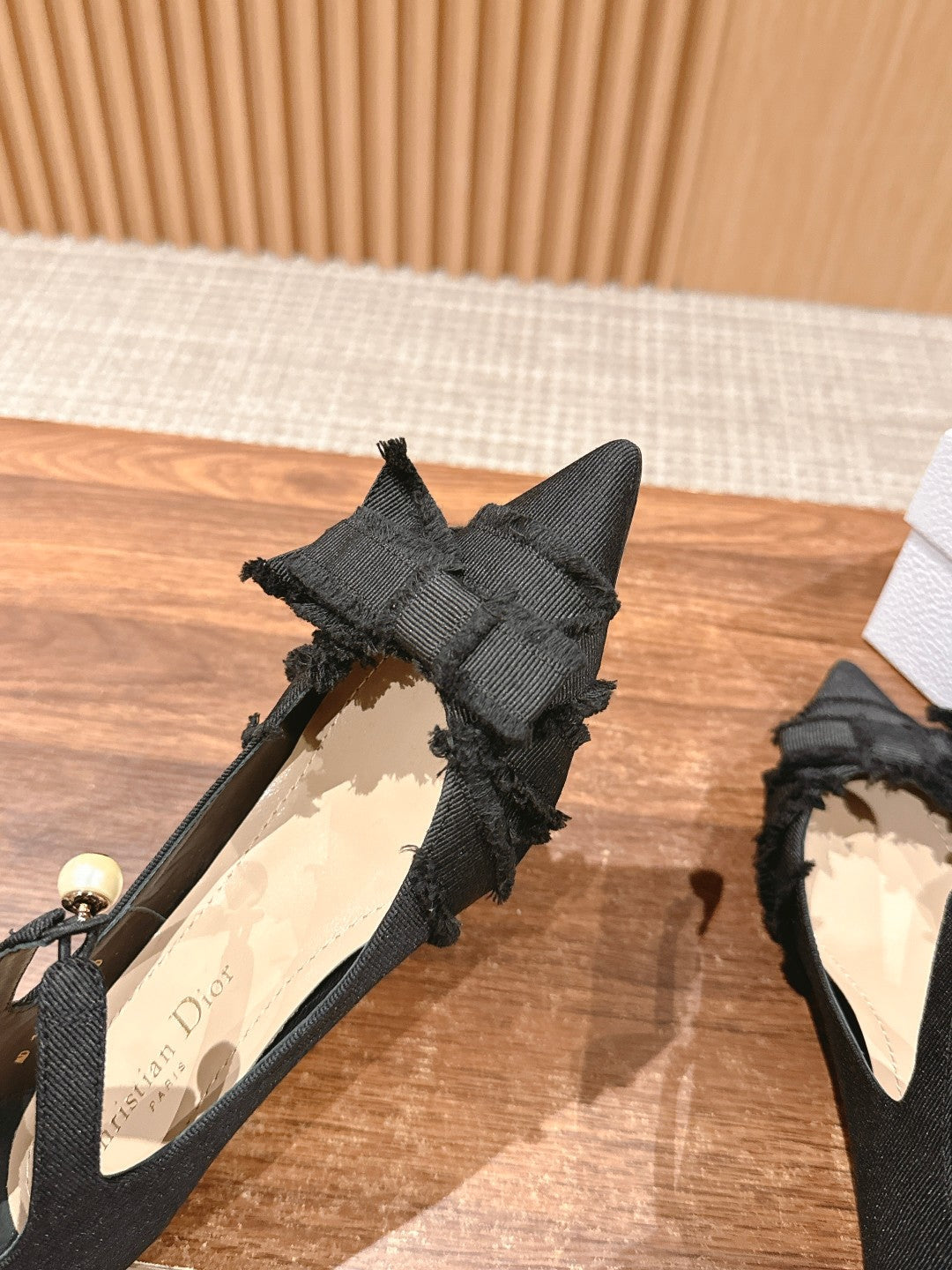 DIOR ADIORABLE HIGH HEEL 25S IN BLACK FABRIC WITH PEARL DETAILING