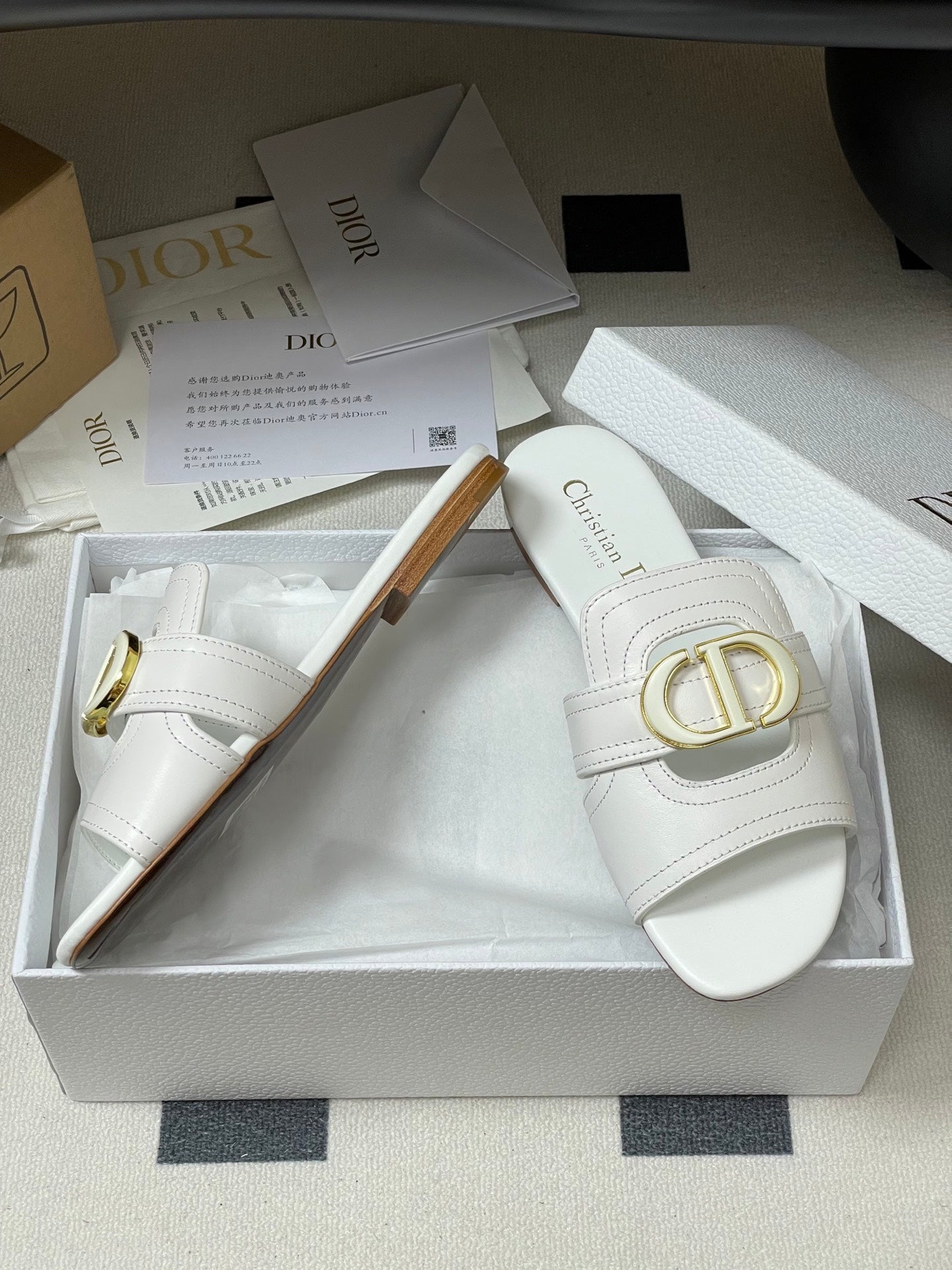 DIOR CLASSIC MONTAIGNE SANDALS 25S IN WHITE LAMBSKIN WITH CD LOGO