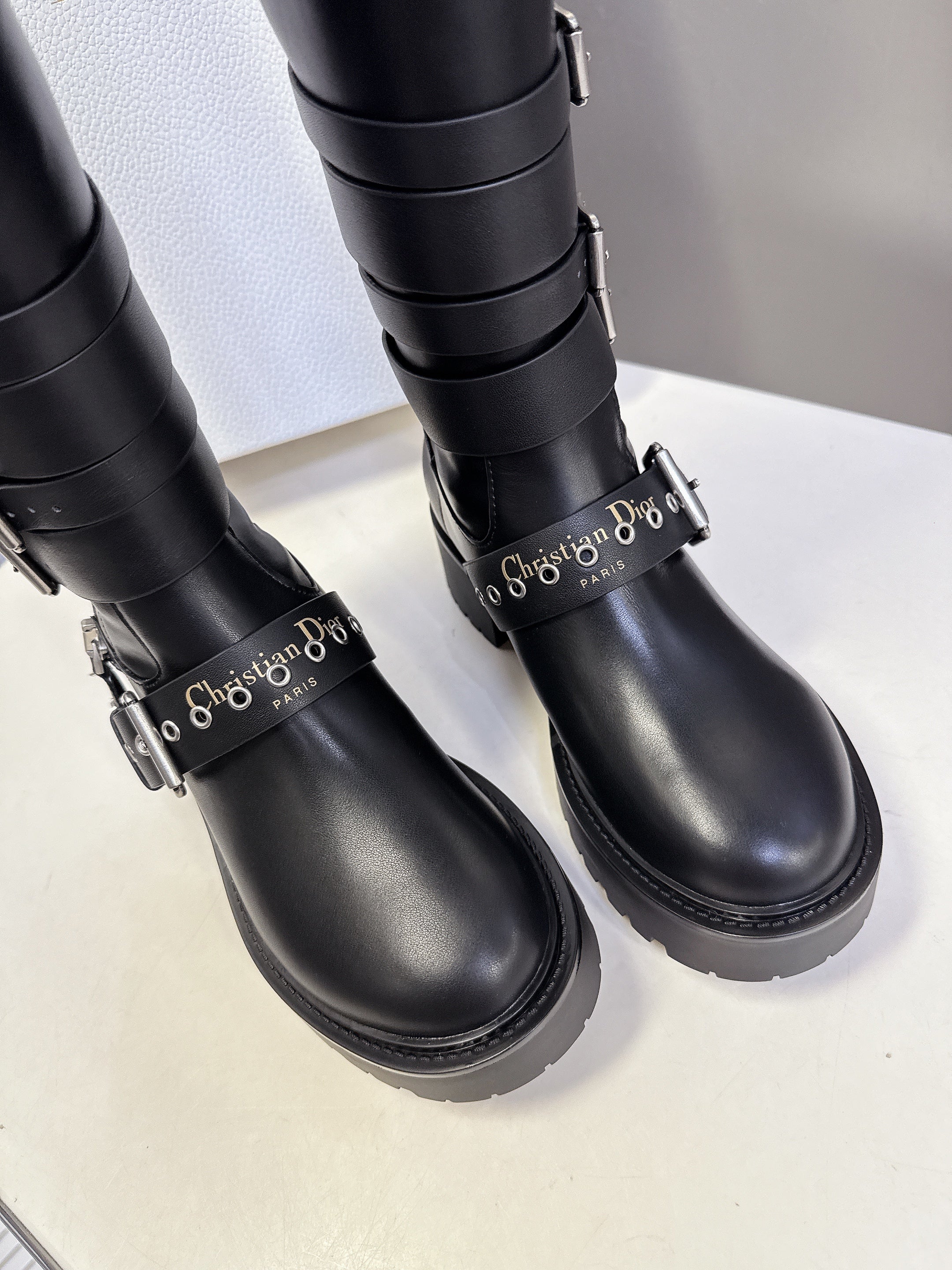 DIOR D-FIGHT BOOT 25S IN BLACK CALFSKIN WITH SILVER HARDWARE