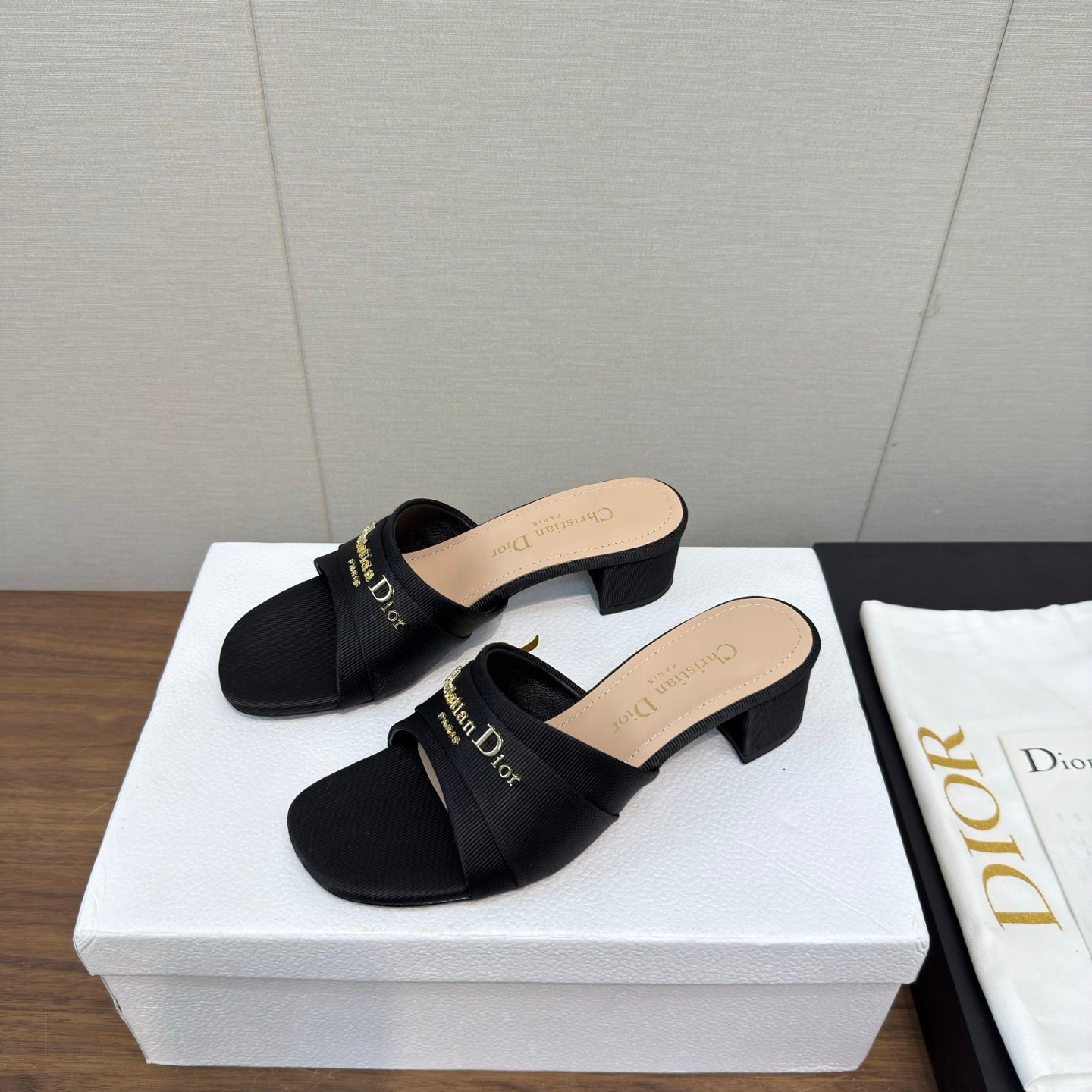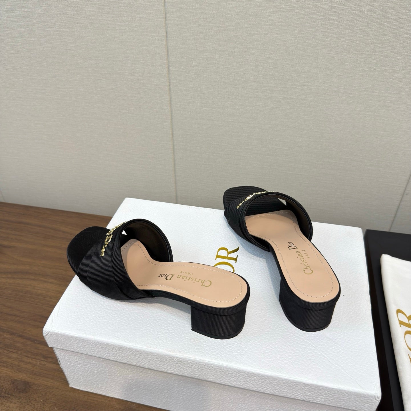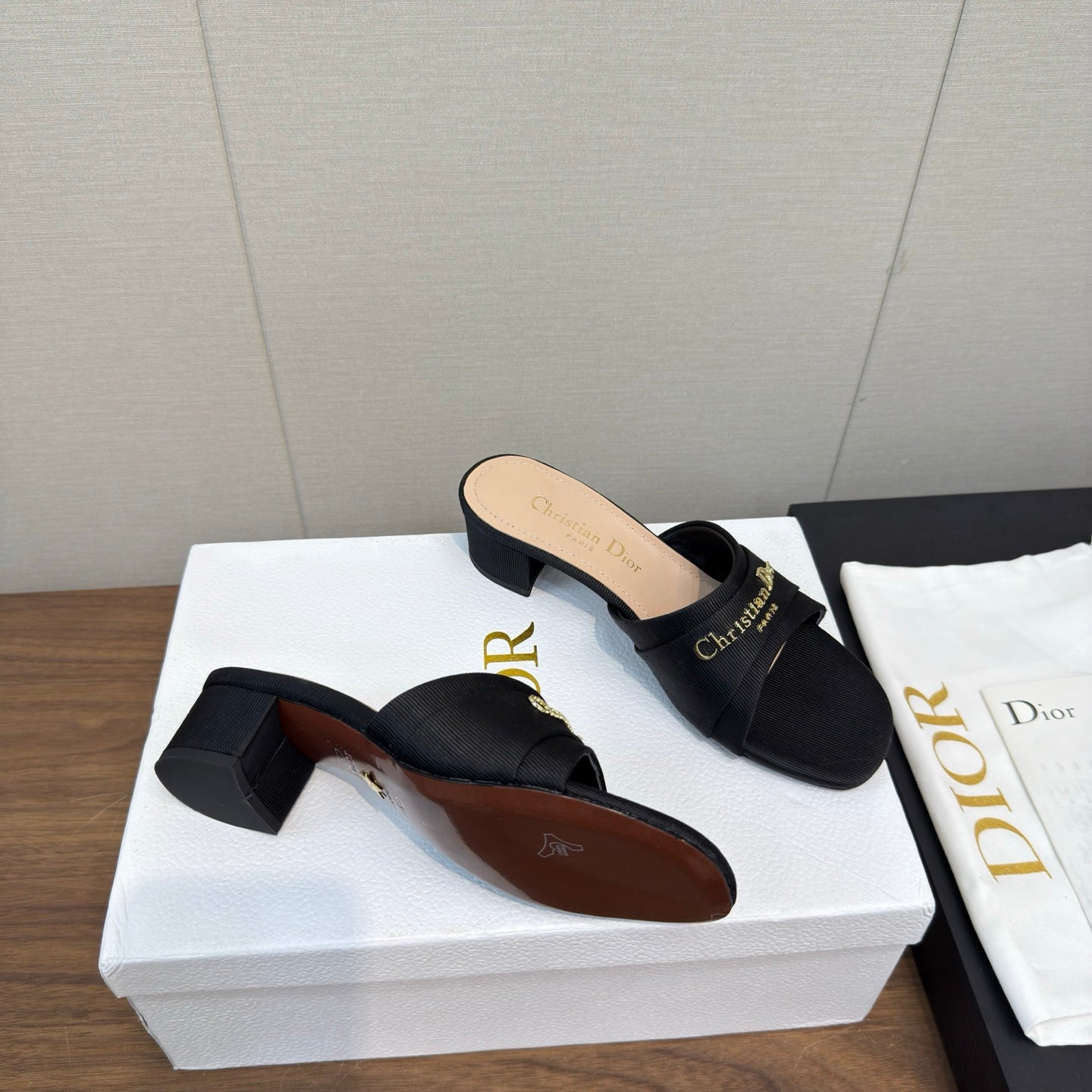 DIOR HIGH HEEL 25S 45 MM IN BLACK LAMBSKIN AND FABRIC WITH GOLD HARDWARE