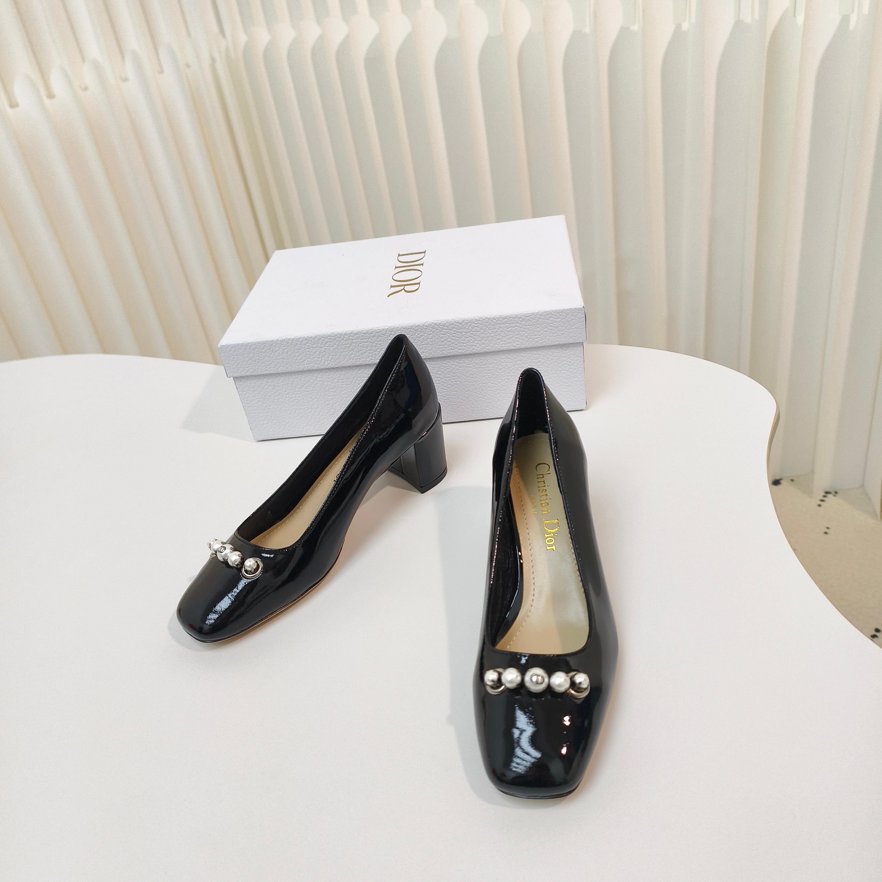 DIOR HIGH HEEL 55 MM 25S IN BLACK LAMBSKIN PEARL DETAILING