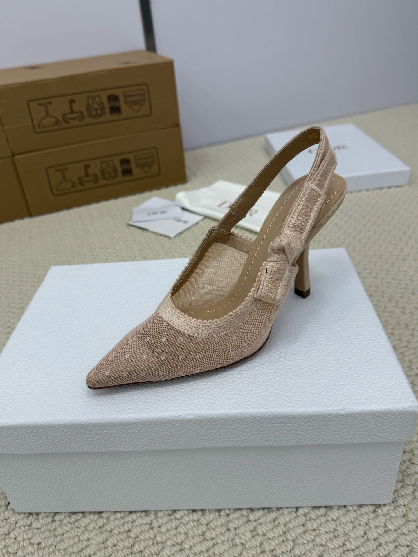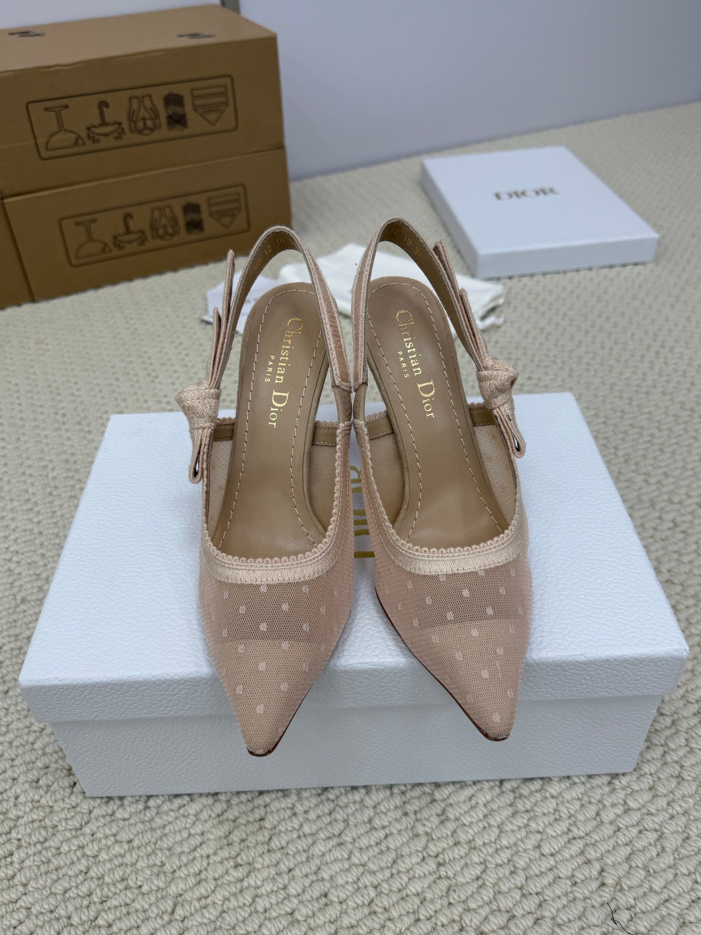 DIOR HIGH SLINGBACK 100 MM 25S IN NUDE LACE NET FABRIC AND SUEDE