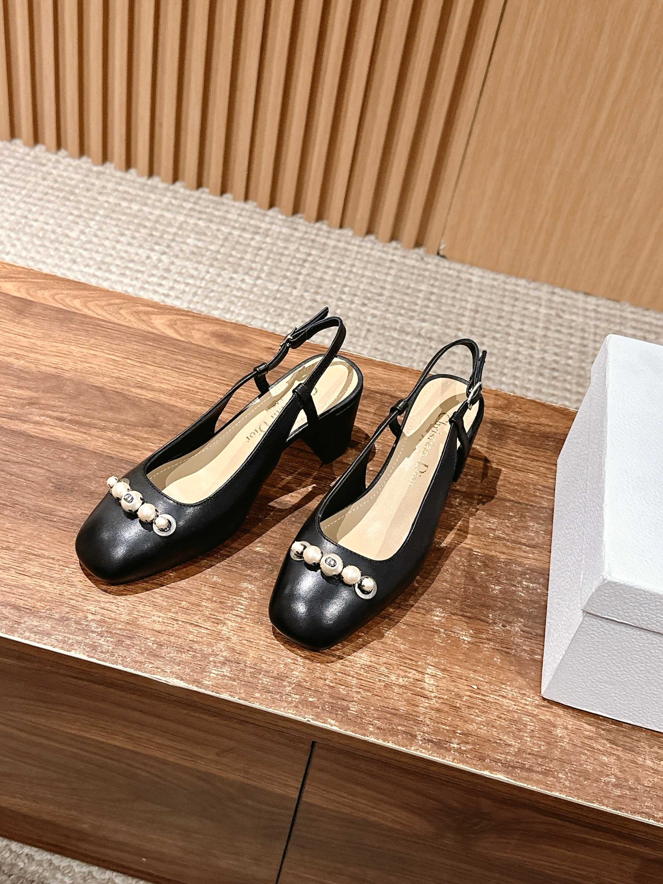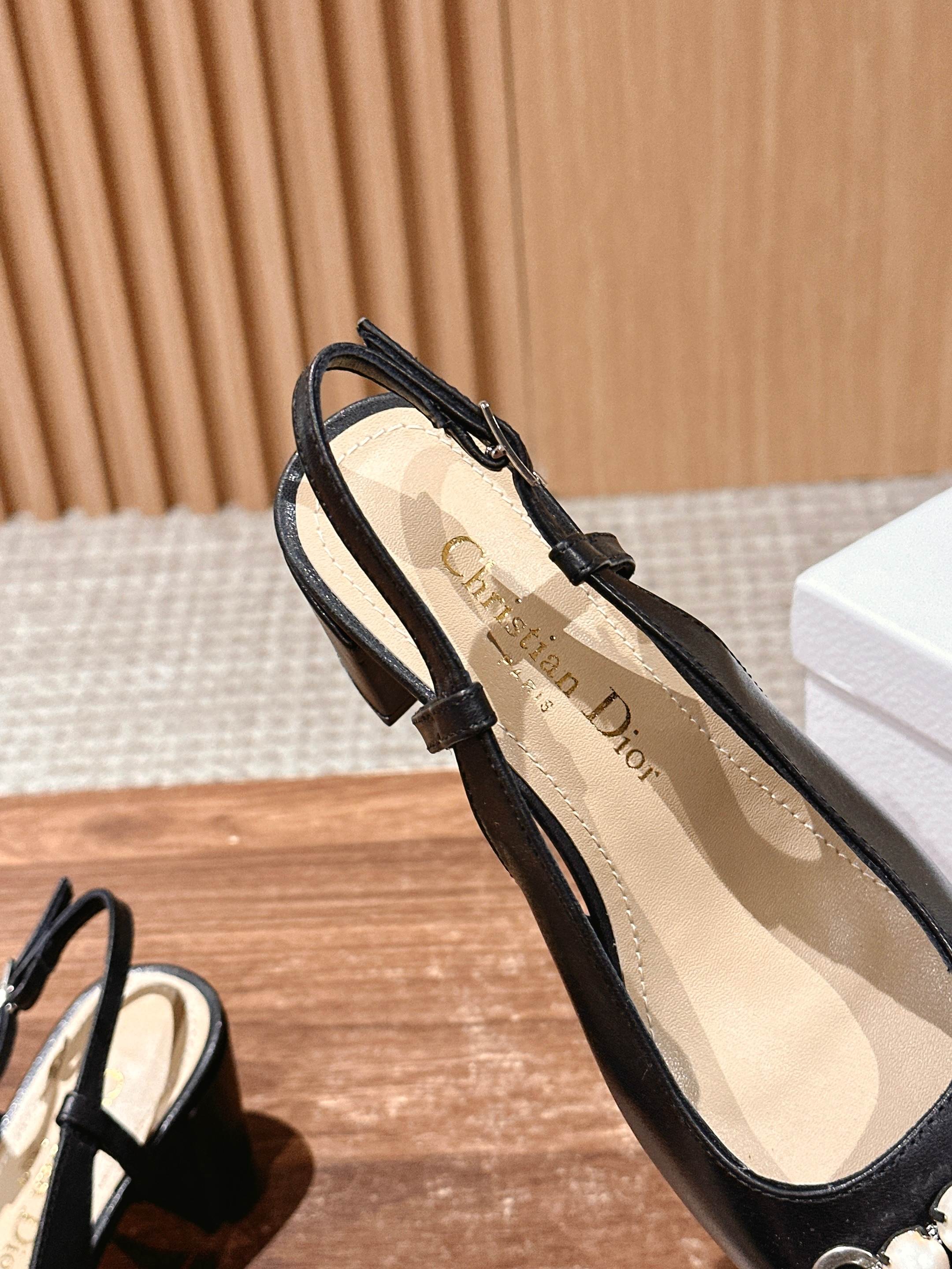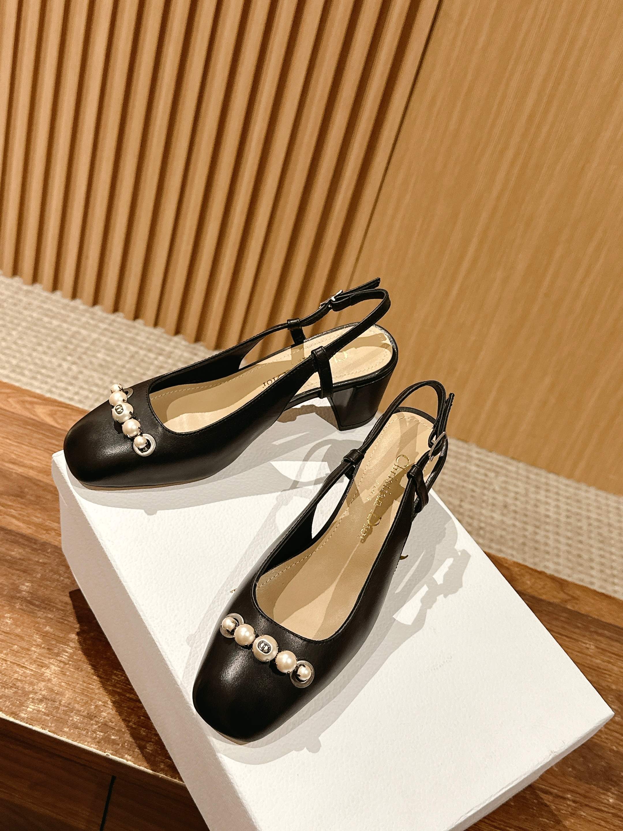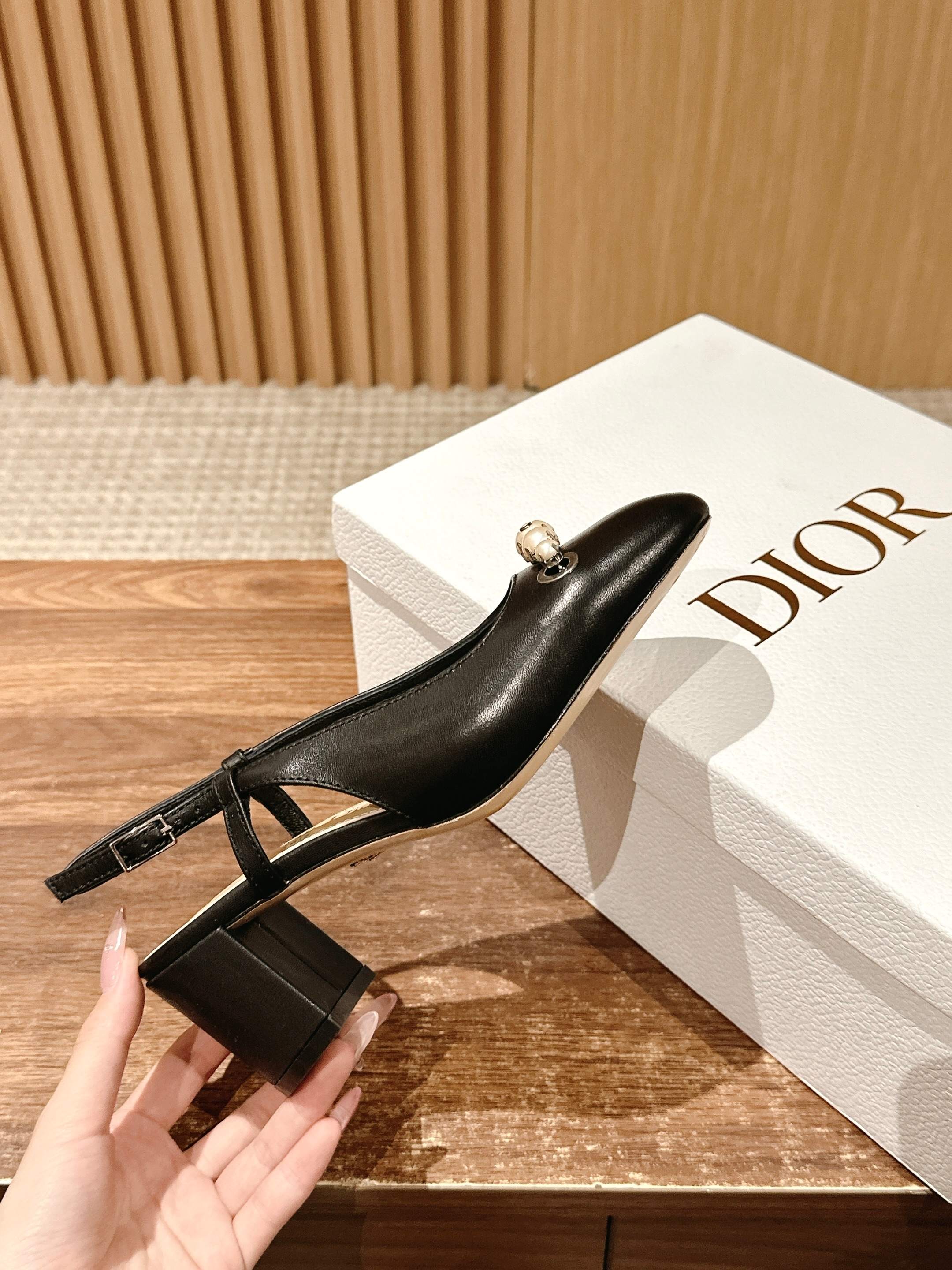 DIOR HIGH SLINGBACK 55 MM 25S IN BLACK LAMBSKIN PEARL DETAILING