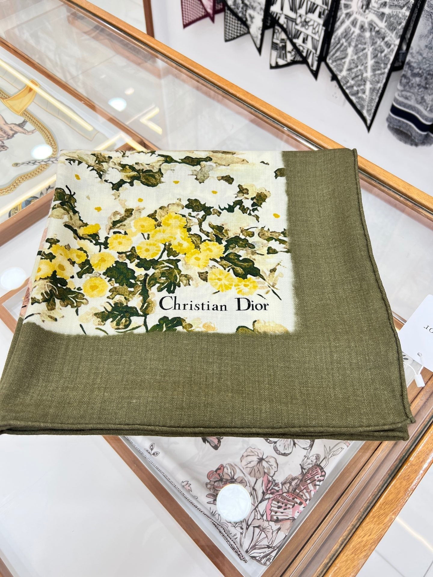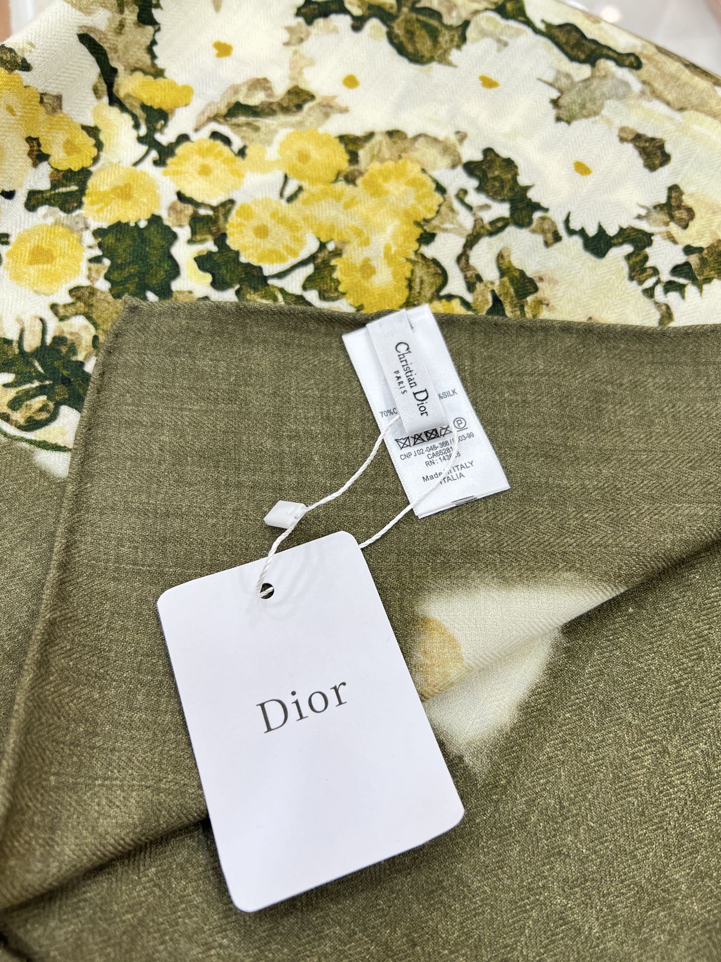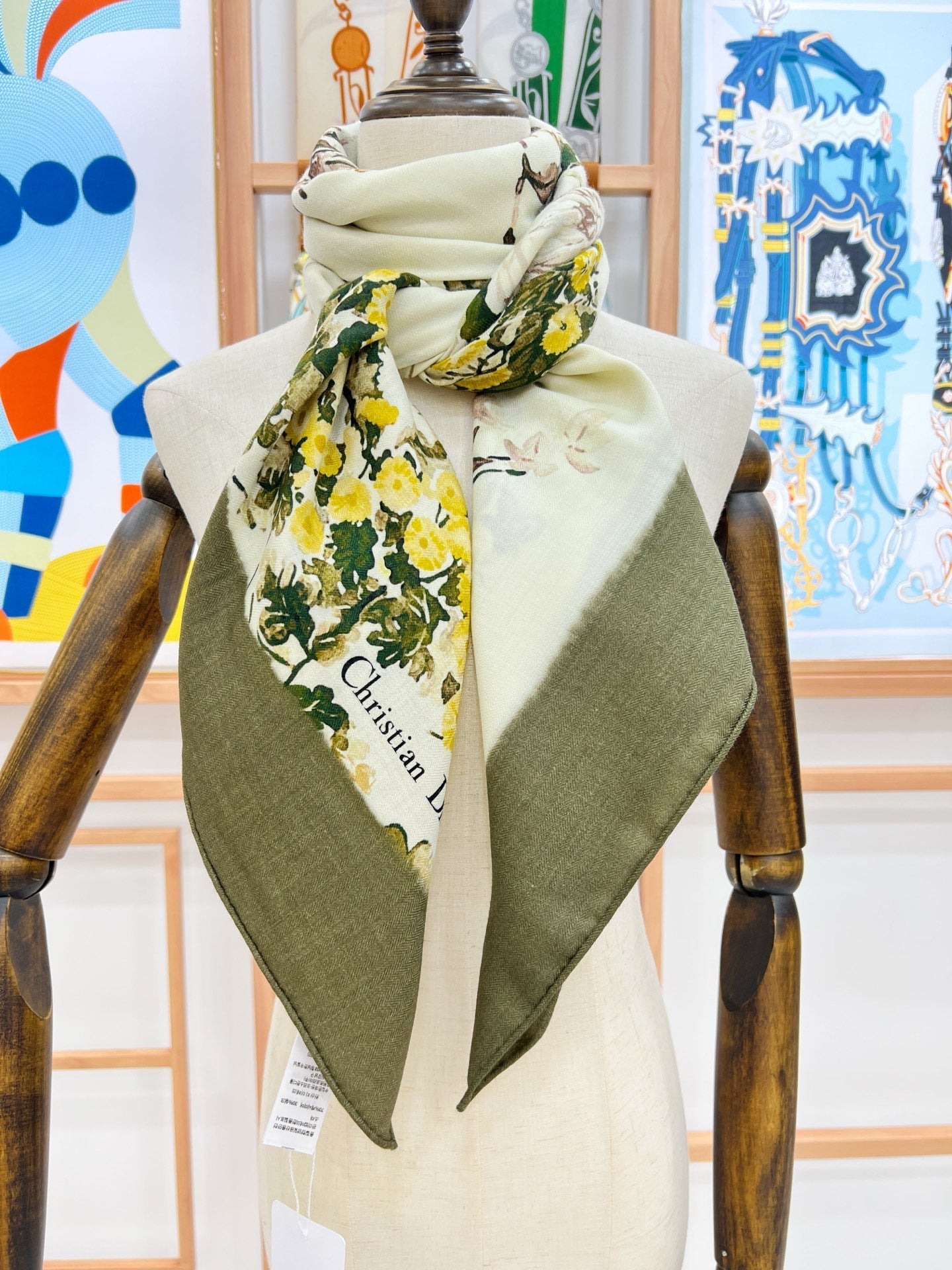 DIOR REVERSIBLE SCARF 140 CM IN CREAM WHITE MIX GREEN WOOL-SILK FABRIC 735876