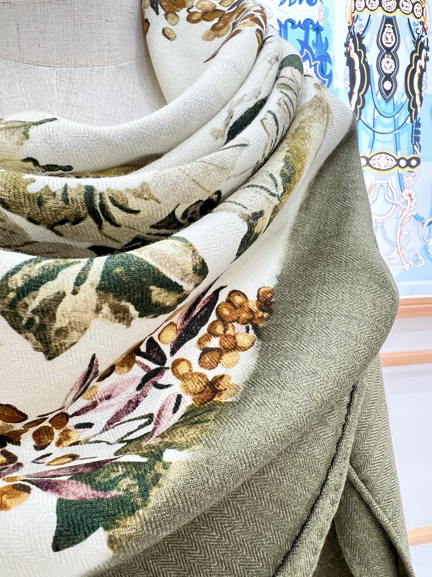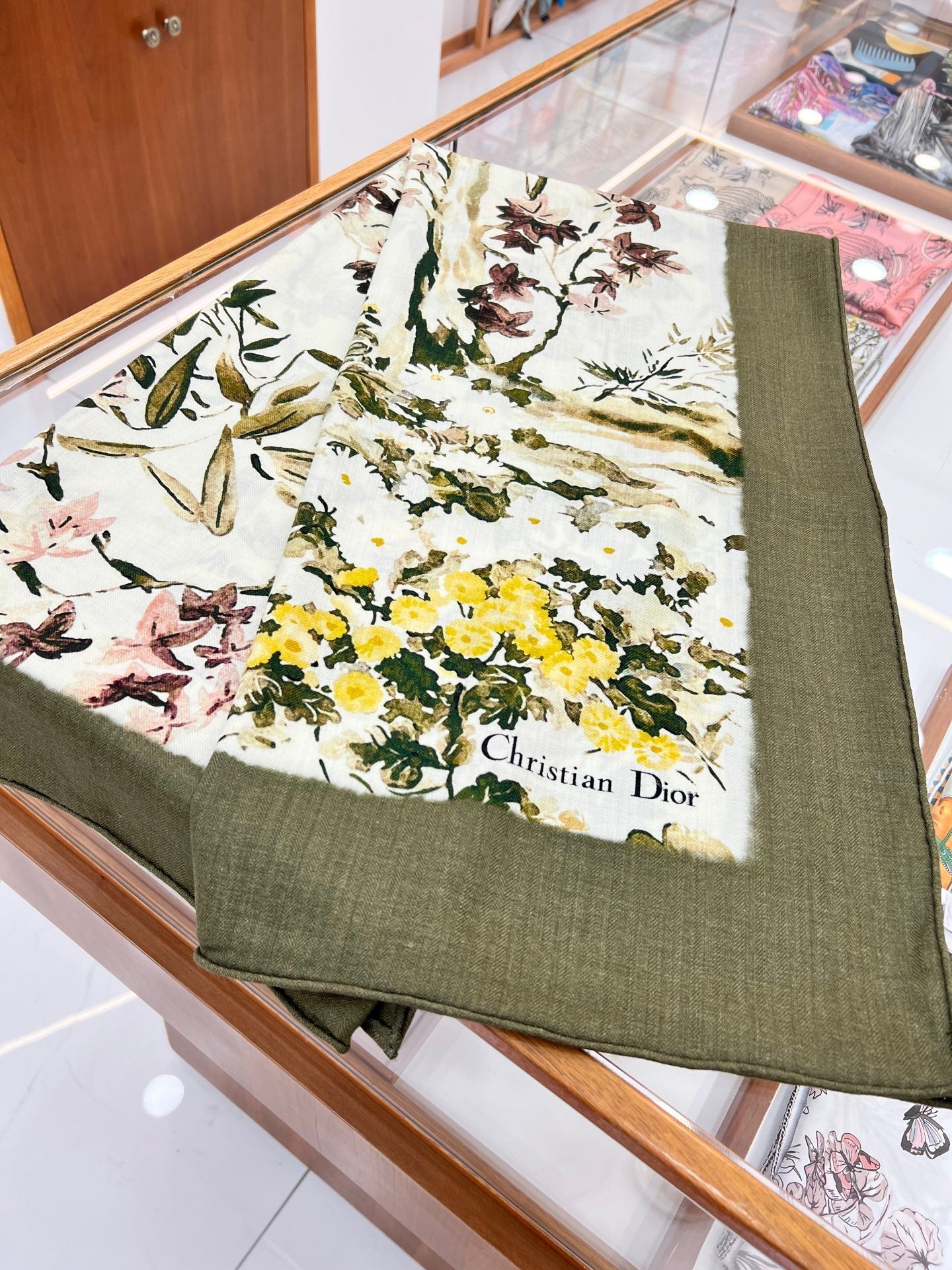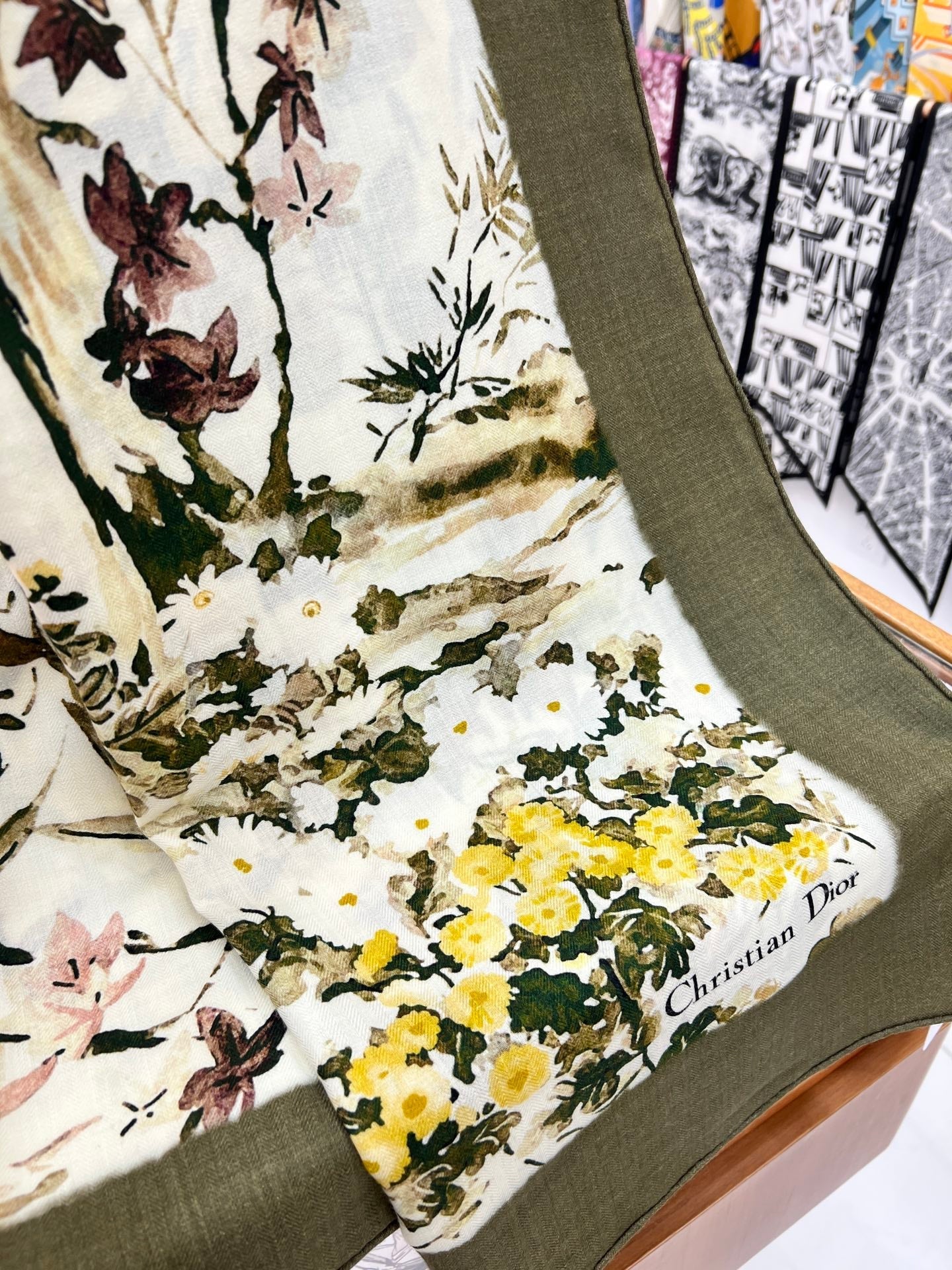 DIOR REVERSIBLE SCARF 140 CM IN CREAM WHITE MIX GREEN WOOL-SILK FABRIC 735876