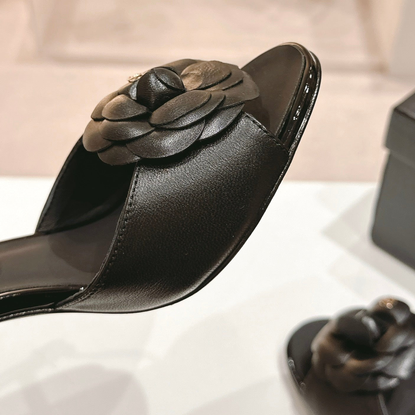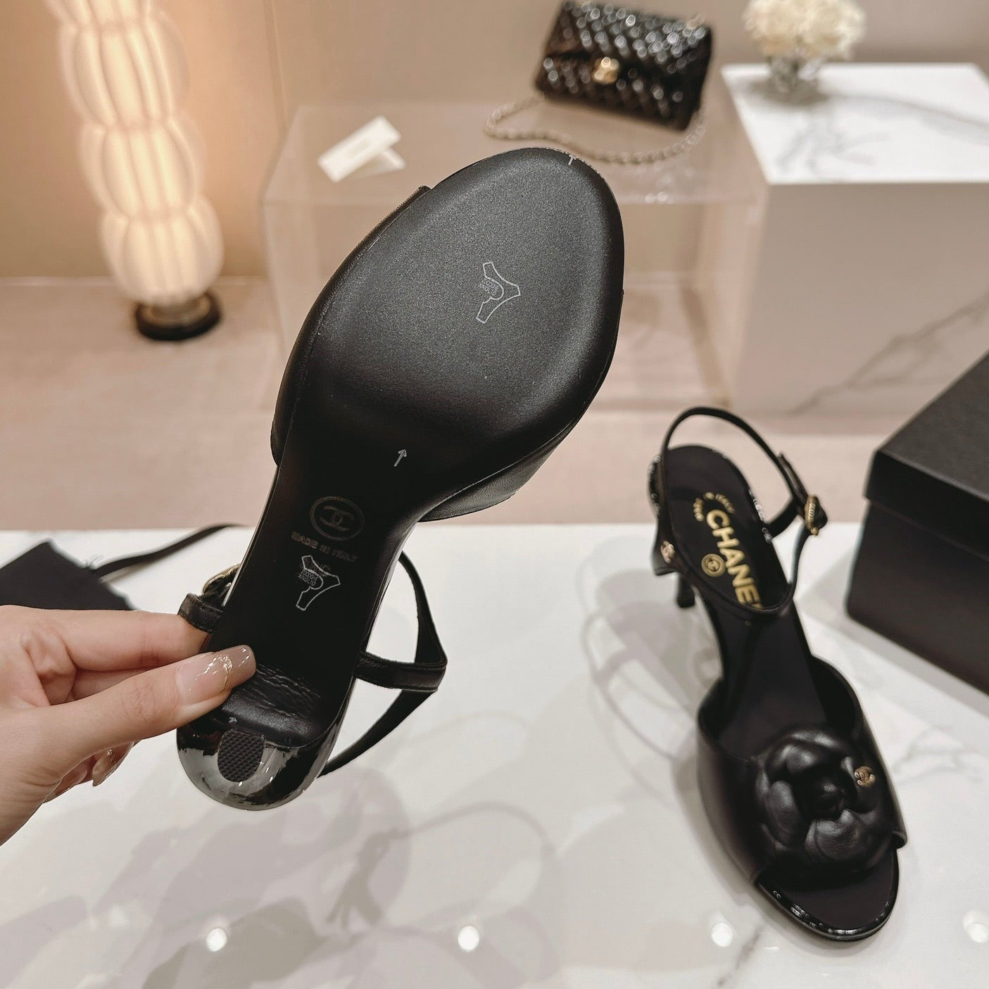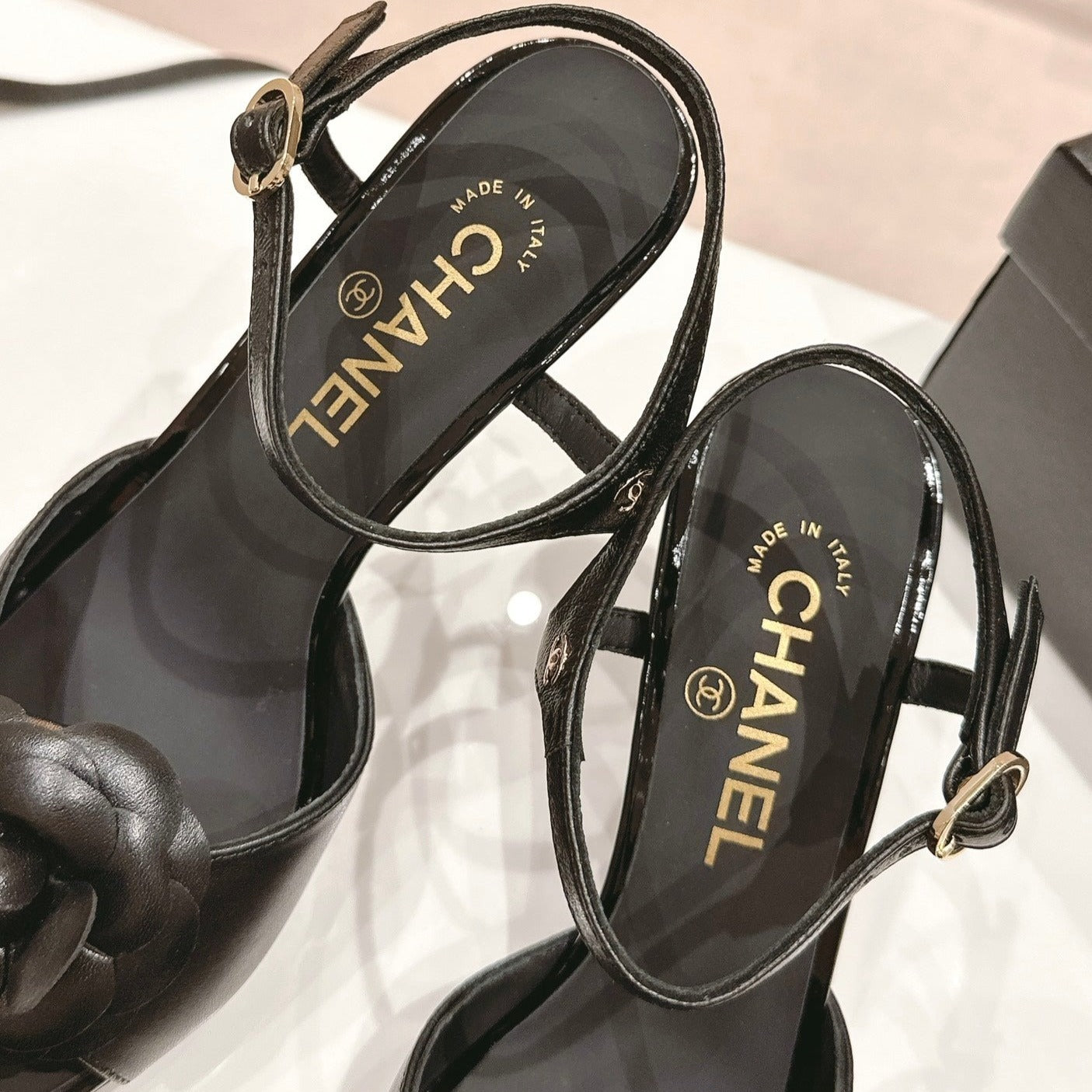 Double C New Camellia High Heel Sandals Black