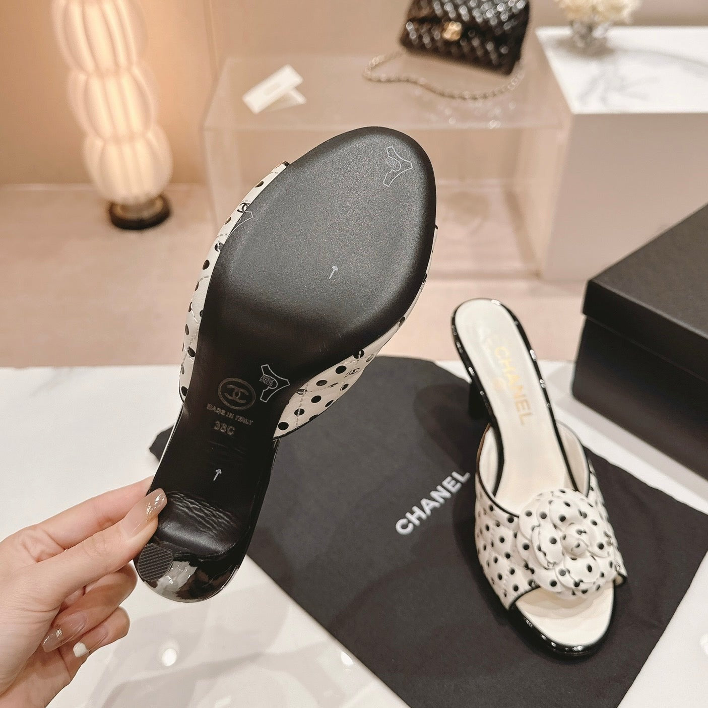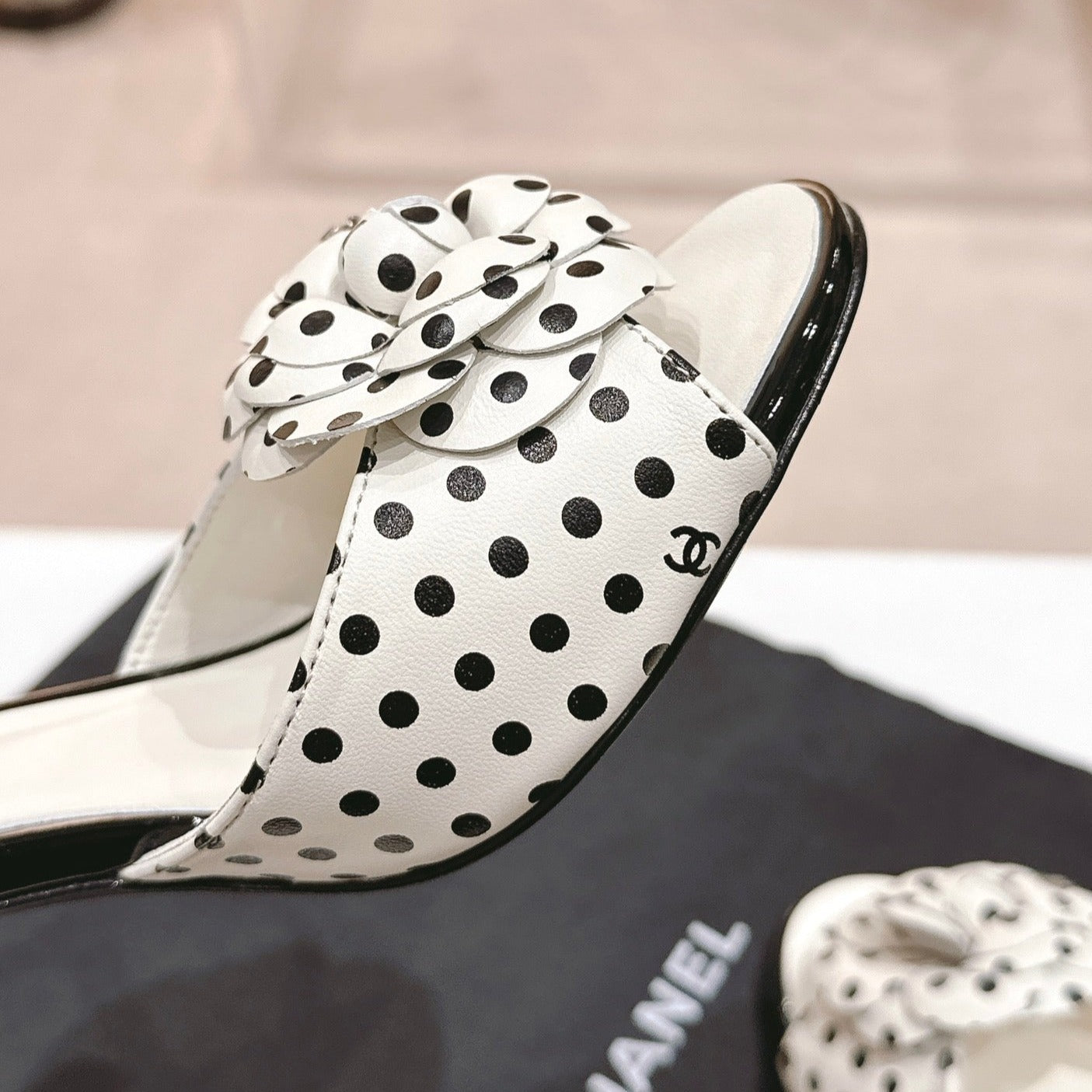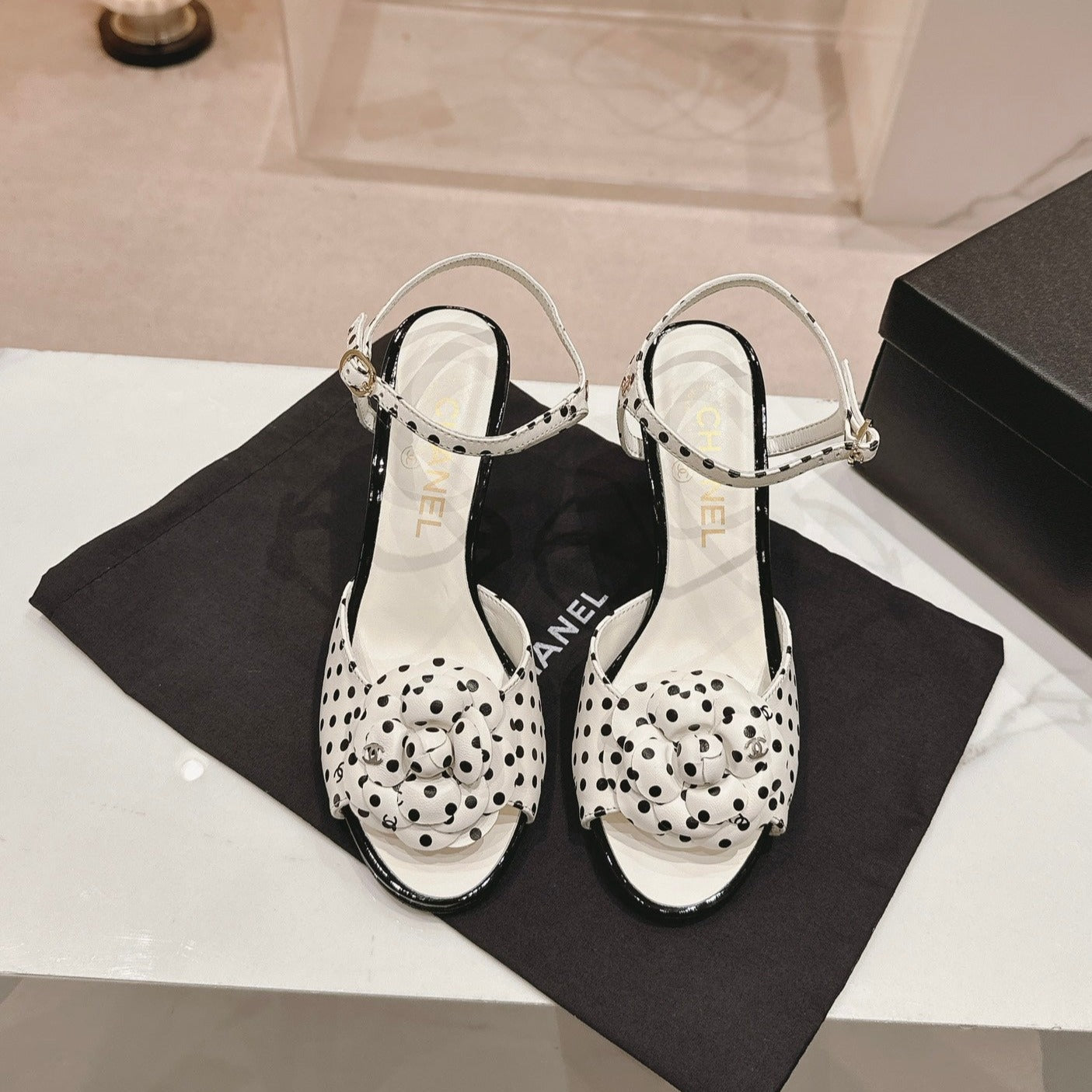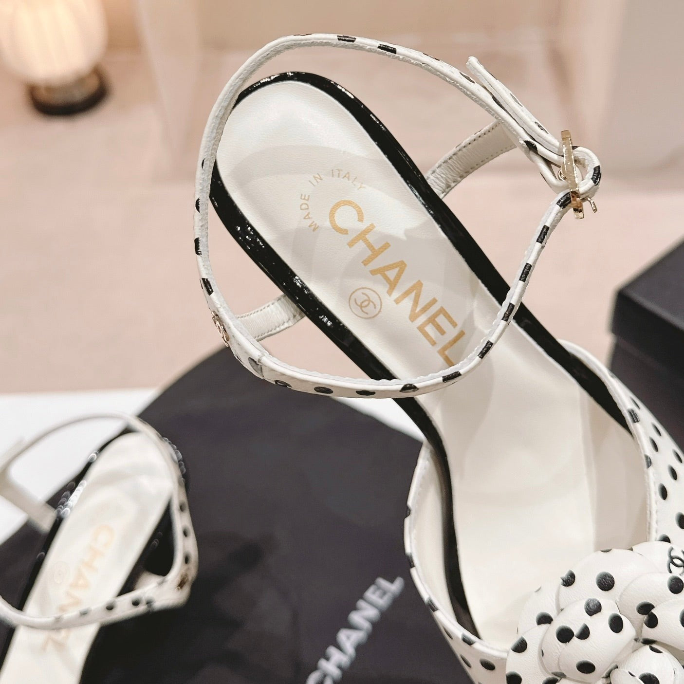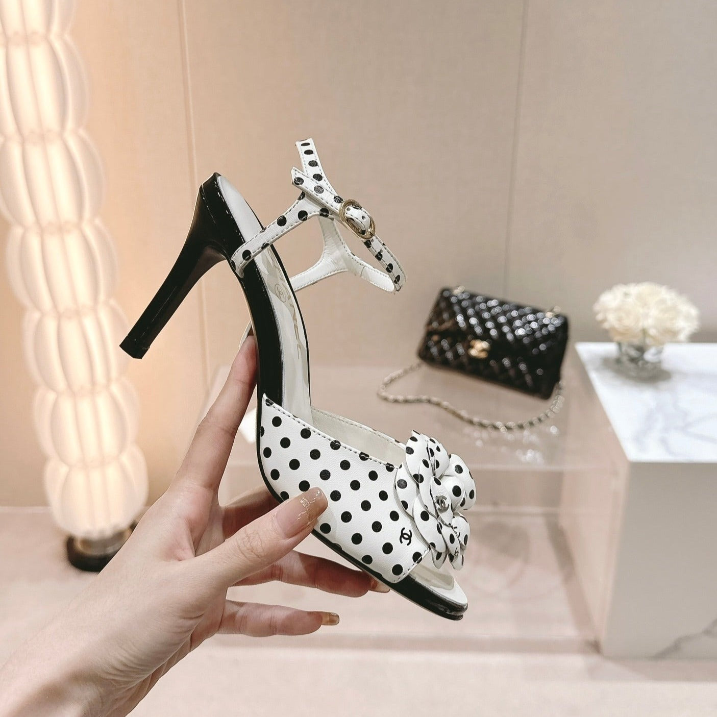 Double C New Camellia High Heel Sandals White/ Black Caro