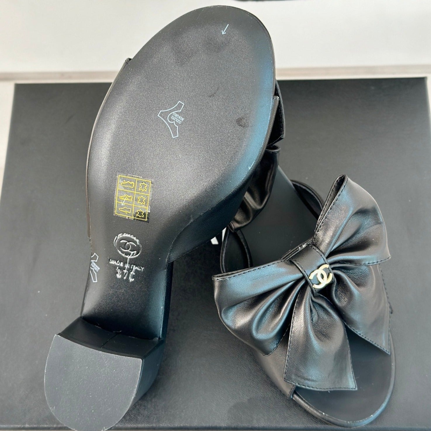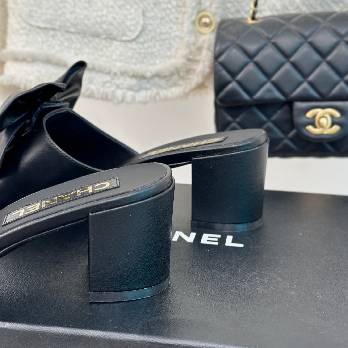 Double CC Big Bow High Heels Sheepskin Black
