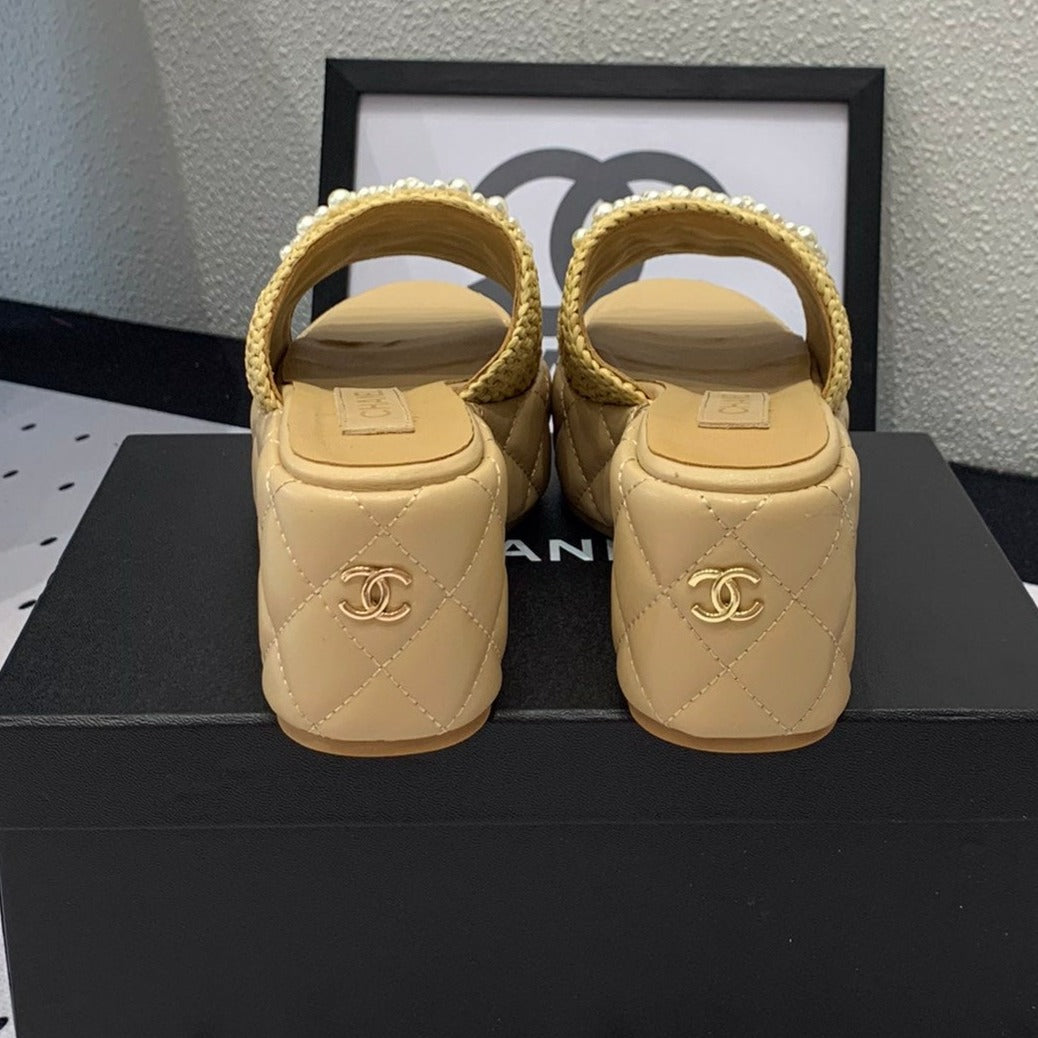 • Material: Original custom imported PP straw + pearl upper Sheepskin lining and insole