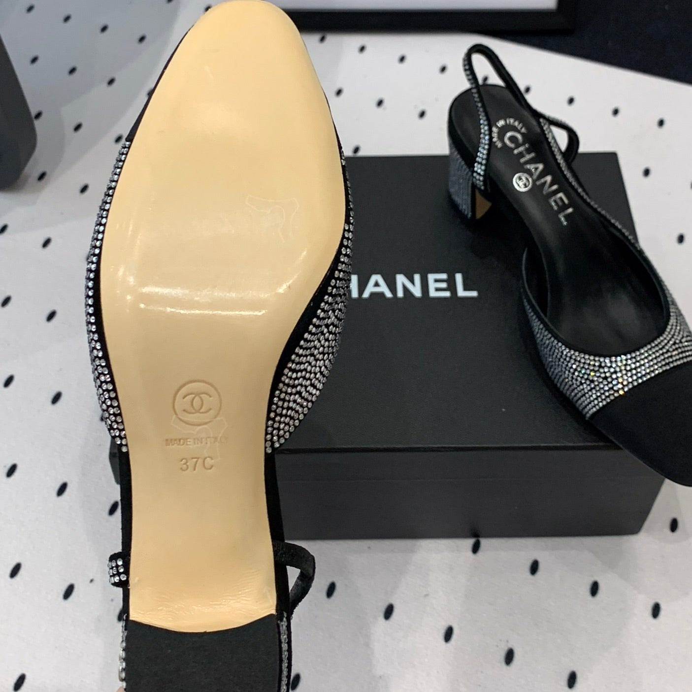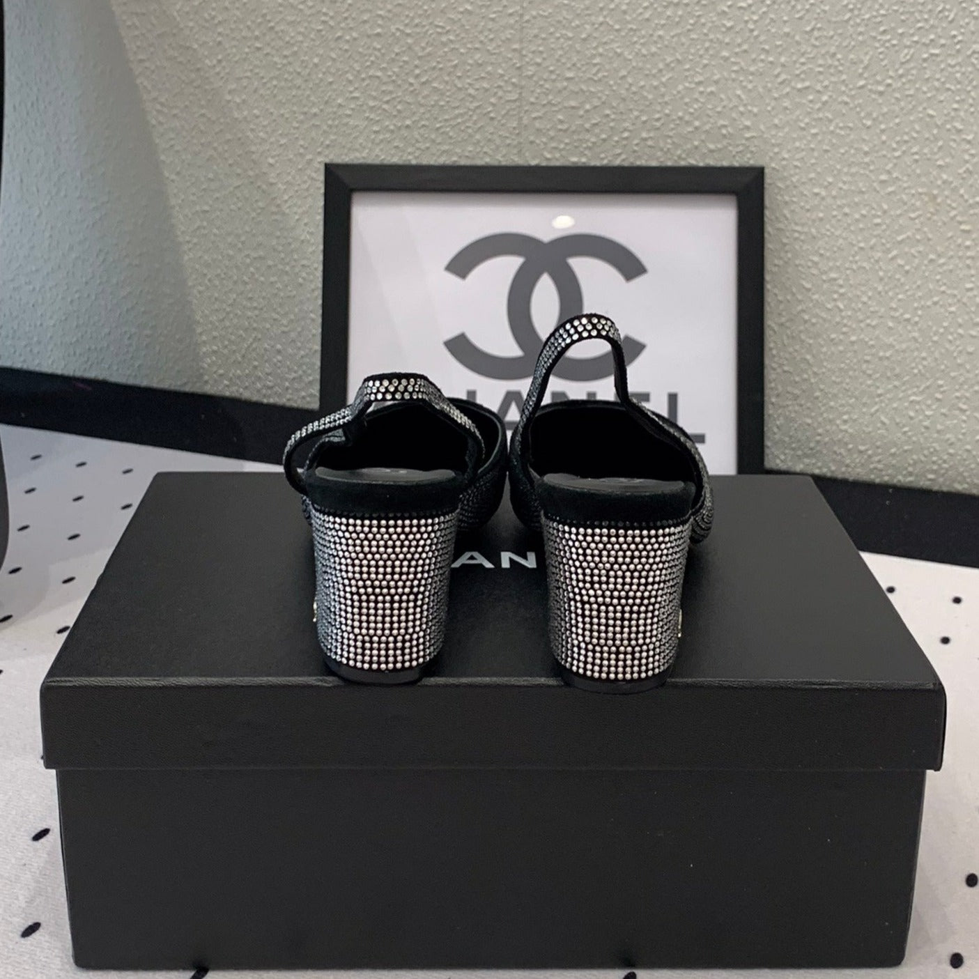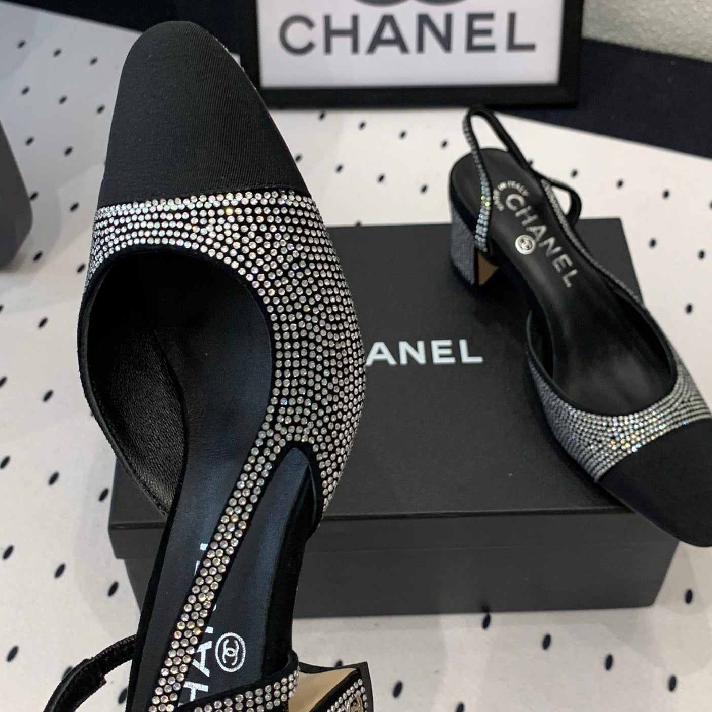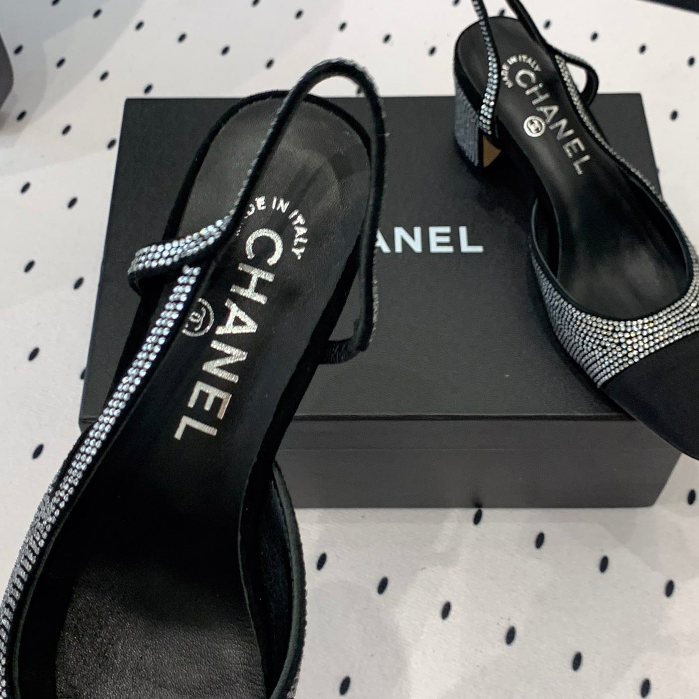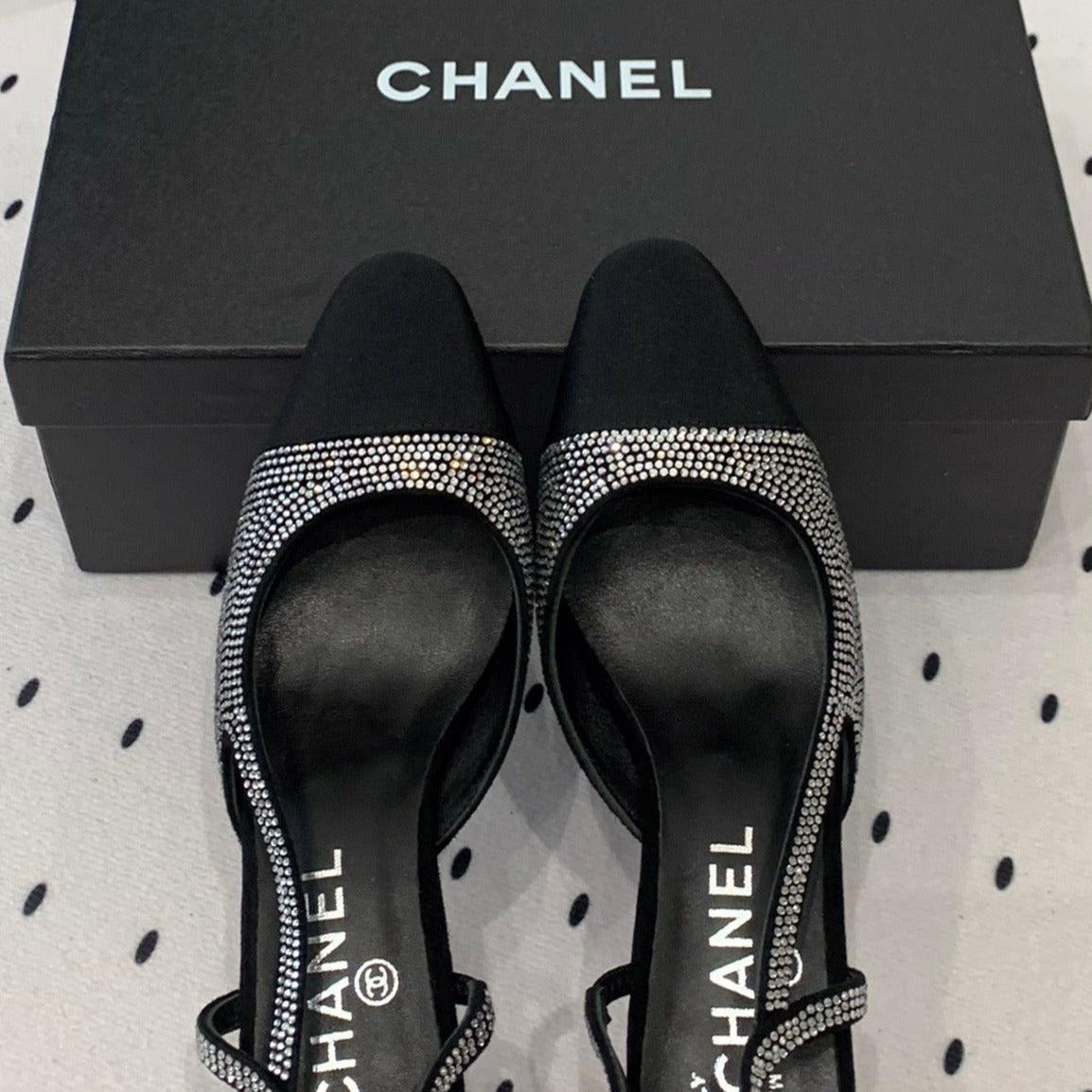 Double CC Rhinestone Slingback Sheepskin Silver Black