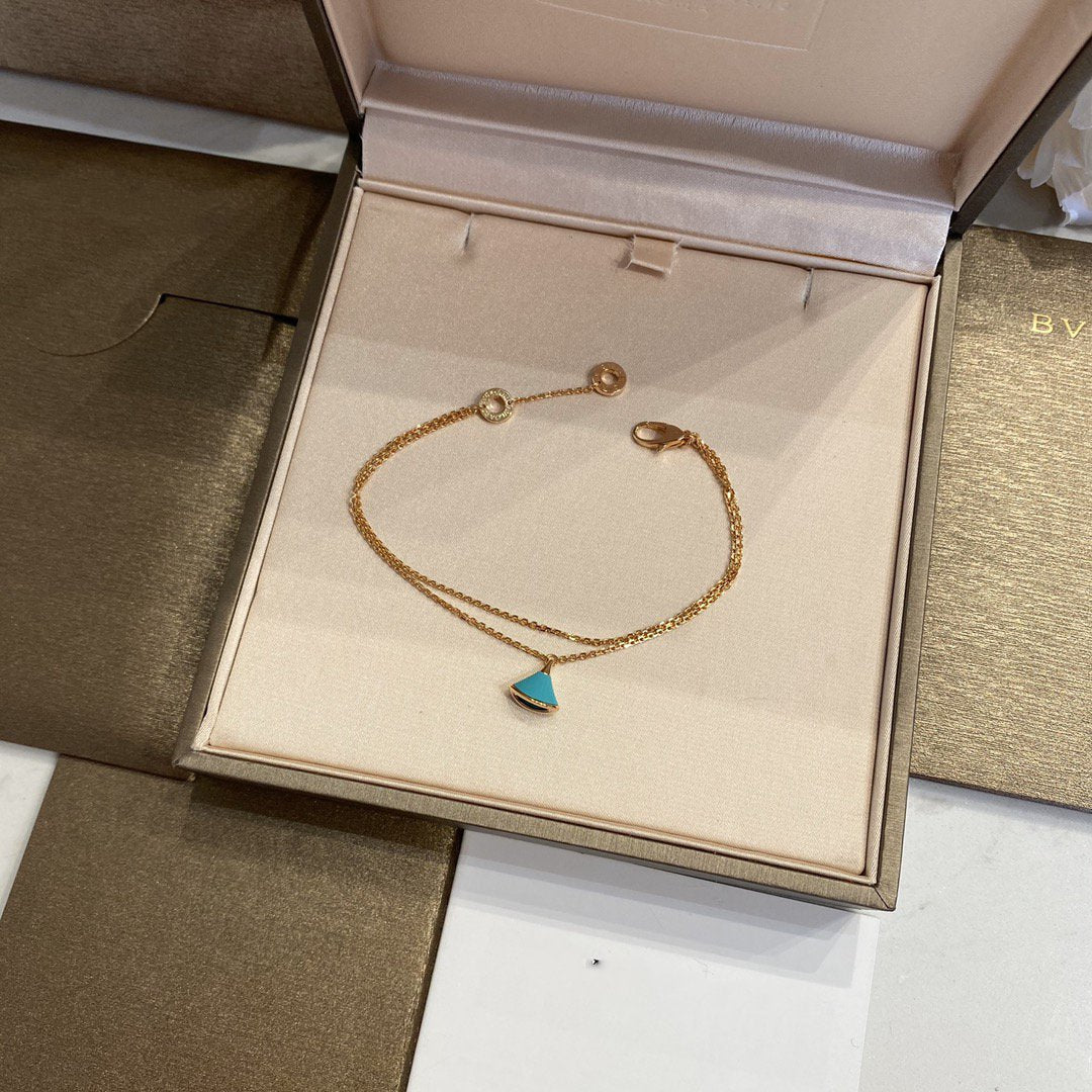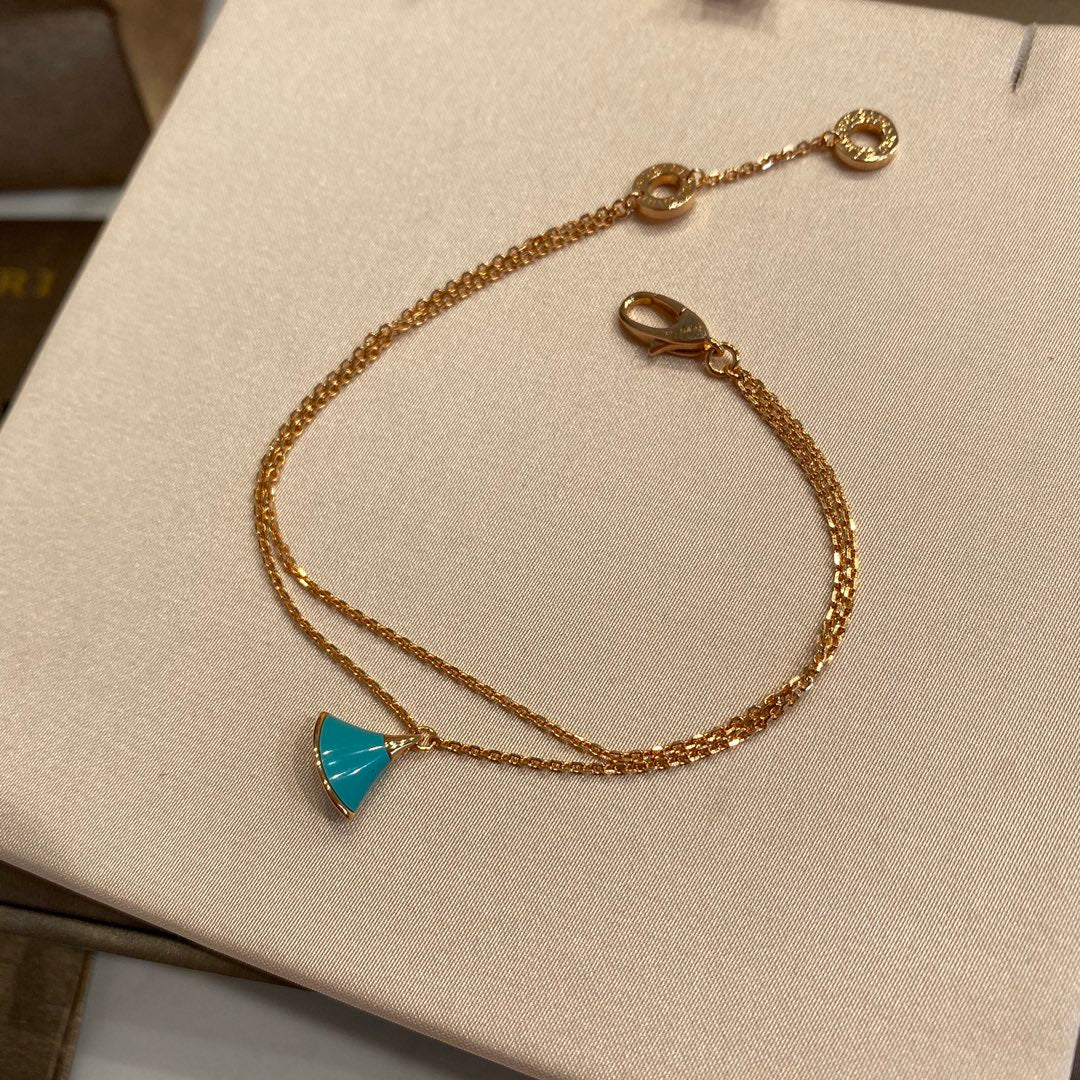 DREAM 1 MOTIF MALACHITE PINK GOLD DOUBLE CHAIN BRACELET