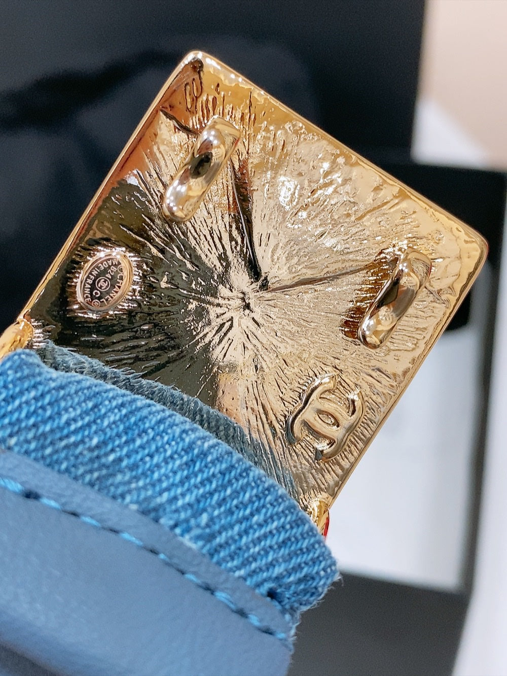 • Material: Gold Metal, Denim