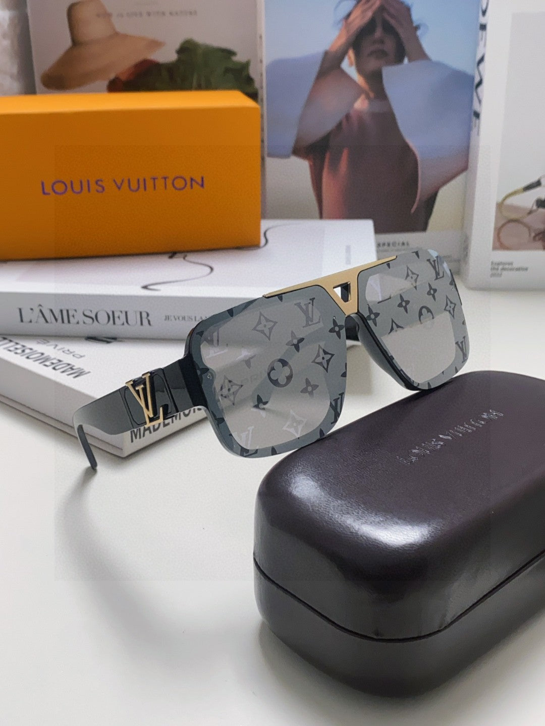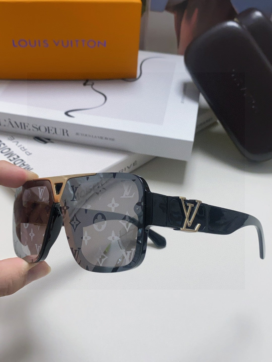 EVIDENCE SUNGLASSES 574717 IN BLACK ACETATE MONOGRAM ON LENS