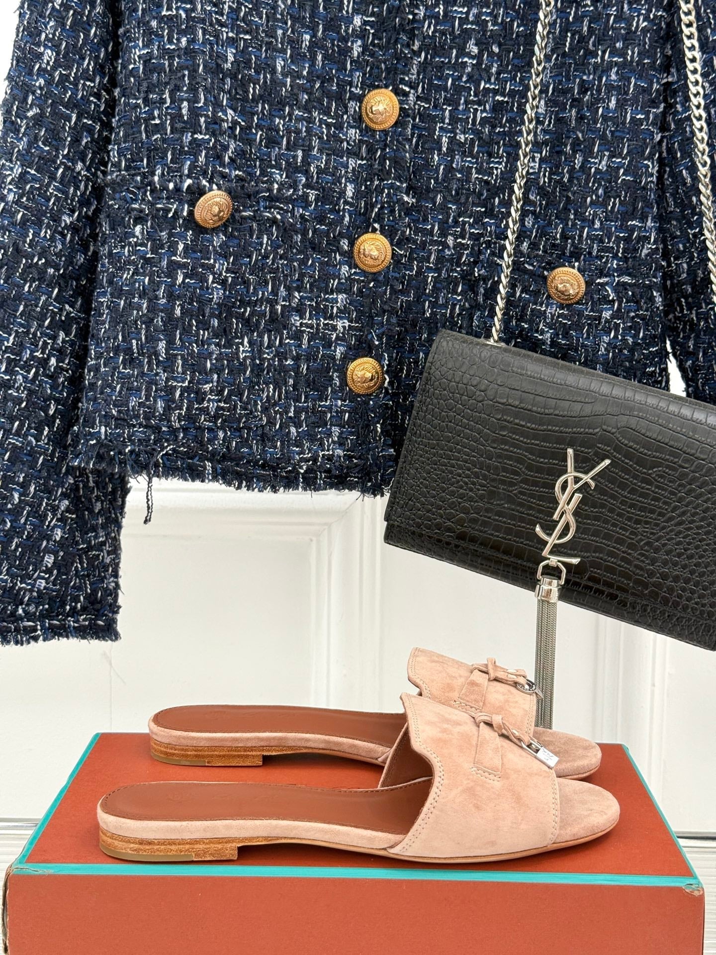 FLAT SANDALS IN LIP PINK SUEDE AND LAMBSKIN