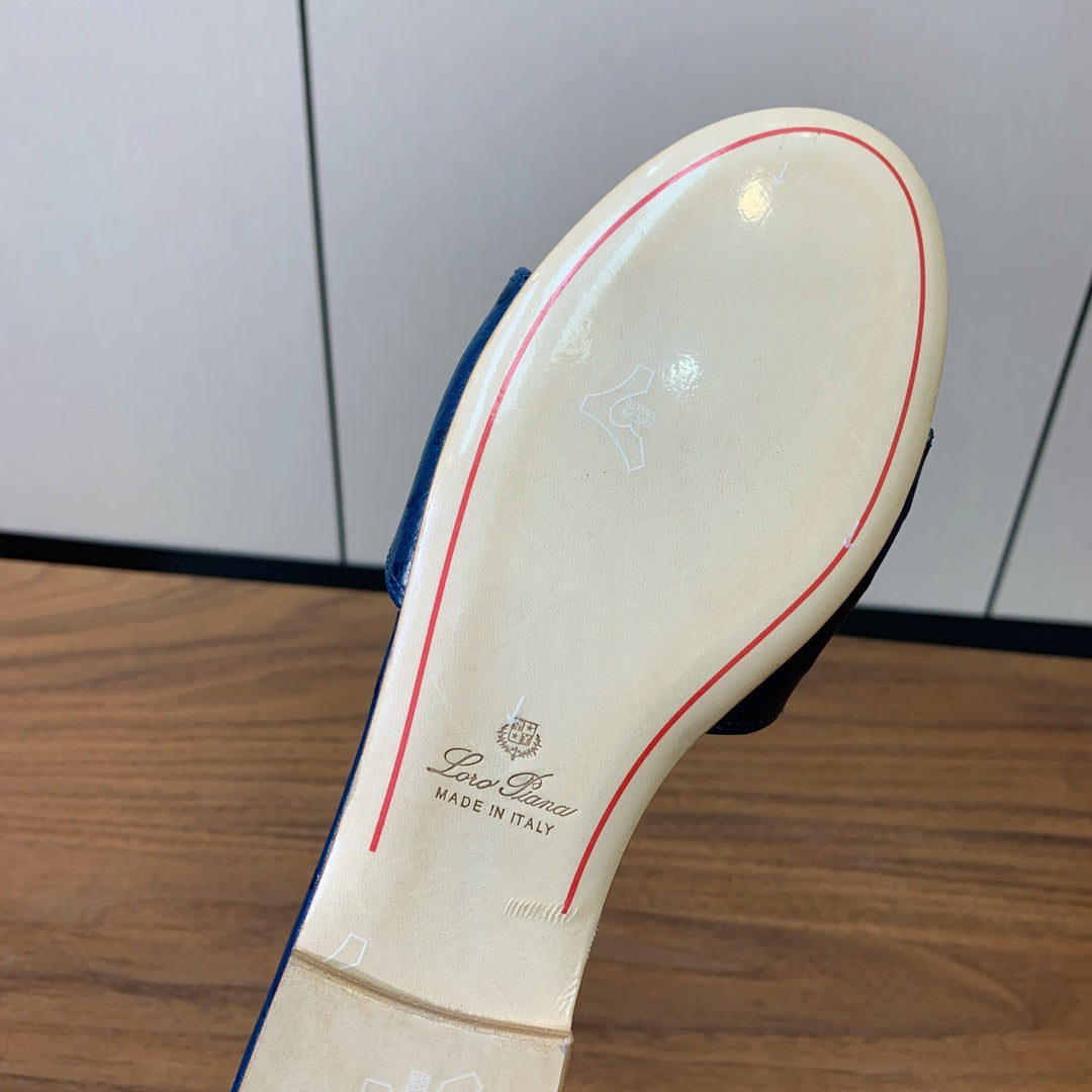 FLAT SLIPPERS IN NAVY BLUE LAMBSKIN OSTRICH SKIN