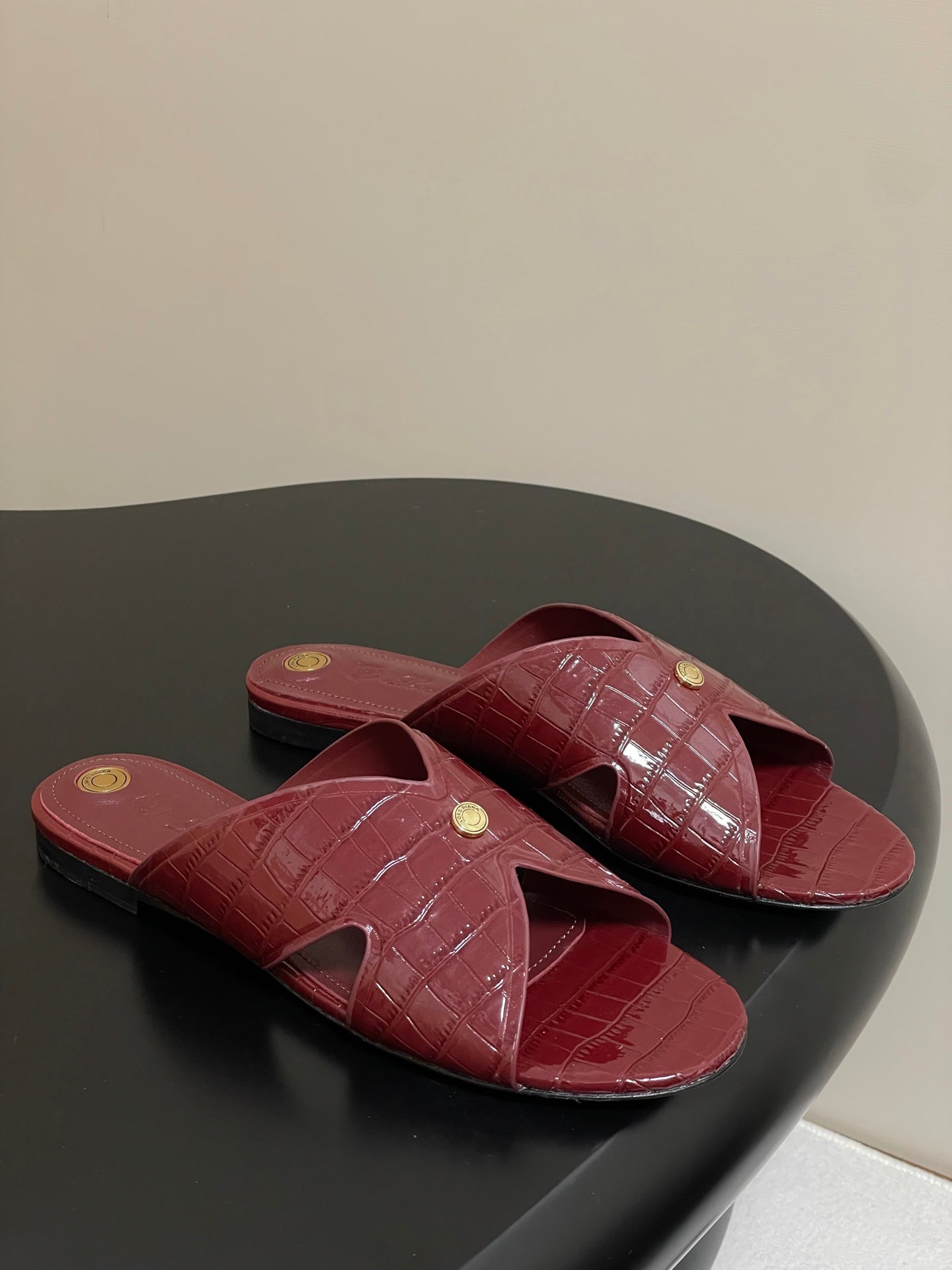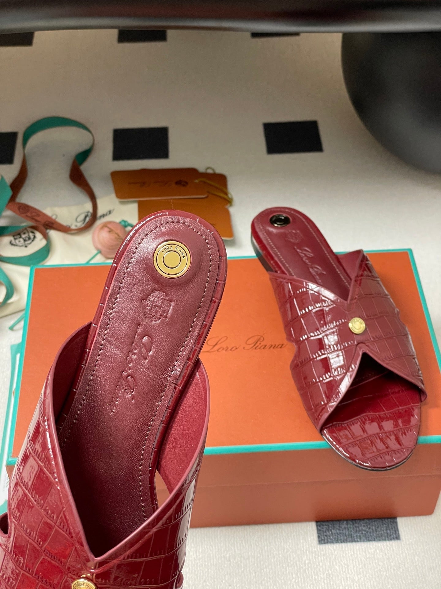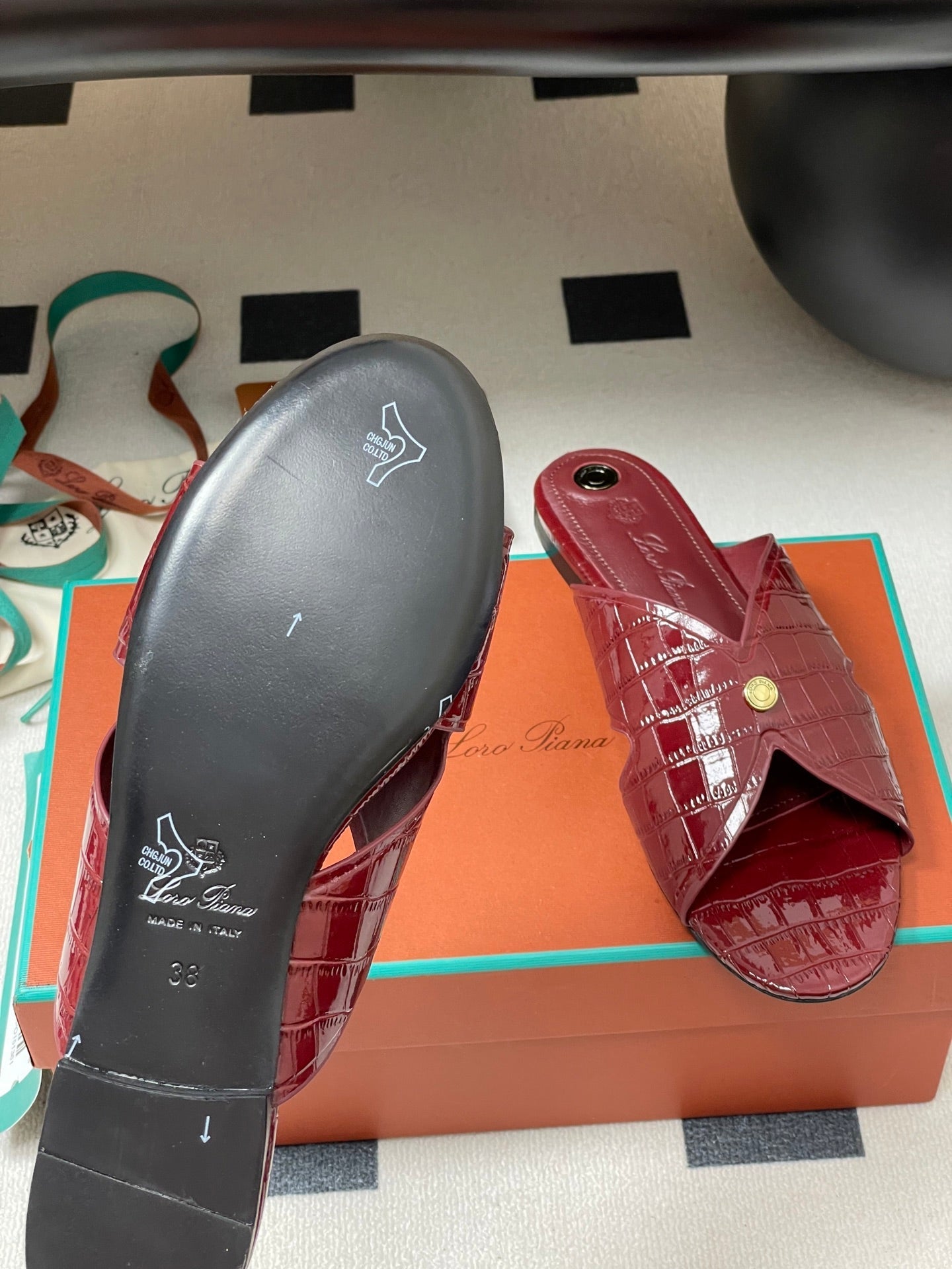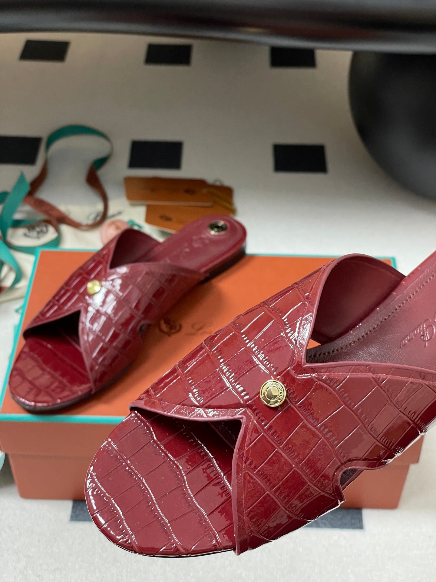 FLAT SLIPPERS IN RED CALFSKIN SNAKE EMBOSSING