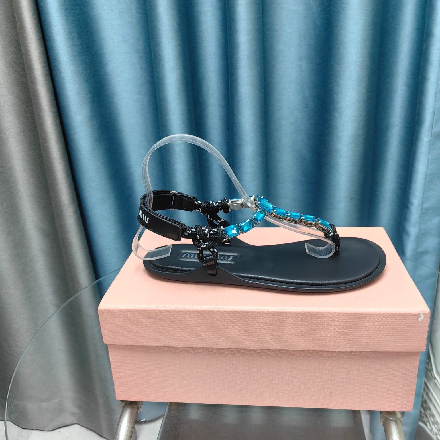 FLIP-FLOPS BLACK COWHIDE WITH CRYSTALS-SAPPHIRE BLUE