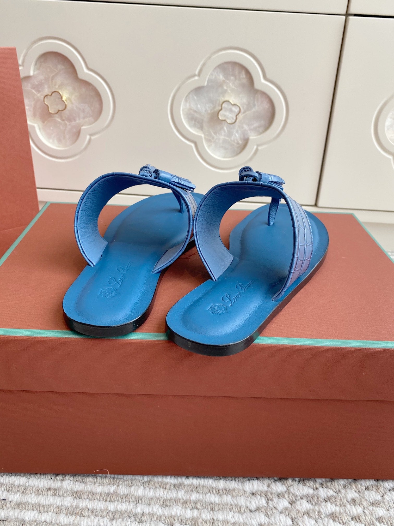 FLIP FLOPS IN BLUE LAMBSKIN SNAKE EMBOSSING
