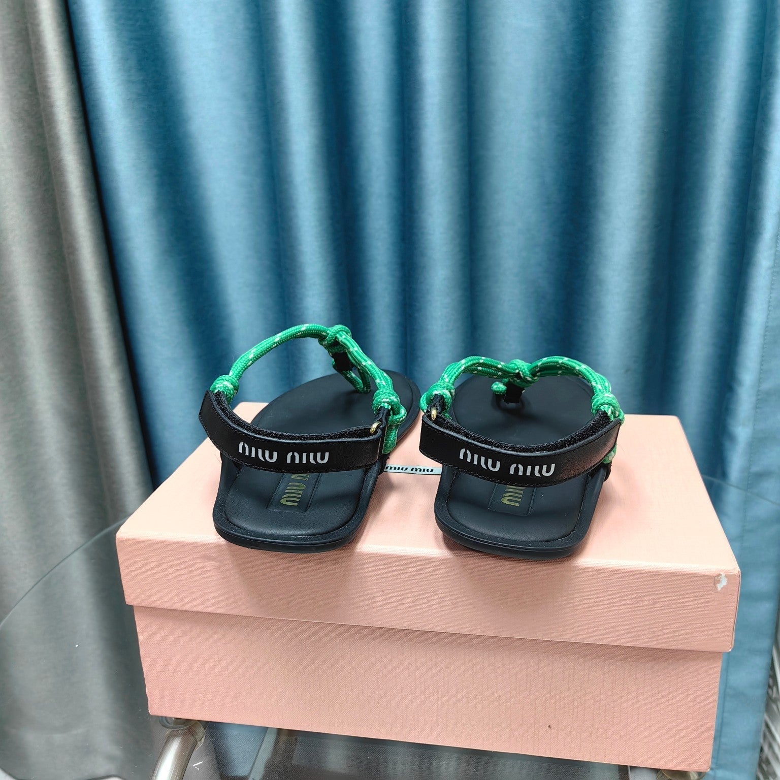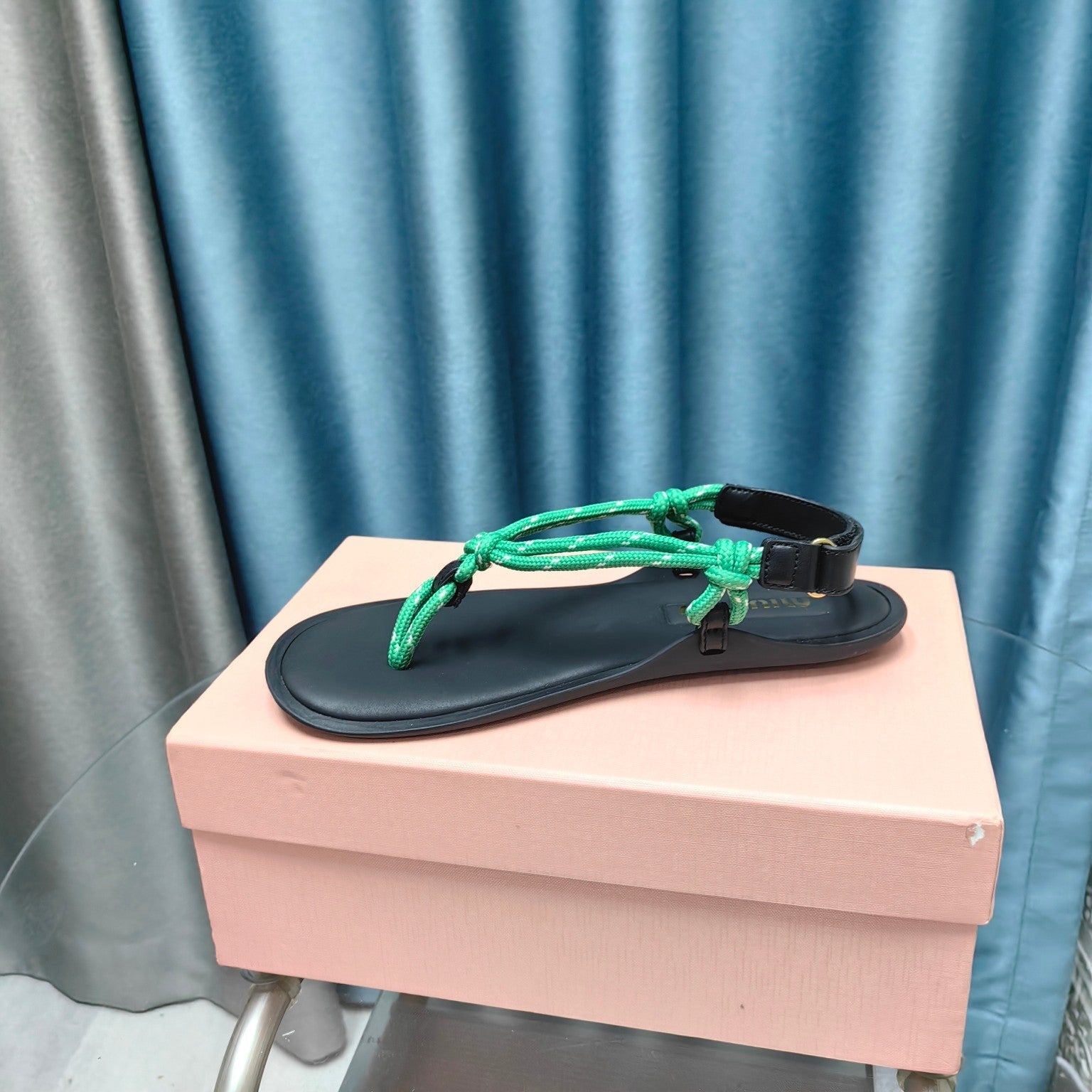 FLIP-FLOPS SANDAL BLACK SHEEPSKIN WITH BRIGHT BLUE STRAP