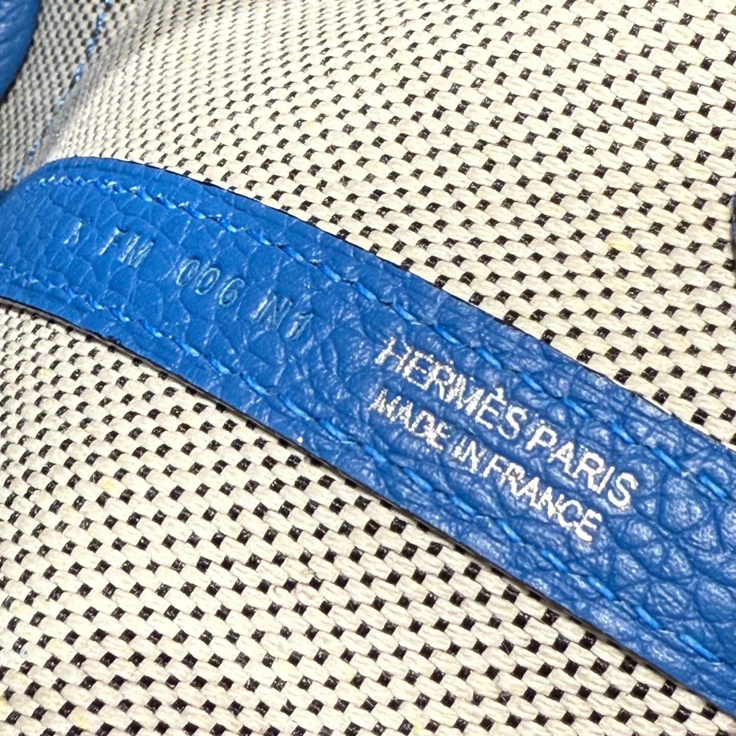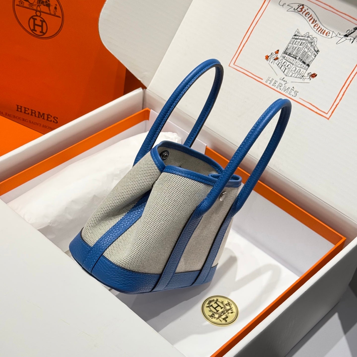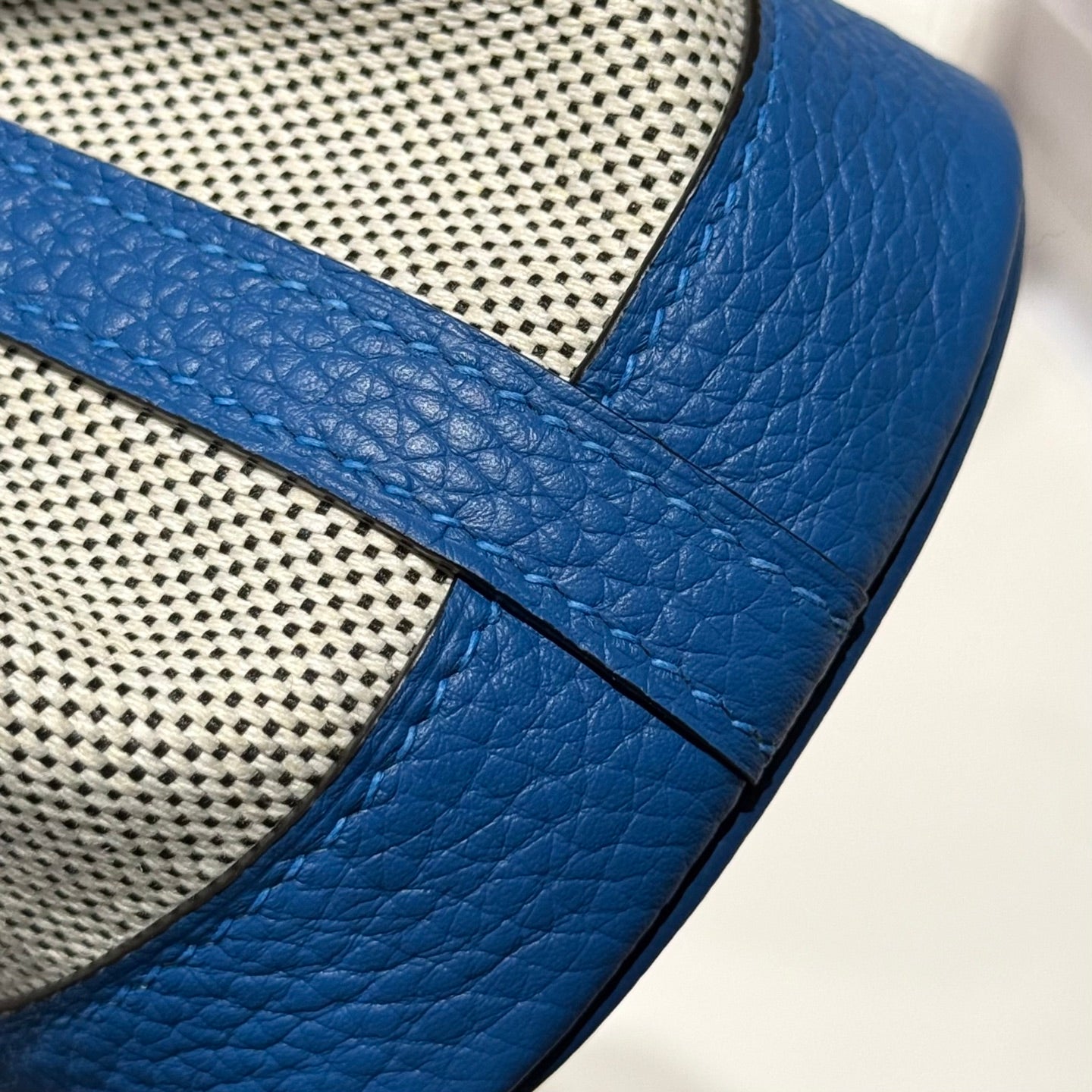 GARDEN PARTY 23CM IN WHITE MIX BLACK TOILETS COTTON CANVAS AND BLUE CALFSKIN