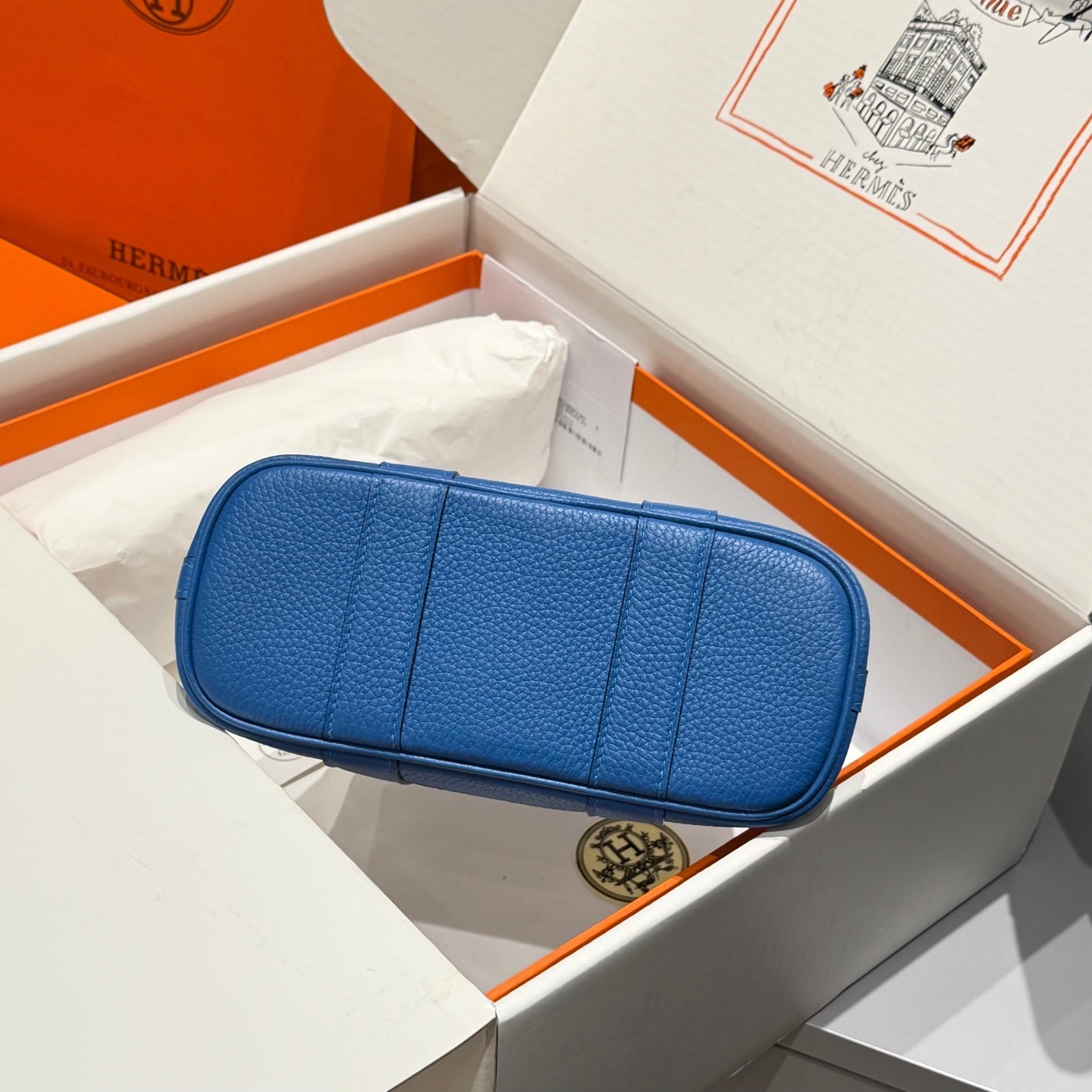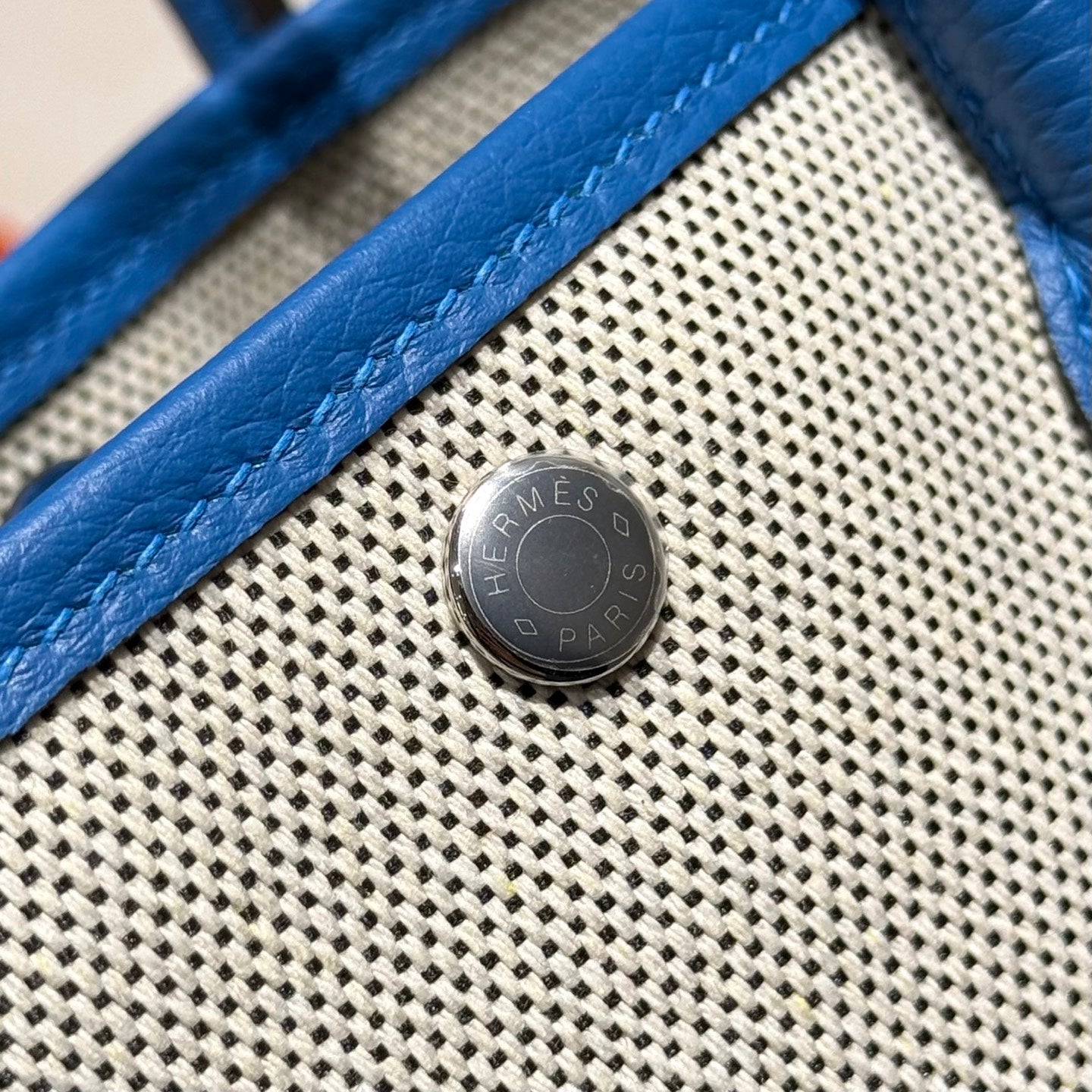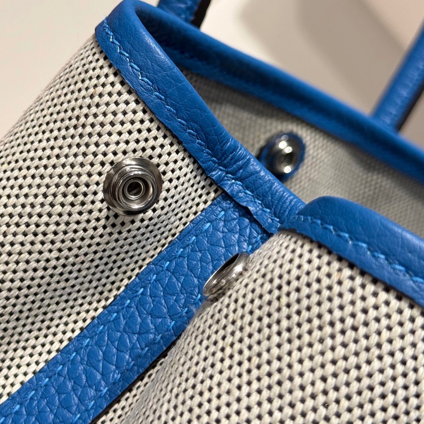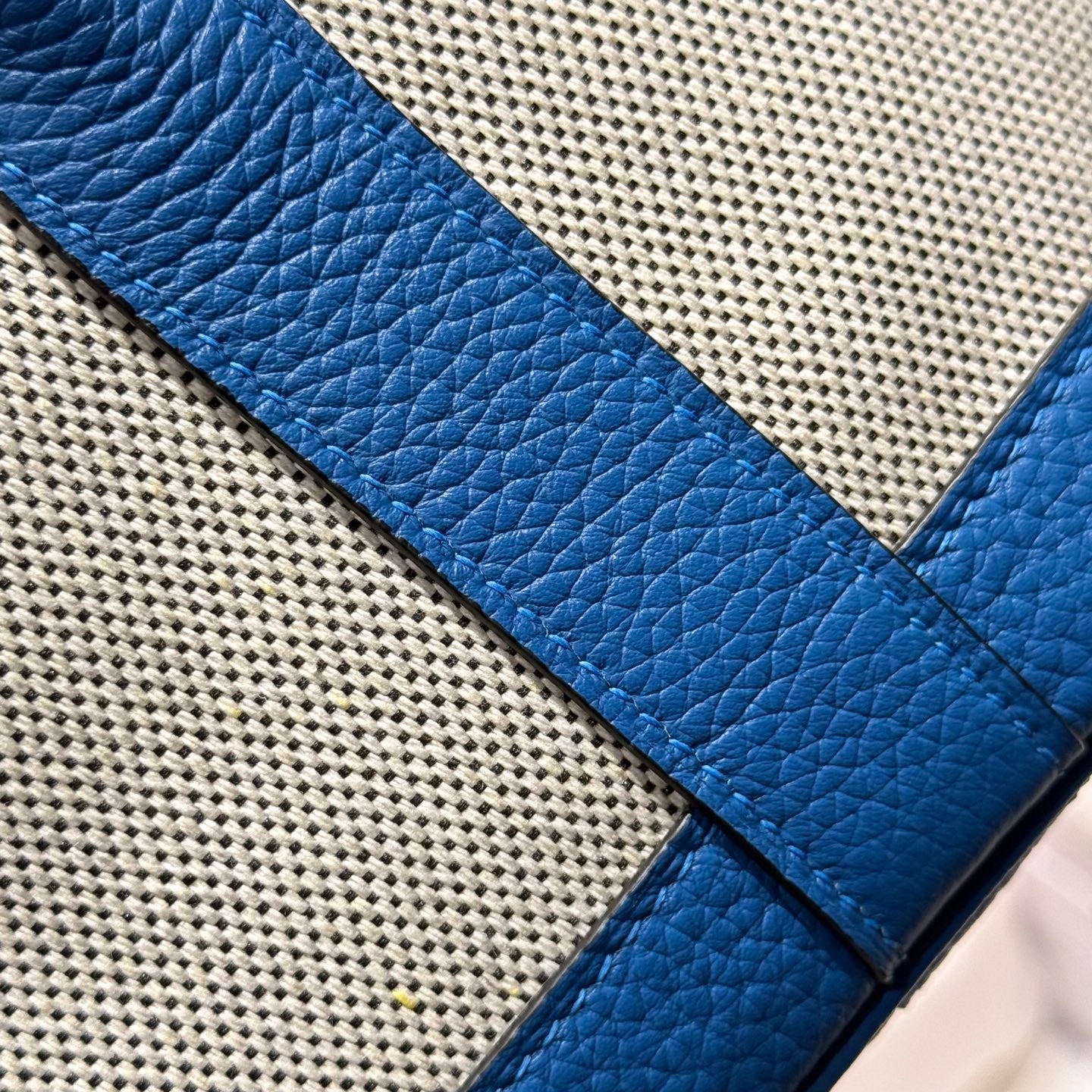 GARDEN PARTY 23CM IN WHITE MIX BLACK TOILETS COTTON CANVAS AND BLUE CALFSKIN