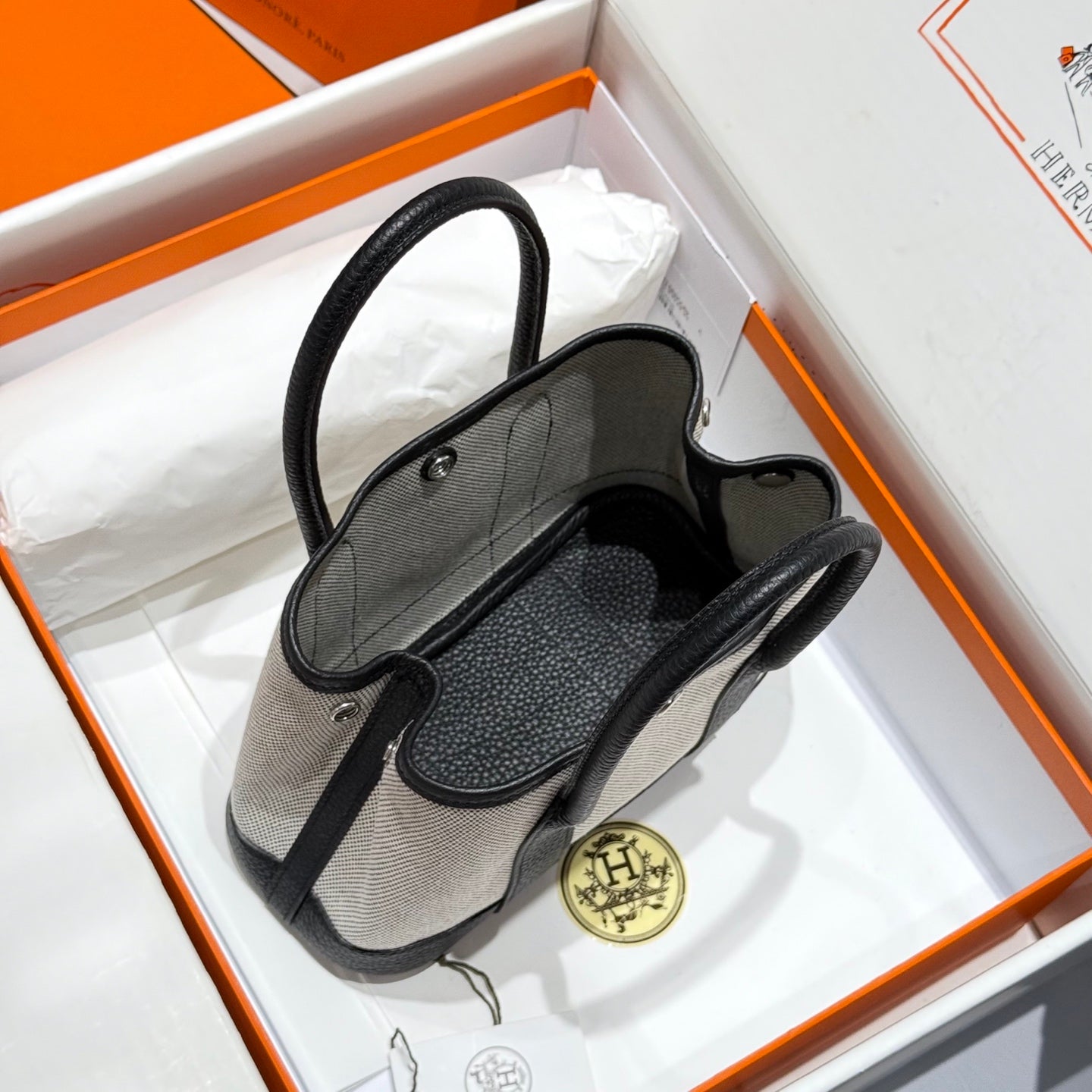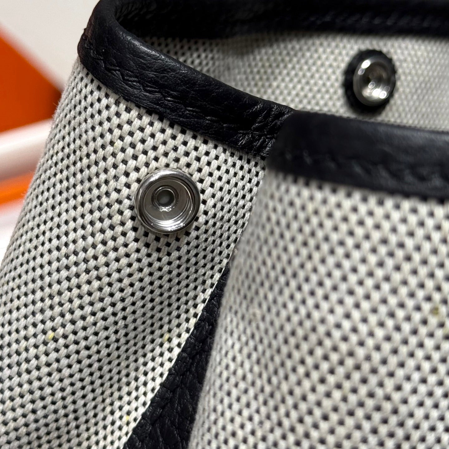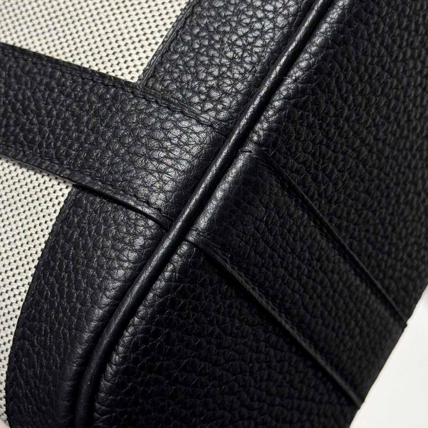 GARDEN PARTY 23CM IN WHITE TOILETS COTTON CANVAS AND BLACK CALFSKIN