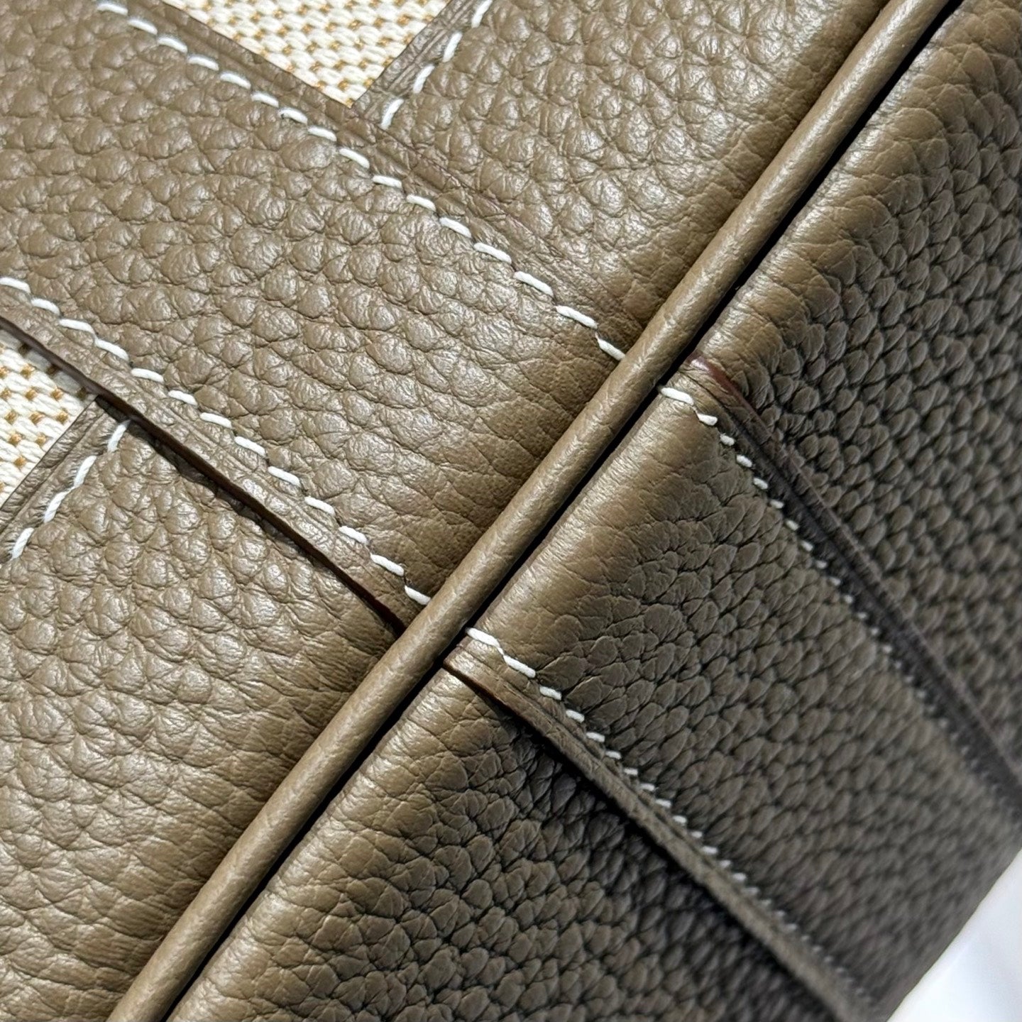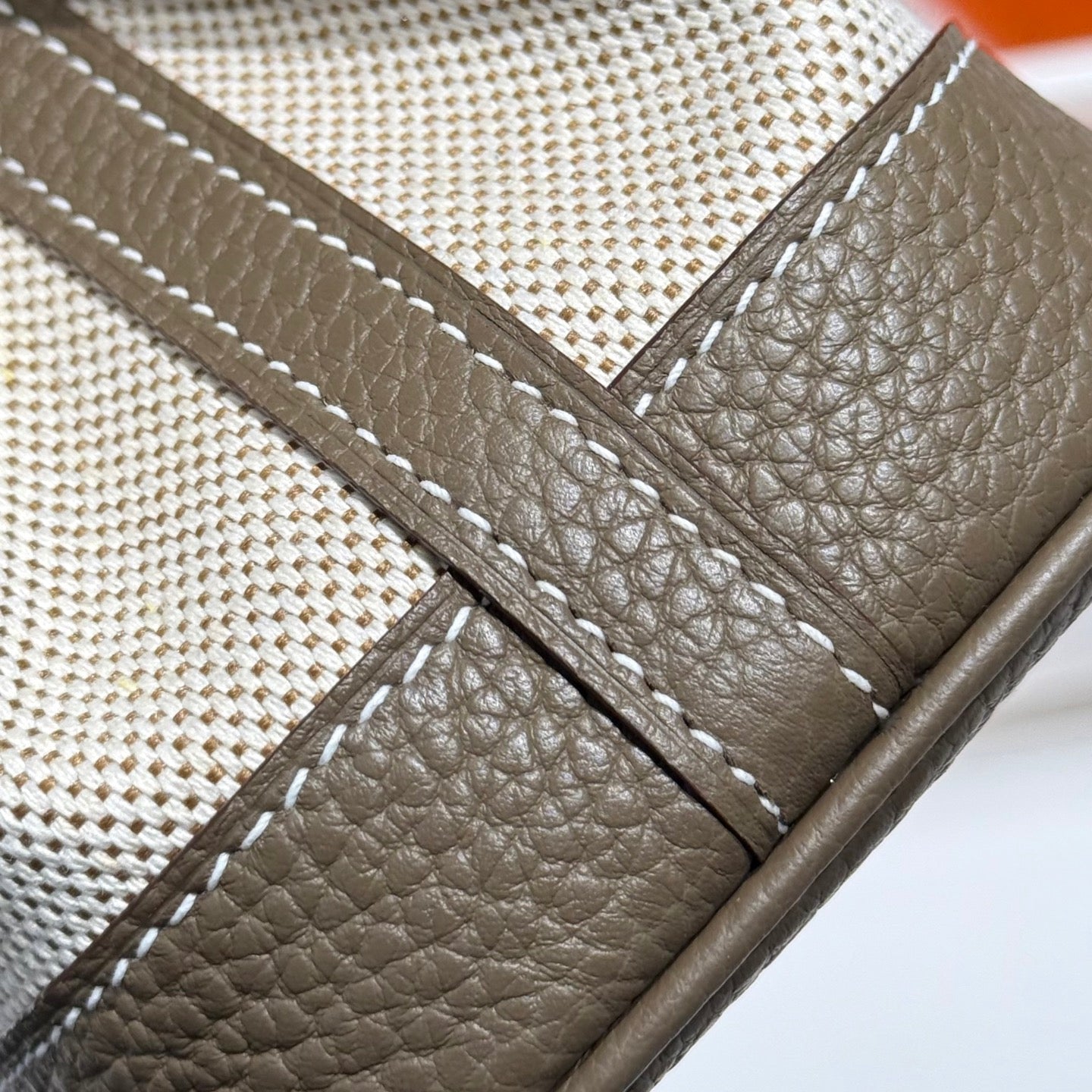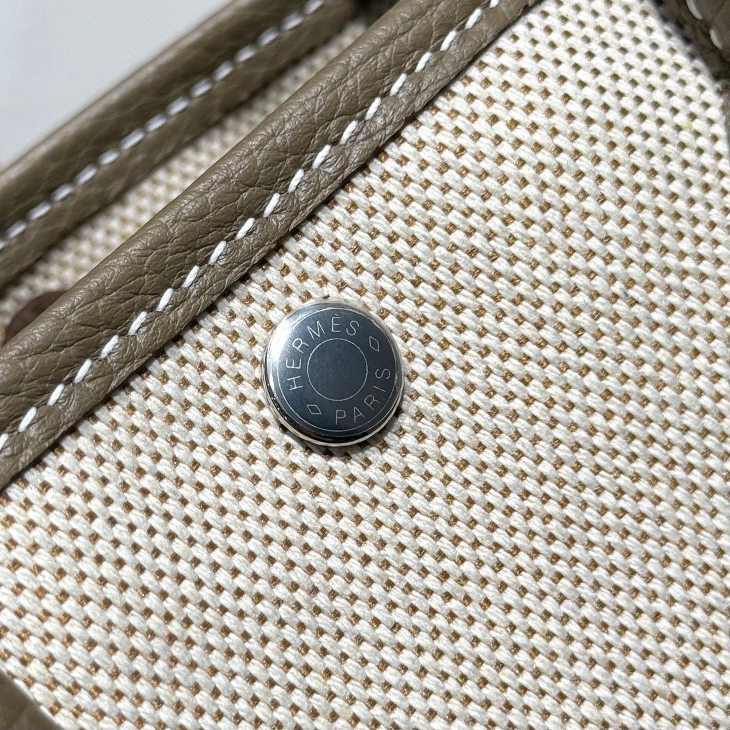 GARDEN PARTY 23CM IN WHITE TOILETS COTTON CANVAS AND TAUPE CALFSKIN