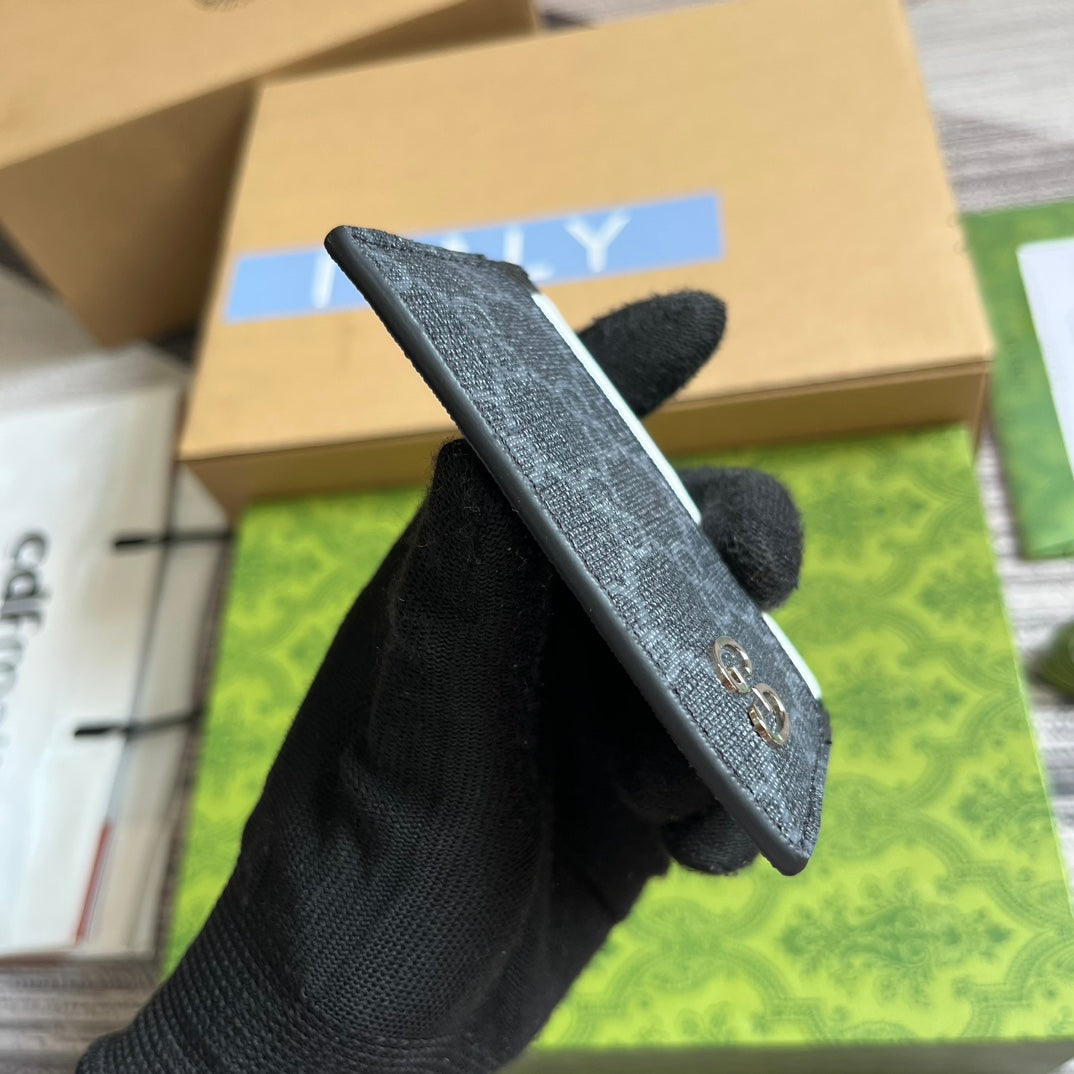 GG CARD CASE 11 WITH GG DETAIL BLACK CALFSKIN