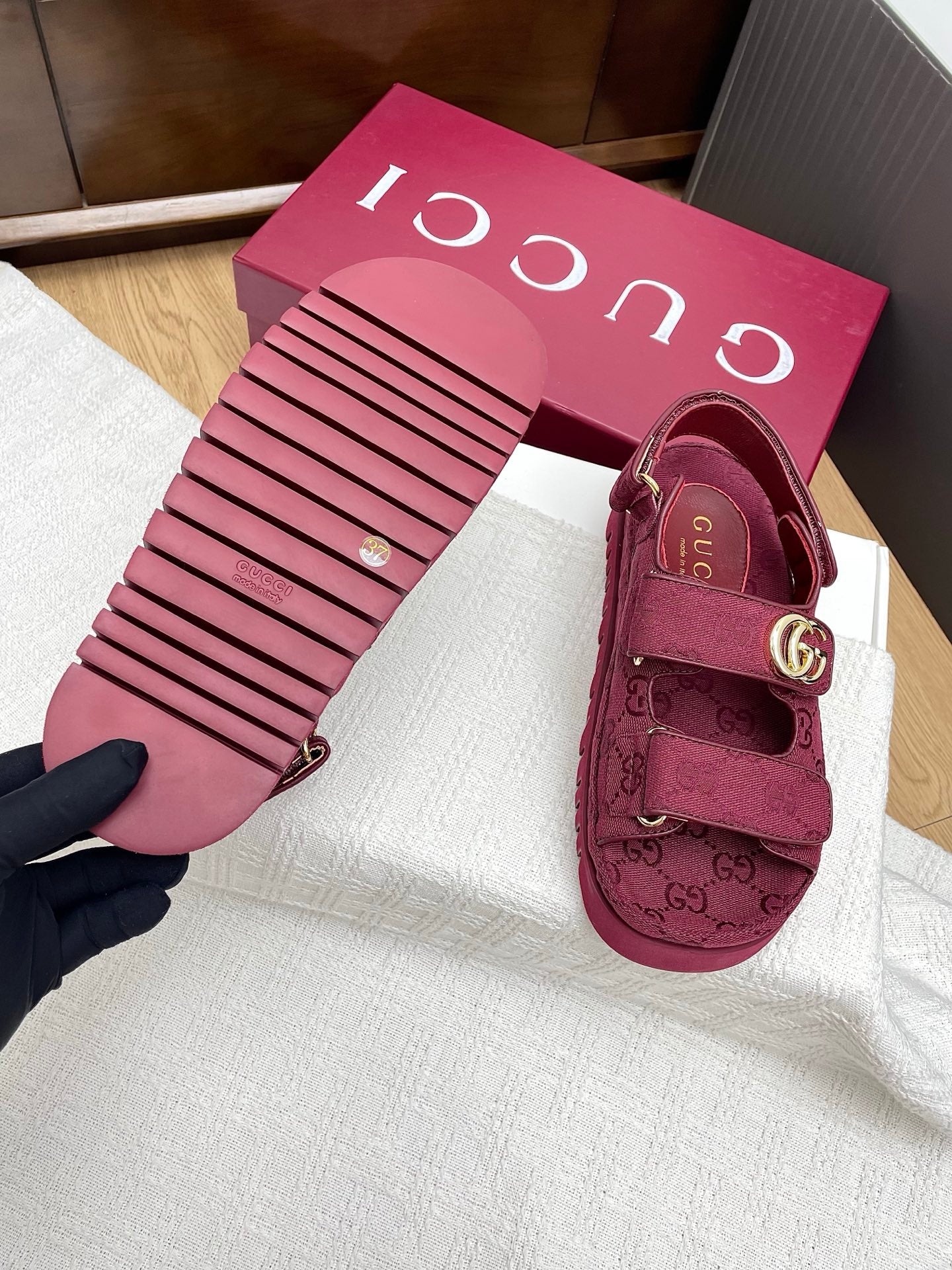 GG CLASSIC SANDALS 25S IN RED FABRIC WITH GOLD HARDWARE