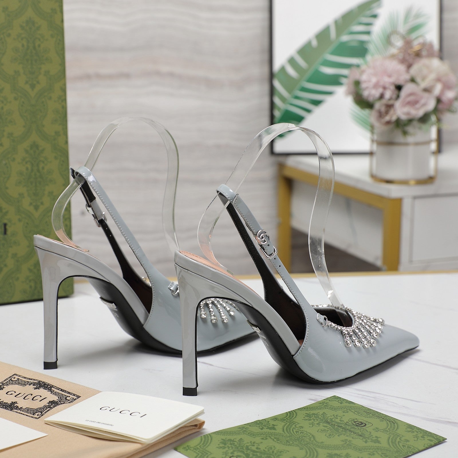 GG CRYSTAL HIGH HEEL SANDAL CLOUD LAMBSKIN