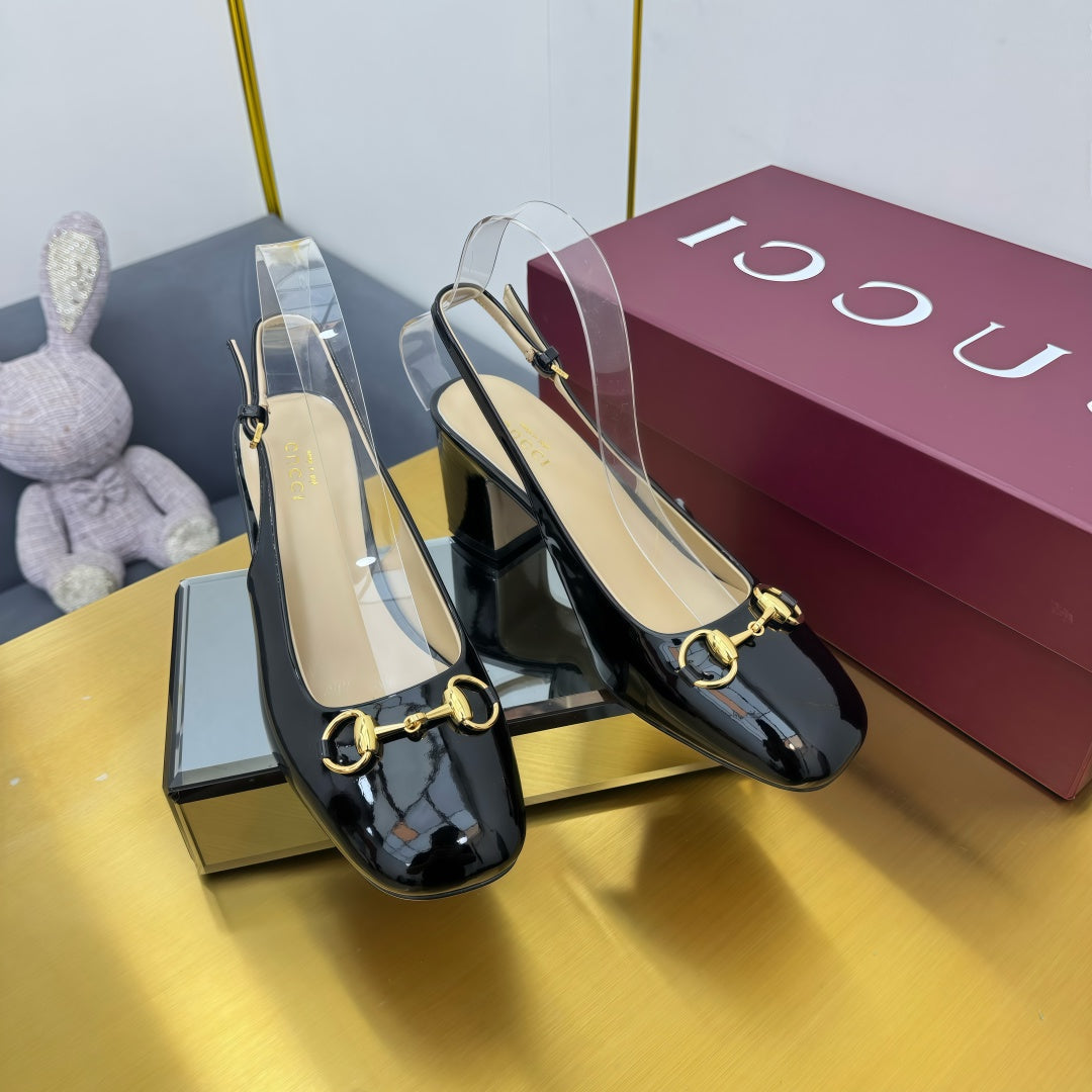GG HIGH HEELS 65 IN BLACK GLOSSY LEATHER WITH GOLD HARDWARE