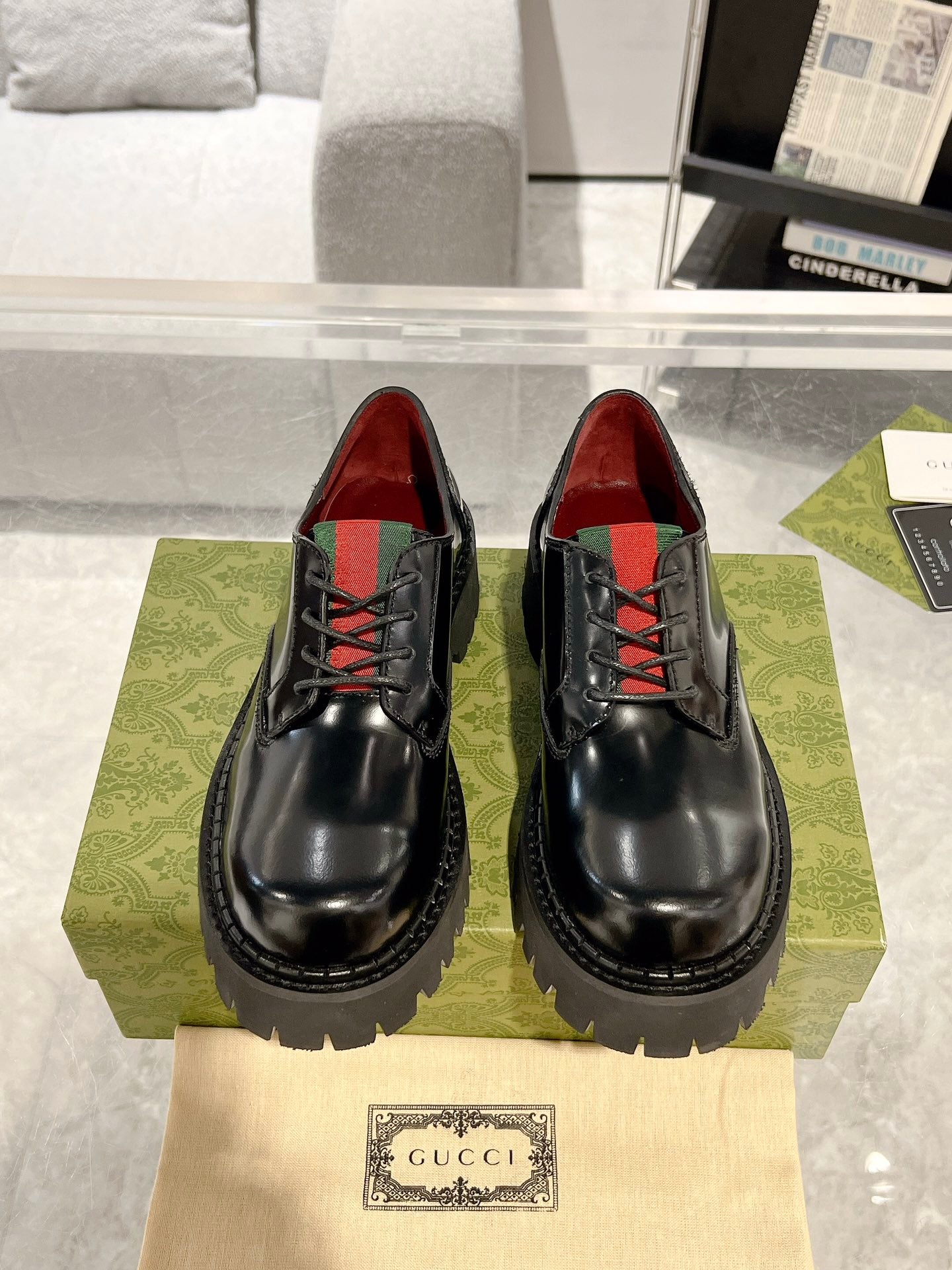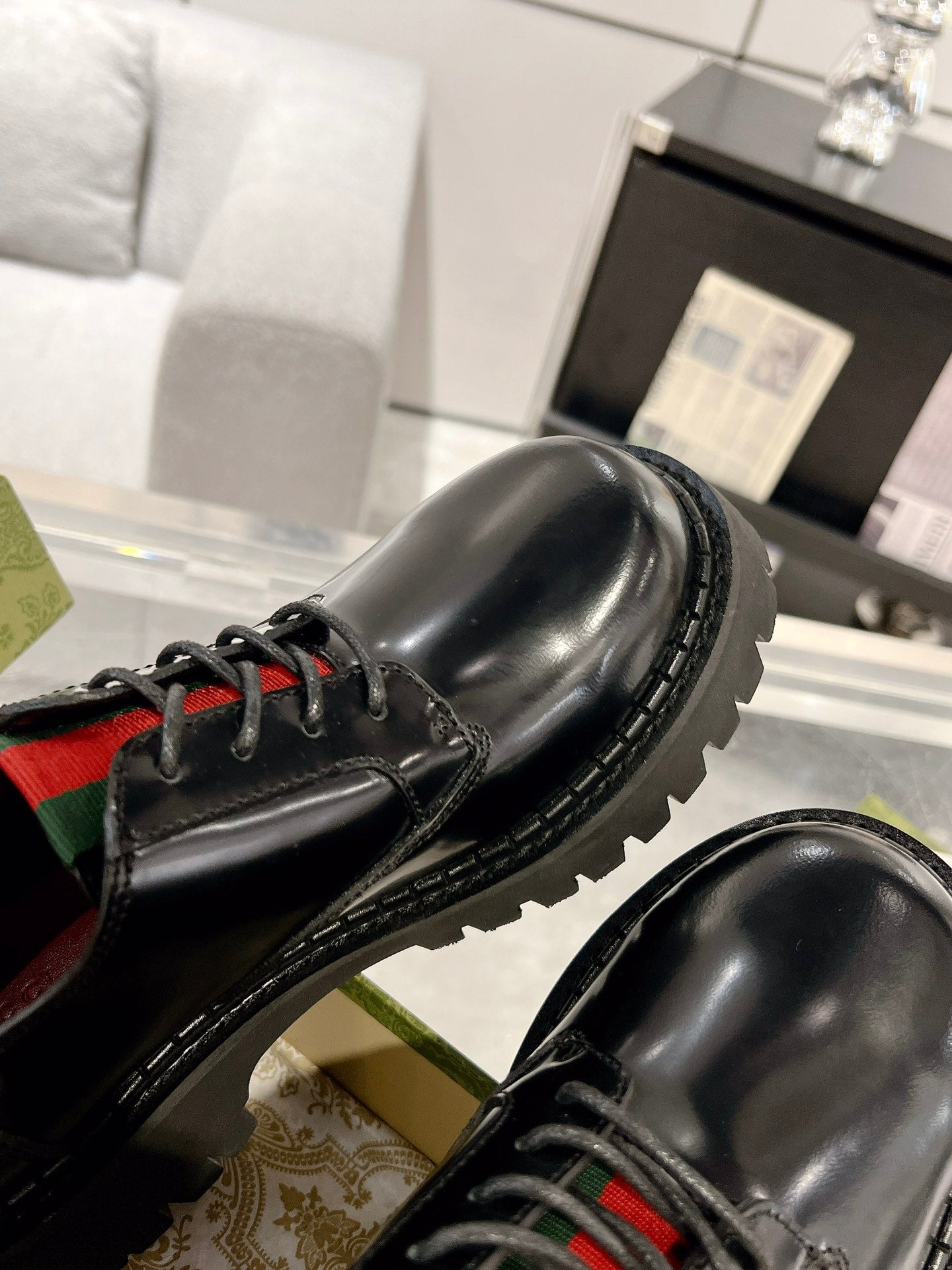• Material: Shiny leather