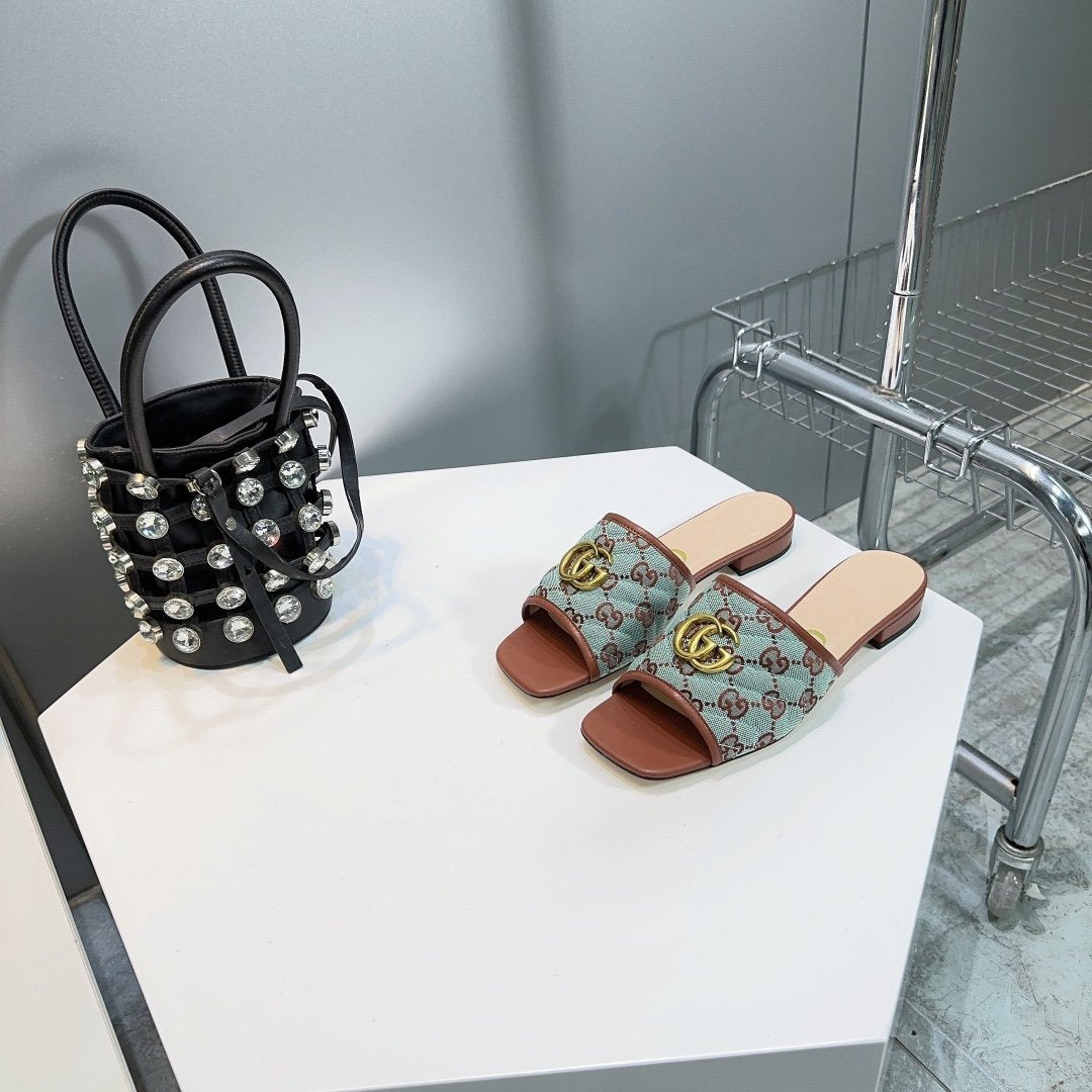 GG MATELASSÉ CANVAS SLIDES LIGHT GREEN