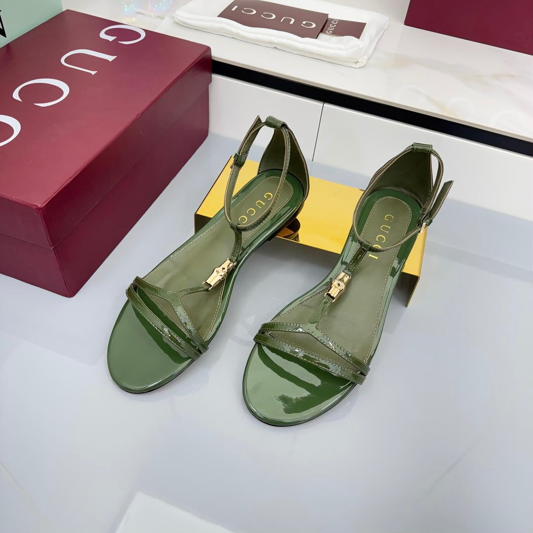 GG THONG SANDALS 25S IN DARK GREEN LAMBSKIN WITH GOLD HARDWARE