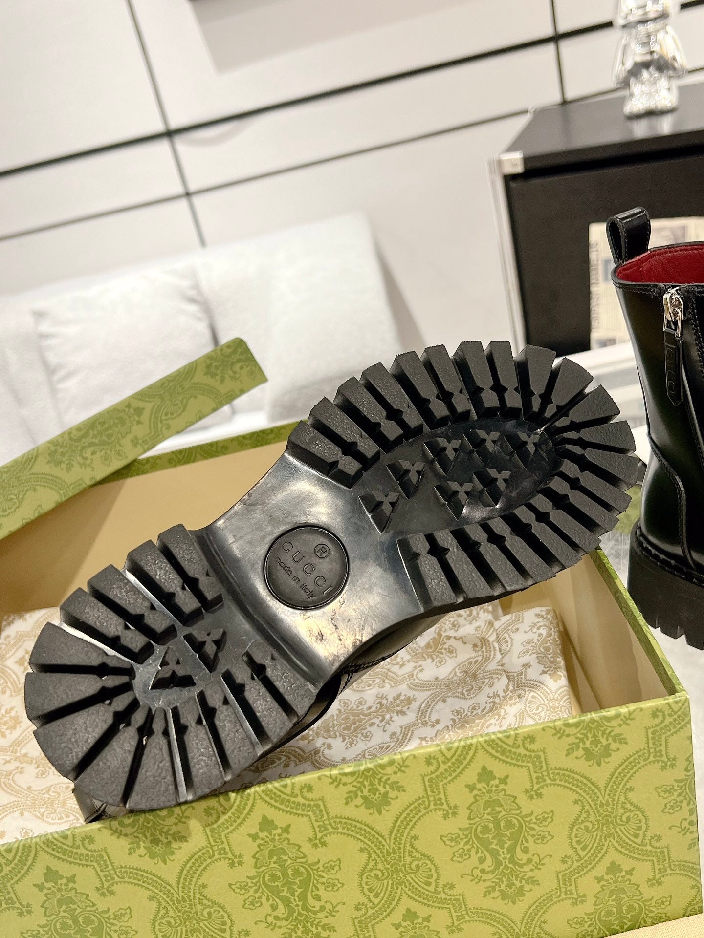 GG WEB ANKLE BOOTS IN BLACK CALFSKIN