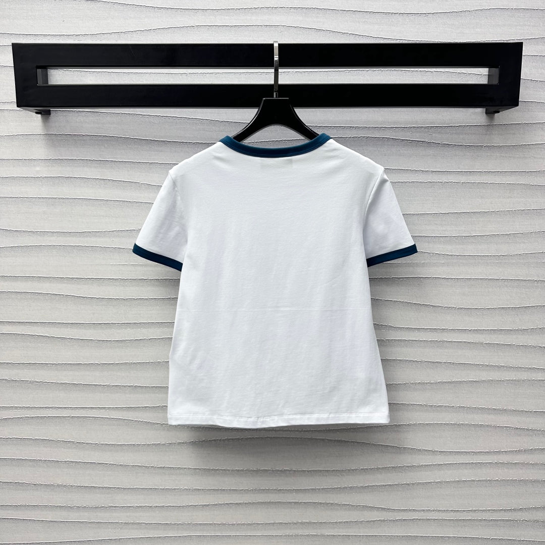 GG White Blue Cotton Jersey T-shirt With Print
