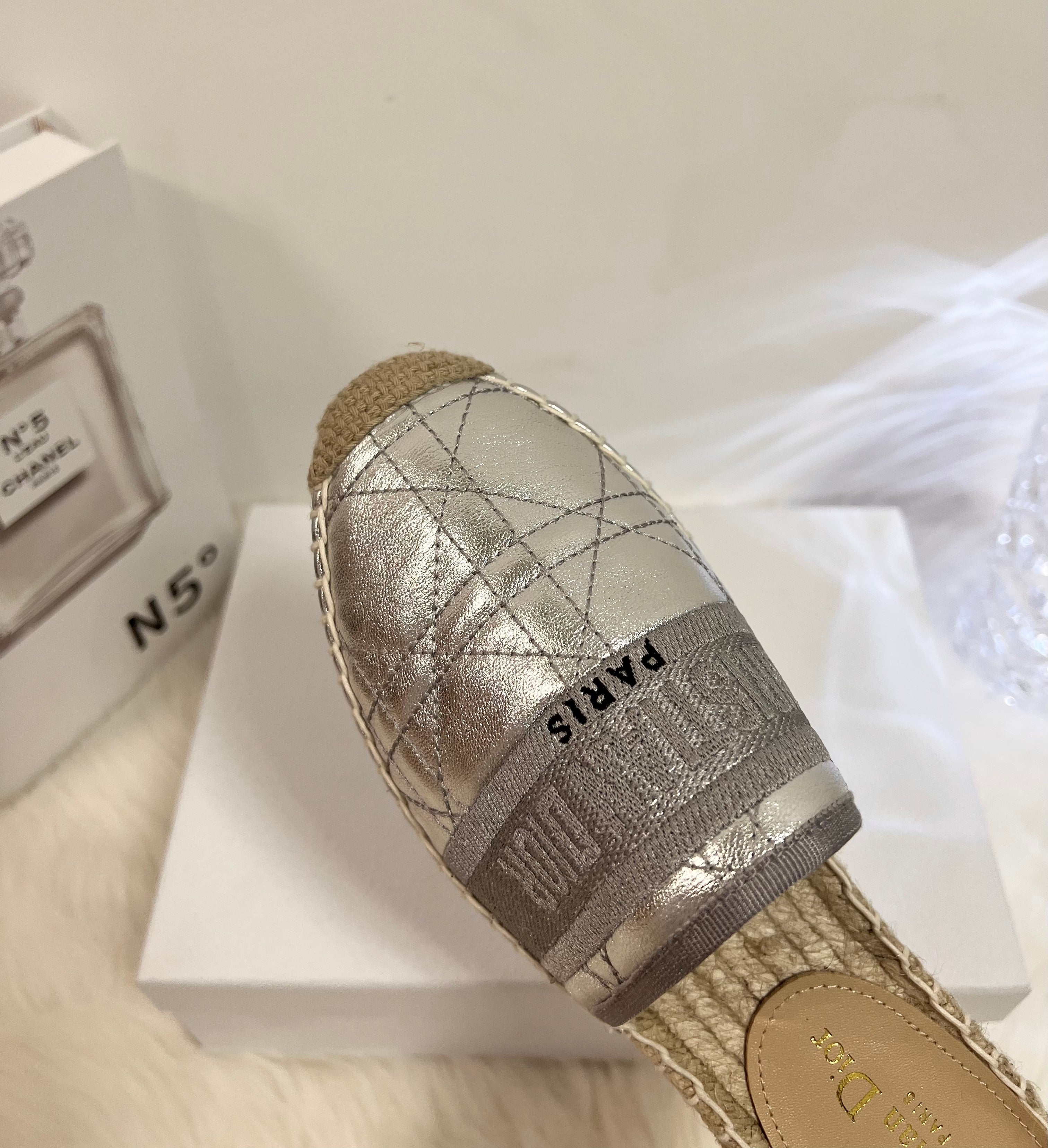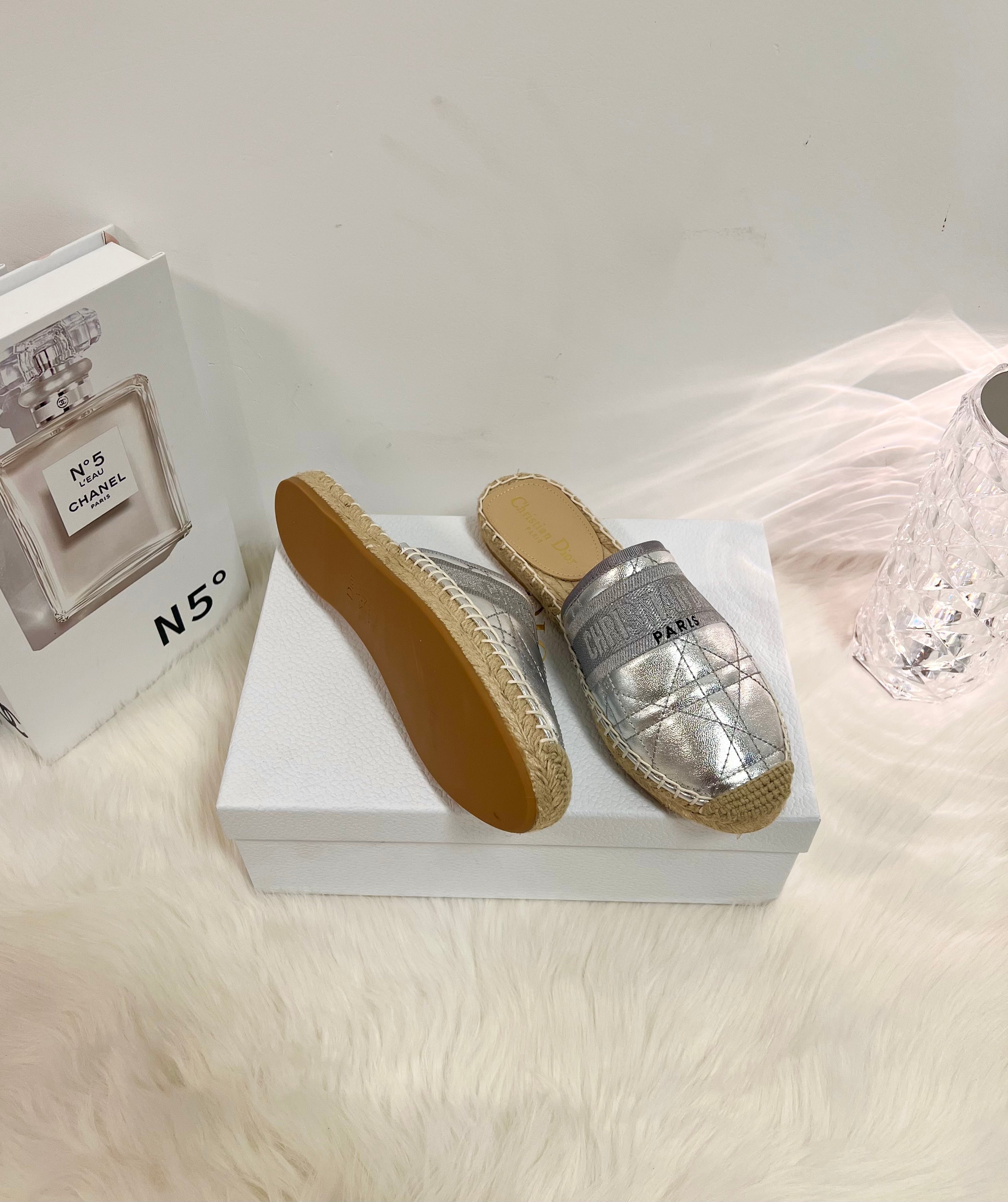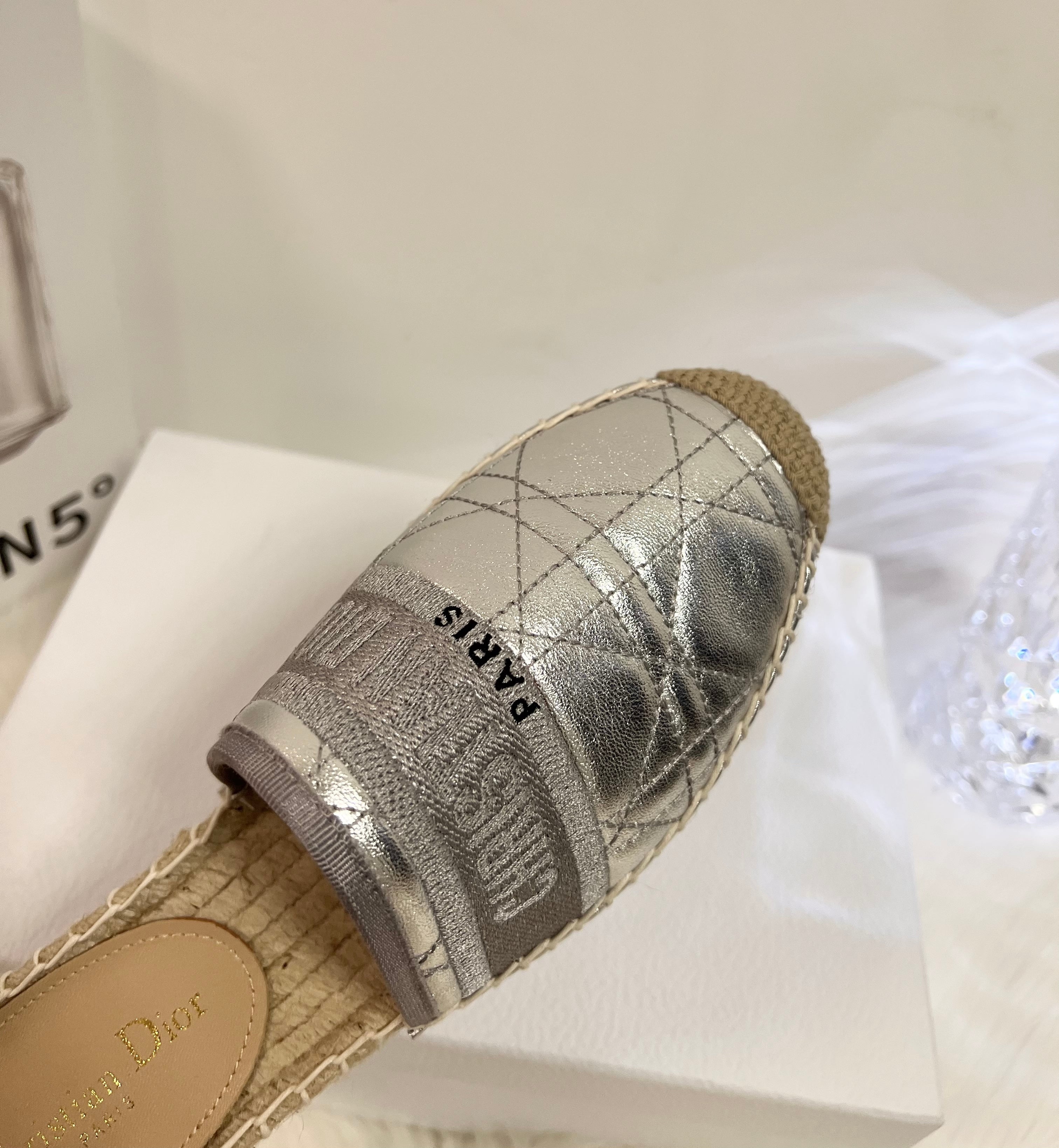 GRANVILLE ESPADRILLE MULE SILVER QUILTED CANNAGE CALFSKIN