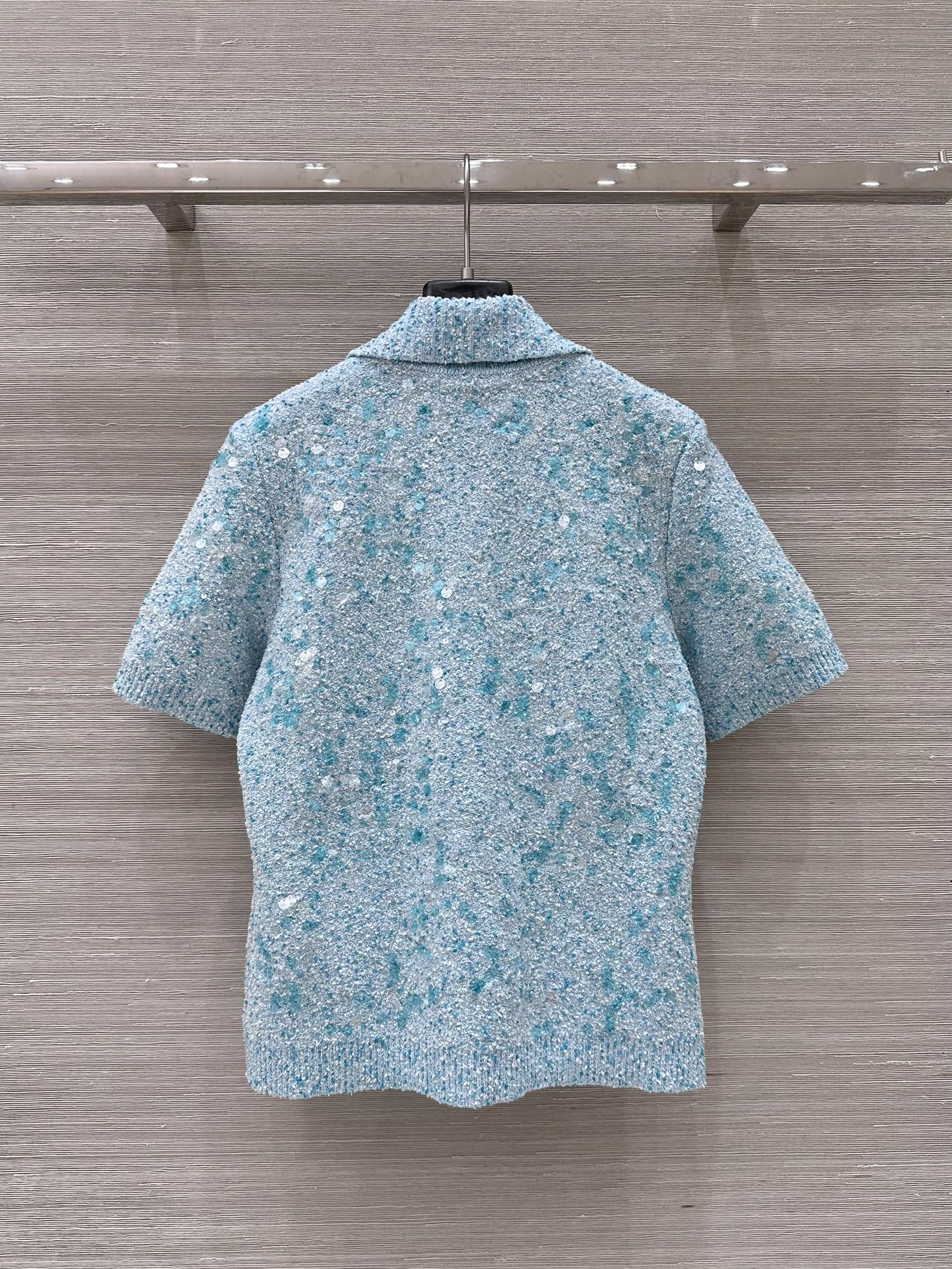 Gucci Knitted Polo Short-sleeved Top Blue Wool