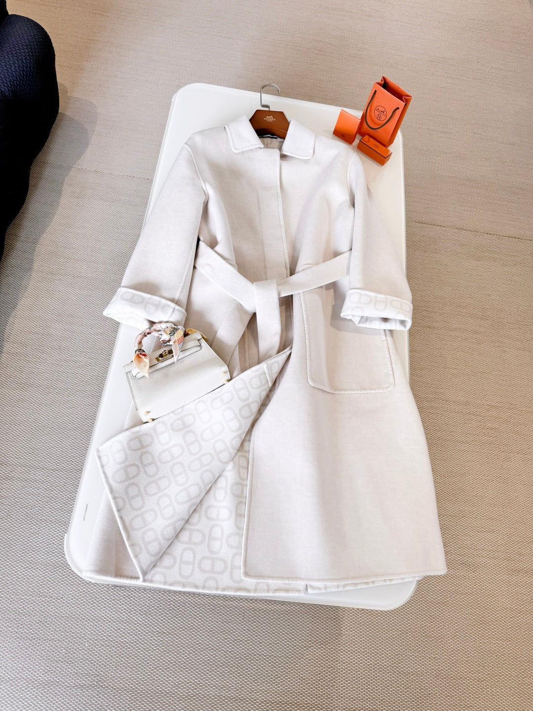 HERMES 25S BELTED CASHMERE PEACOAT 268